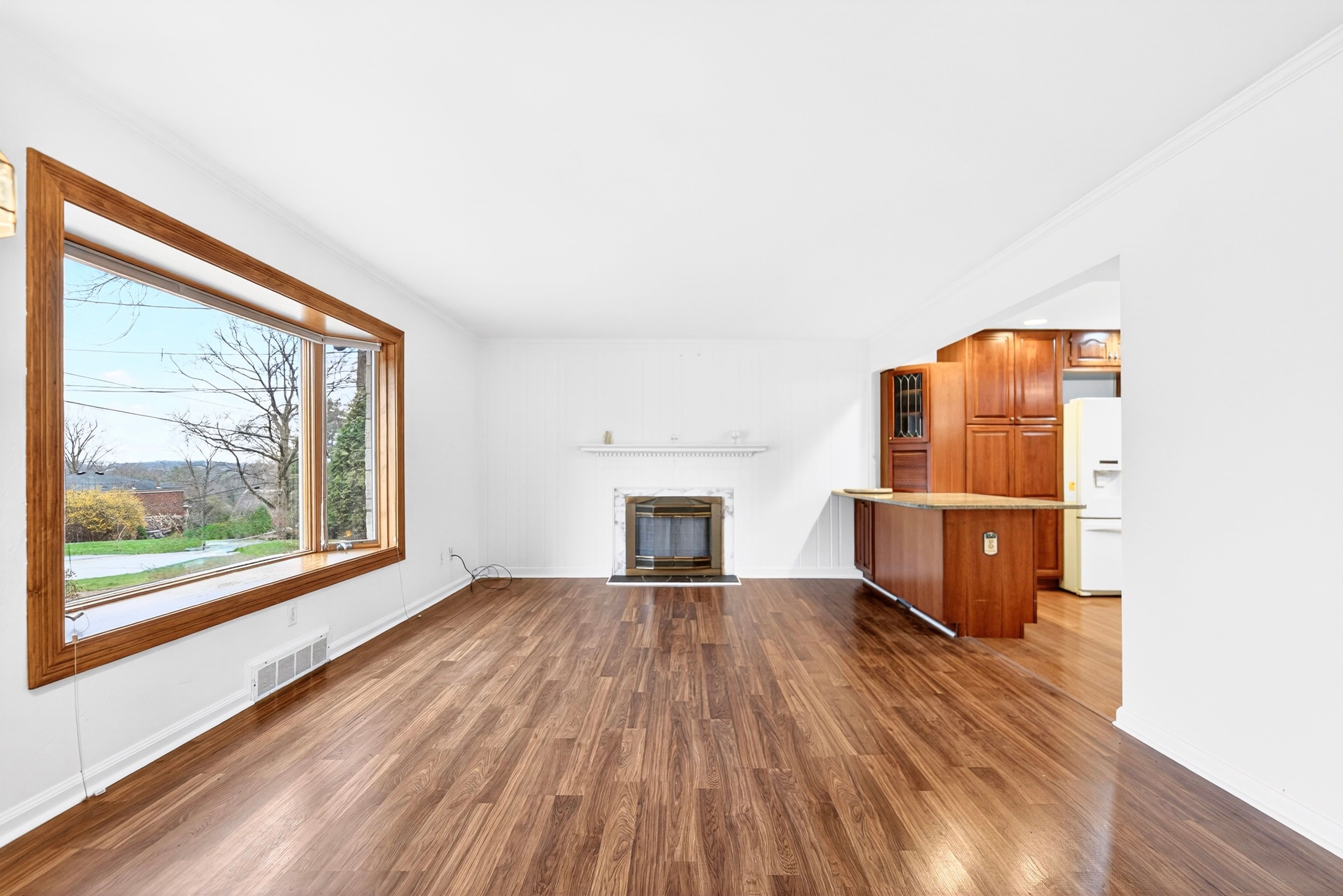 Welcome to this well-maintained ranch home in Mt. Lebanon offering one-level living on a desirable corner lot. Inside, you’ll find a bright and inviting layout with engineered hardwood floors flowing throughout the main living areas and original hardwood flooring in the kitchen. The living room is filled with natural light from a bay window and features a decorative fireplace. The dining area is ideal for entertaining, while the kitchen offers abundant cabinetry, counter space, and room for casual dining at the breakfast bar. All bedrooms are comfortably sized, including a spacious primary suite with large windows and ample closet space. The primary ensuite bath includes a double vanity, a separate water closet with a stall shower, a walk-in closet, and access to a private patio. The lower level adds valuable living space with a large finished game room that can be used as an additional bedroom, a second full bath, plus ample storage space. Step outside to enjoy the covered patio overlooking the yard, offering a great space for relaxing. Additional highlights include a furnace approximately 6 years old, fresh interior paint throughout, a new front garage door, and new storm doors on both the front and back entrances. A spacious governor’s driveway provides easy access to the one-car front entry garage. There is a rear tandem 2-car garage—perfect for extra vehicles, storage, or hobby space. Conveniently located just minutes from St. Clair Hospital, shopping, dining, and major roadways.