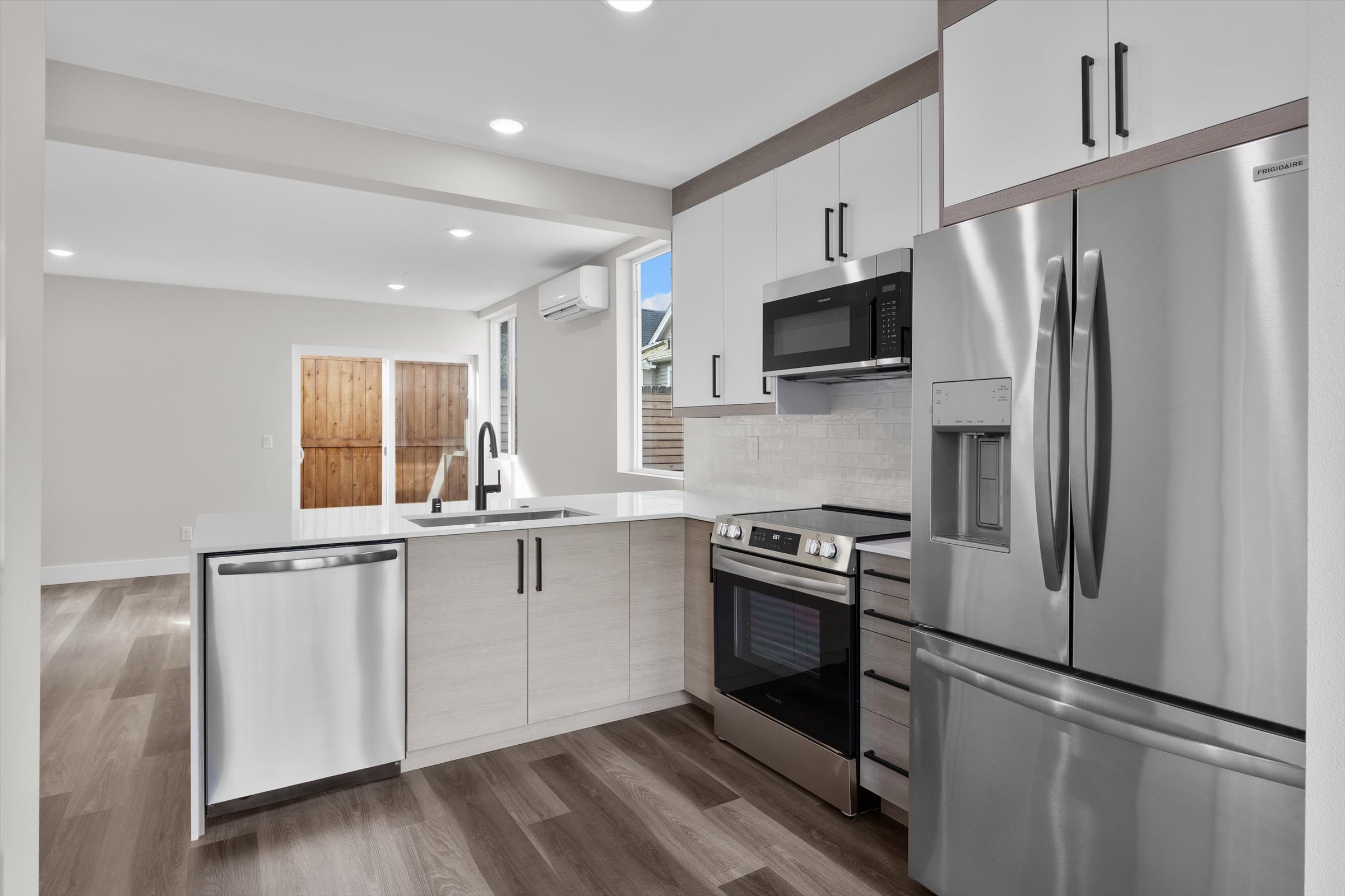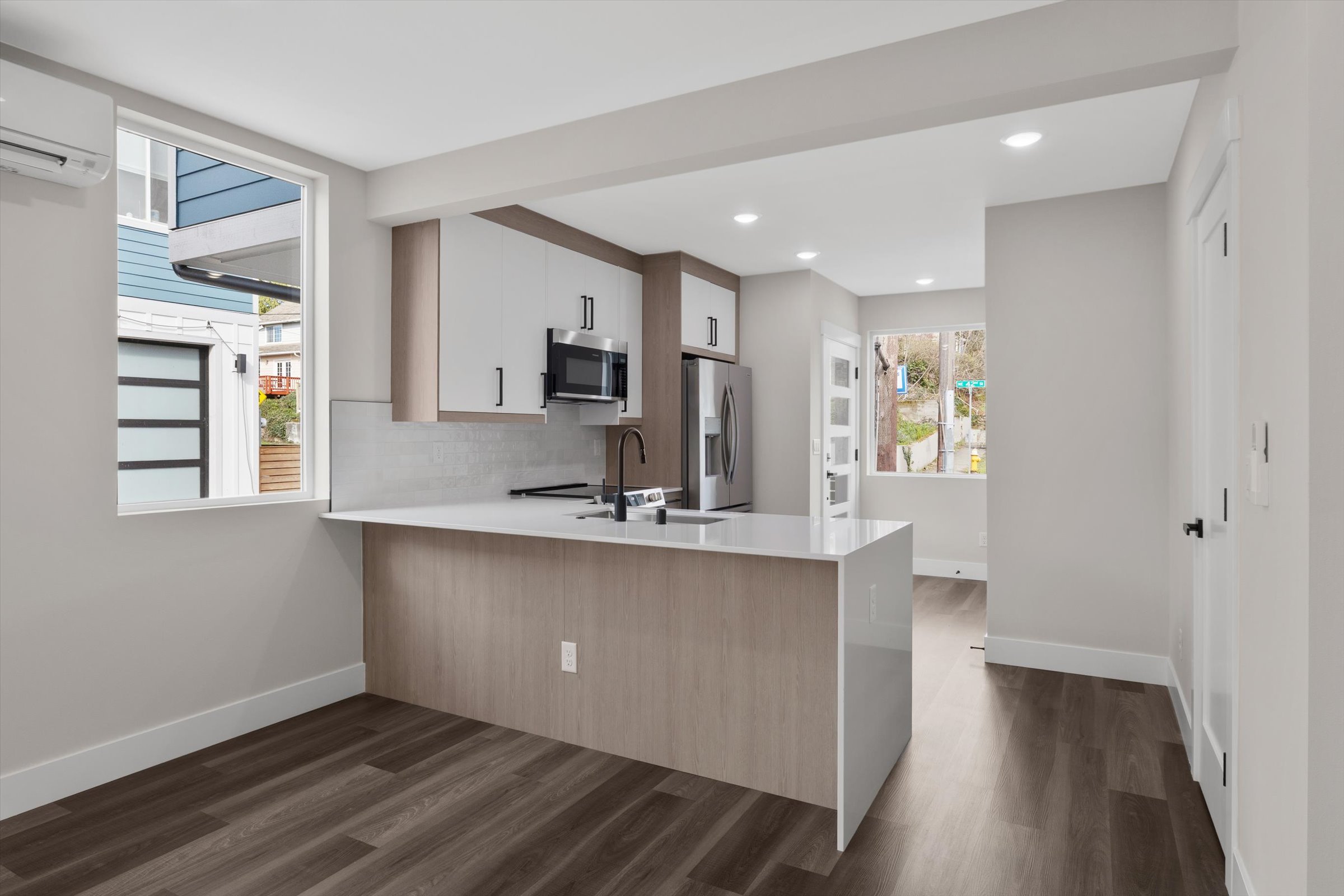 Live in one of Seattle’s most beloved neighborhoods in this stylish standalone home in Wallingford. Designed with modern simplicity in mind, the open main floor flows easily from the living area into a polished kitchen featuring quartz countertops, stainless steel appliances, and custom cabinetry—perfect for everyday living or hosting friends before heading out to the neighborhood. Natural light fills the living space, creating a warm, comfortable place to relax. Upstairs, two generously sized bedrooms with vaulted ceilings feel bright and airy, complemented by a beautifully finished bathroom with refined tile work and contemporary fixtures. Step outside and enjoy everything Wallingford is known for—local cafés, favorite neighborhood restaurants, boutique shops, and nearby parks just minutes away. With the added convenience of your own dedicated off-street parking space, this home offers a rare mix of modern design, walkable living, and everyday practicality in the heart of the city.