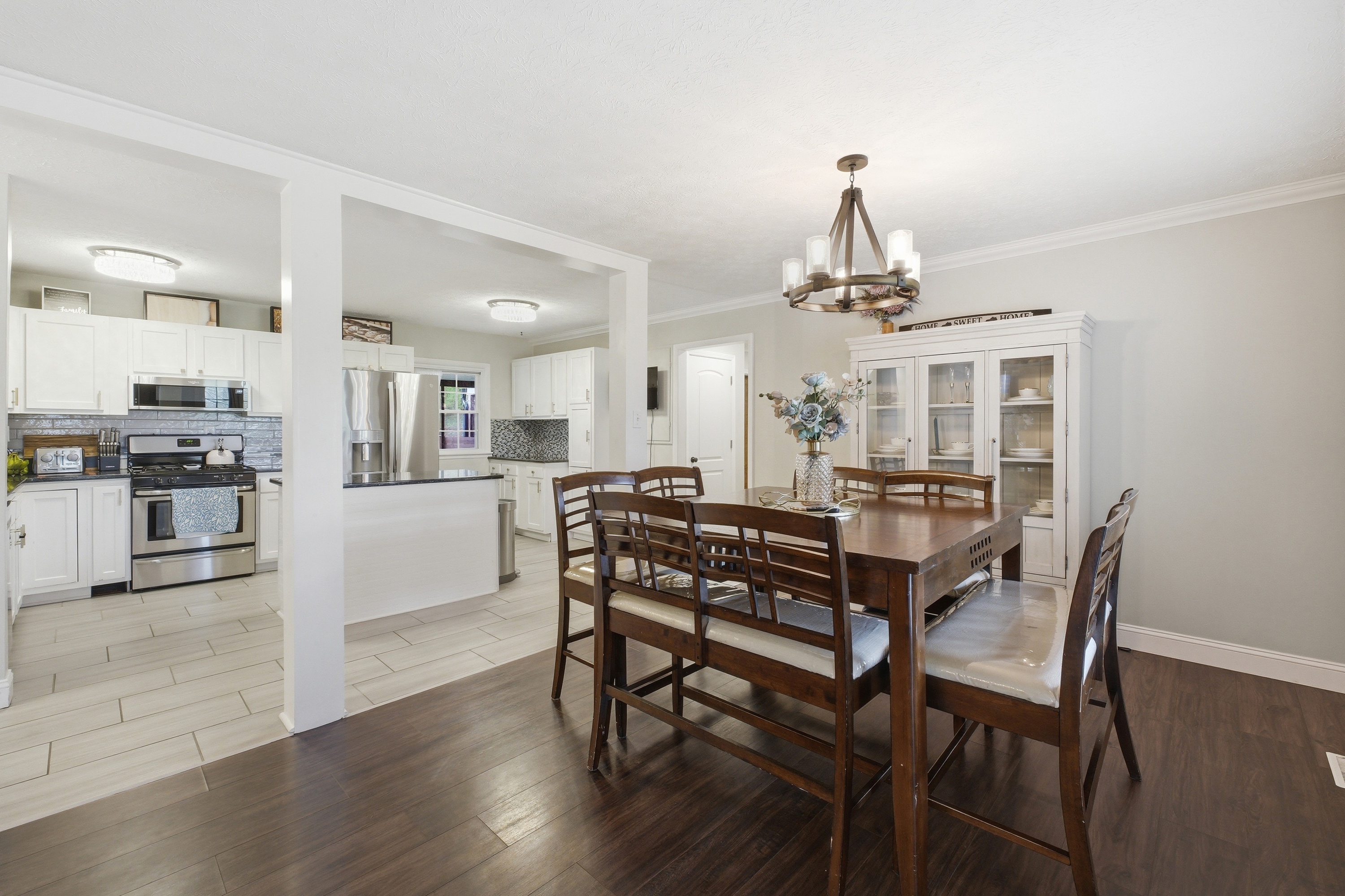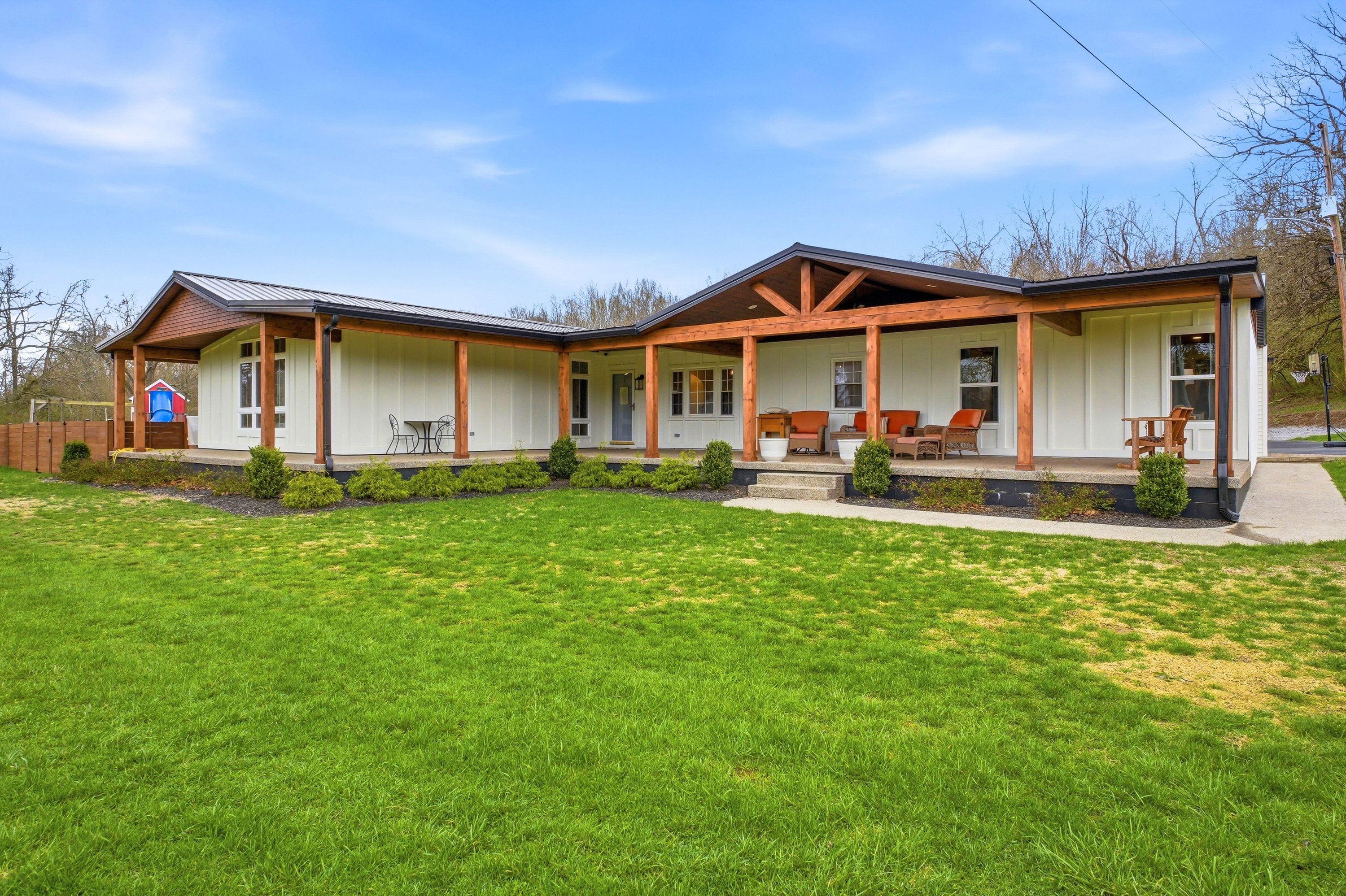 Welcome to your private slice of countryside charm at 1108 S Beckley Station Road. This beautifully remodeled ranch blends timeless farmhouse style with modern comfort, all set on nearly 2 scenic acres, only steps away from Beckley Creek Park. From the moment you arrive, the stunning wraparound porch invites you to slow down and take in the peaceful surroundings. Inside, the home opens to an oversized great room filled with natural light; perfect for gathering and entertaining. Every inch has been thoughtfully updated, offering a seamless blend of style, function, and high-quality finishes throughout. Step outside and enjoy everything this property has to offer. The fully fenced yard provides privacy and space to roam, while the above-ground pool with its expansive wraparound deck creates the perfect summer retreat. A detached oversized garage offers ample room for vehicles, hobbies, or a workshop, and the additional outbuilding ensures you'll never run out of storage. The scenic lot is truly something special, complete with a tranquil creek that enhances the natural beauty of the setting. With its ideal combination of land, updates, and location, this property delivers the feel of country living while remaining conveniently close to parks, amenities, and everyday conveniences. This is a rare opportunity to own a move-in-ready farmhouse retreat in a highly desirable area; don't miss your chance.