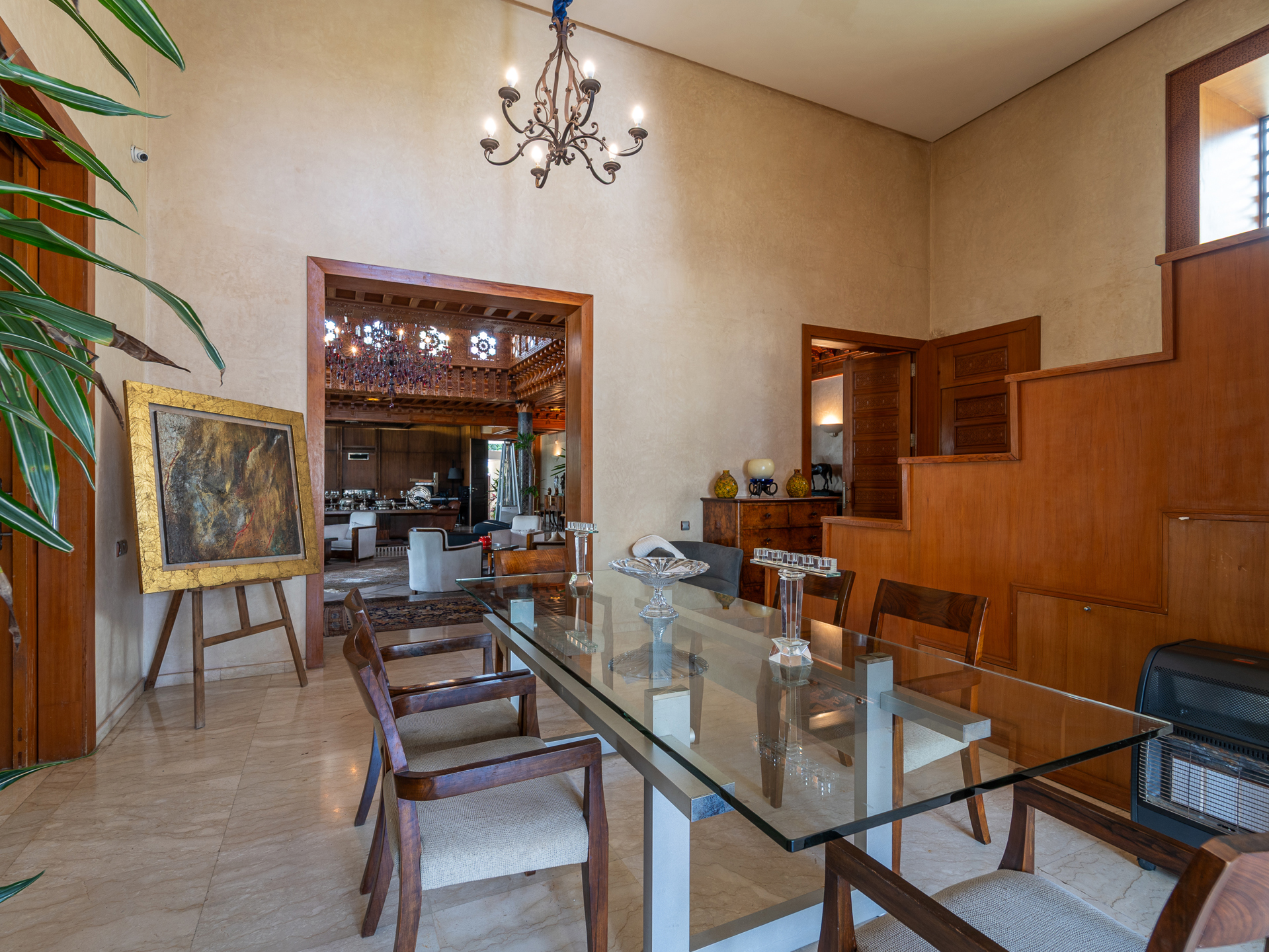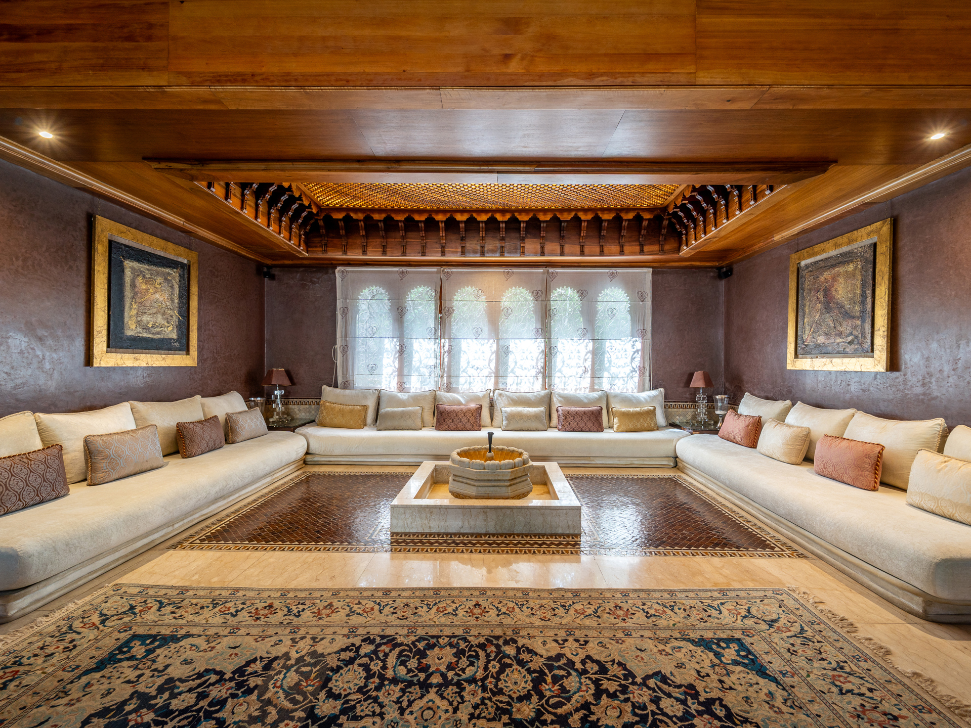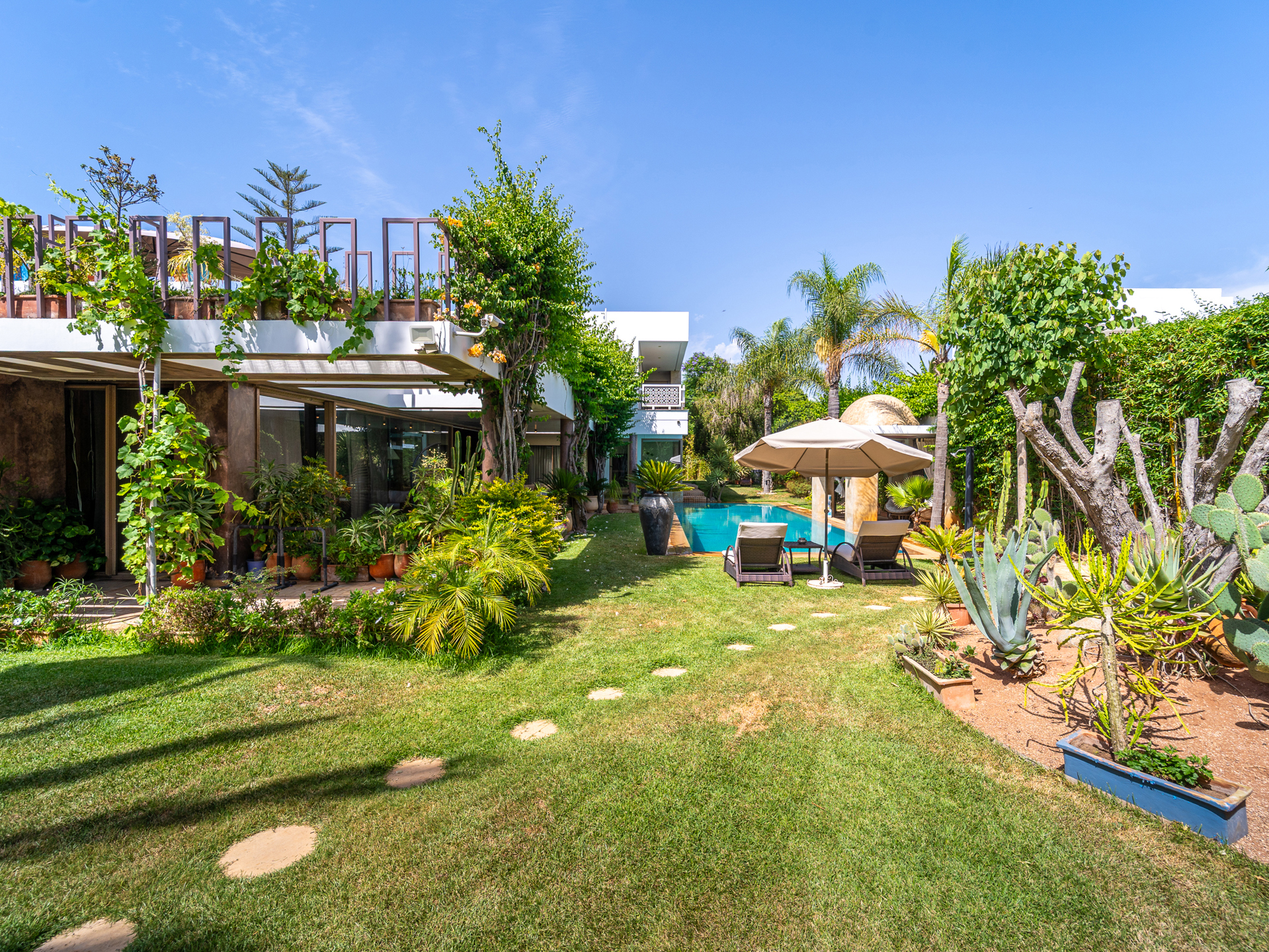 Morocco Sotheby’s International Realty in Rabat offers for rent this luxurious furnished villa, located in the prestigious Souissi district. Built on a 1.700 m² plot with a built area of 800 m² over two levels, this property impresses with its refinement, generous spaces, and peaceful surroundings. On the ground floor, a spacious reception area adorned with elegant wood paneling on the walls and ceilings features several stylish living rooms, a fireplace area, and a dining room, complemented by a closed lounge. The master suite opens onto the garden and pool, with a large dressing room and a bathroom equipped with a hammam. A functional kitchen with access to a terrace and an interior courtyard, as well as a staff bedroom with a bathroom, completes this level. The upper floor features a reception hall, a study, and three junior suites, each equipped with its own bathroom, terrace, and breathtaking views of the garden and pool. This luxurious, private villa also offers a garage for four cars and high-end finishes, including wall paneling, double glazing, central heating, air conditioning, marble floors, and solid wood parquet in the bedrooms. Available immediately, this property is suitable for both residential and professional use, thanks to its two facades: one overlooking a main commercial street in Souissi and the other on a quiet residential road. This property represents a unique opportunity to rent a prestigious villa in the heart of Souissi, combining modern comfort with a prestigious setting. For more information, please contact Zoubida Labdi at +212 6 67 99 08 09.