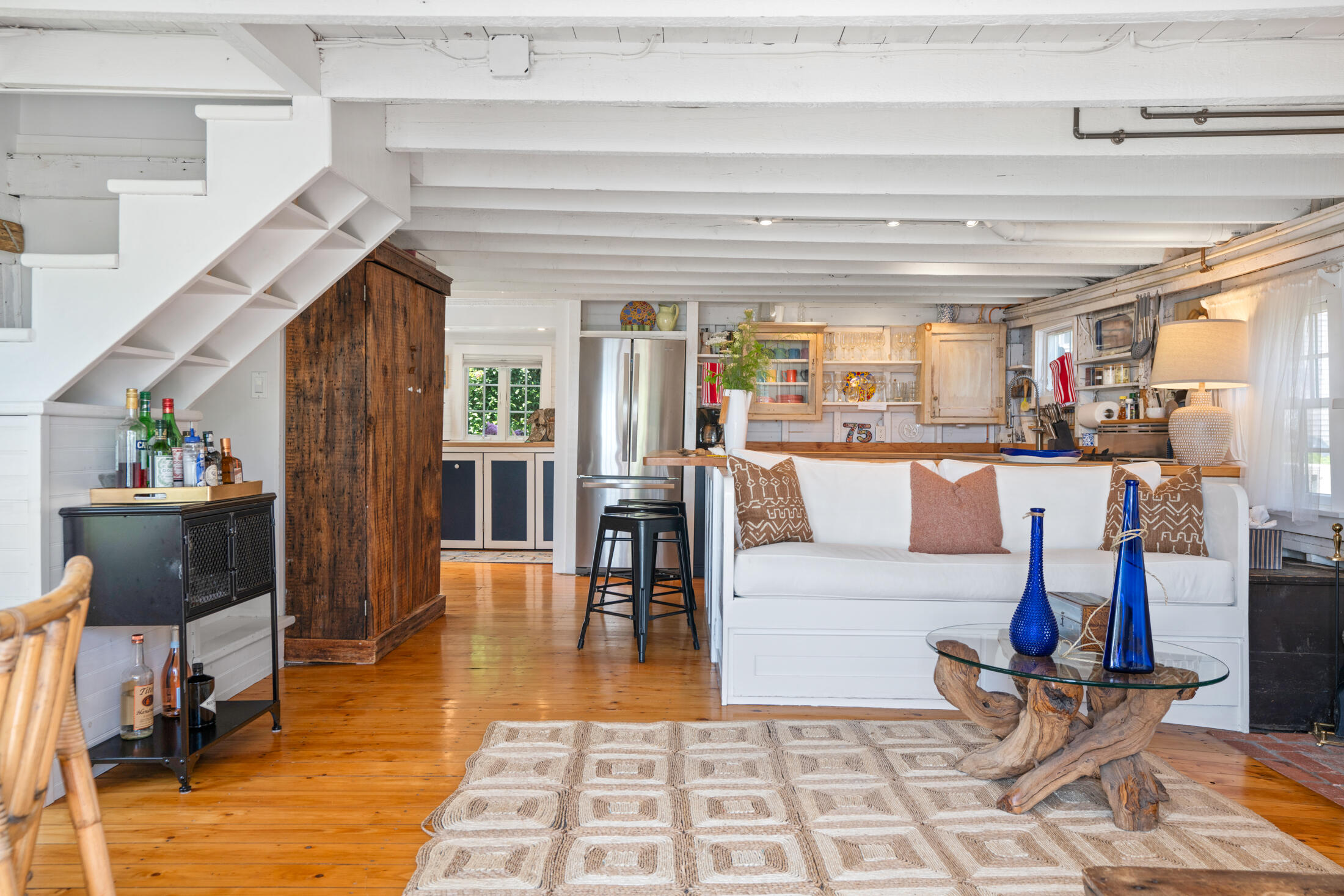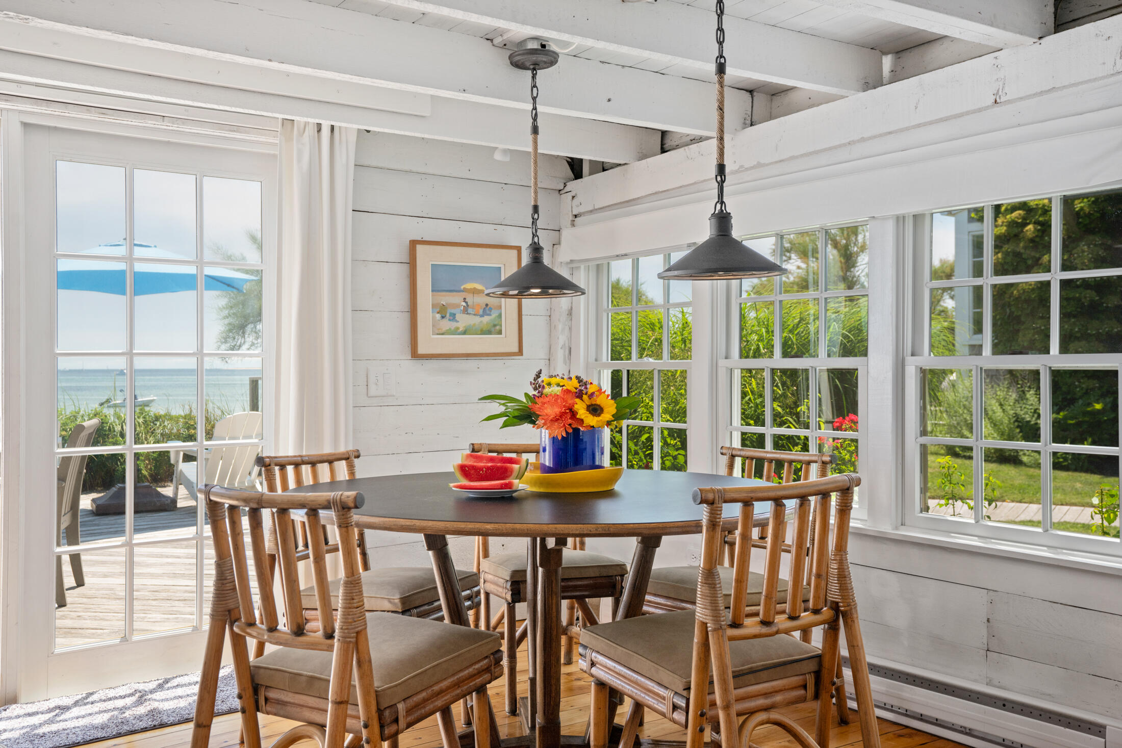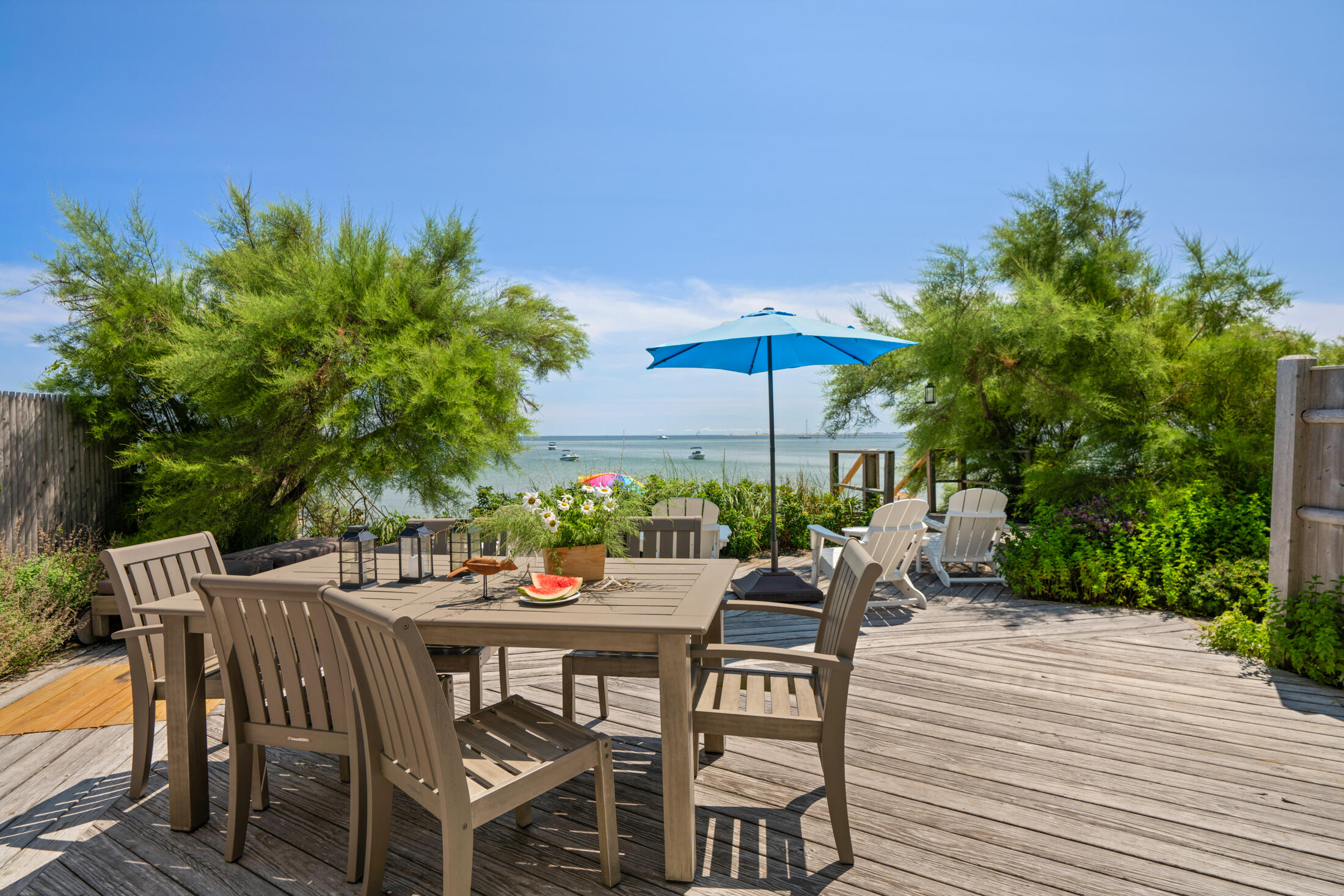 Welcome to your private waterfront retreat in the east end of Provincetown! This enchanting 3-bedroom, 2.5-bathroom compound composed of a cottage and separate studio seamlessly blends a casual beach charm with modern amenities, offering a serene escape and breathtaking views of Provincetown Harbor. Nestled amid lush gardens this nearly double wide waterfront lot is a rare gem.The 2-bedroom, 1.5-bathroom cottage feels like a step back in time, with wide pine floors, exposed wood beams, and a wood-burning fireplace. The kitchen and bathroom marry modern features yet maintain an authentic quality to this historic home of Eugene O'Neill in 1916 and later the photographer Joel Meyerowitz. The inviting living room boasts large sliders that open onto the waterfront deck, allowing you to enjoy stunning bay and light house views. The well-appointed kitchen features butcher block countertops and ample cabinetry, perfect for preparing meals while taking in the sunset. A stylishly renovated full bath with contemporary tile work blends modern comfort with functionality. The laundry area, complete with a folding station, is situated outside the bath. The second-floor staircase, framed with boat oar bannisters, leads to a landing with the guest bedroom to the left, the primary bedroom to the right, and a half bath in the middle. The primary bedroom offers panoramic water views, creating a peaceful sanctuary. Ample storage exists with built in cabinetry, including under the platform bed, and a wardrobe on the landing provides additional hanging space. The guest bedroom overlooks the front of the home and includes abundant closets and built-ins for storage. A charming half bath on the second floor completes the comfort of the bedroom level.Across the lush lawn, the stand-alone studio suite with its own full bath and kitchen offers flexible living arrangements, ideal for guests, extended family, or potential rental income with its own private entry and direct beach access. This studio ensures privacy and independence and could be a stunning waterfront at-home office.The highlight of the property is the spacious waterfront deck with outdoor shower, which provides unparalleled views of Provincetown Harbor with landscaping that provides a privacy rarely available with waterfront properties. Whether you're relaxing, entertaining, or simply taking in the scenic beauty, this deck is perfect for all occasions.Surrounding the property, lush gardens add color and tranquility to the outdoor experience, while a shed offers additional storage space for bikes or gardening tools.With parking for two cars and a great rental history, this idyllic waterfront retreat is not to be missed. **Please Do Not Enter Property Without An Appointment**