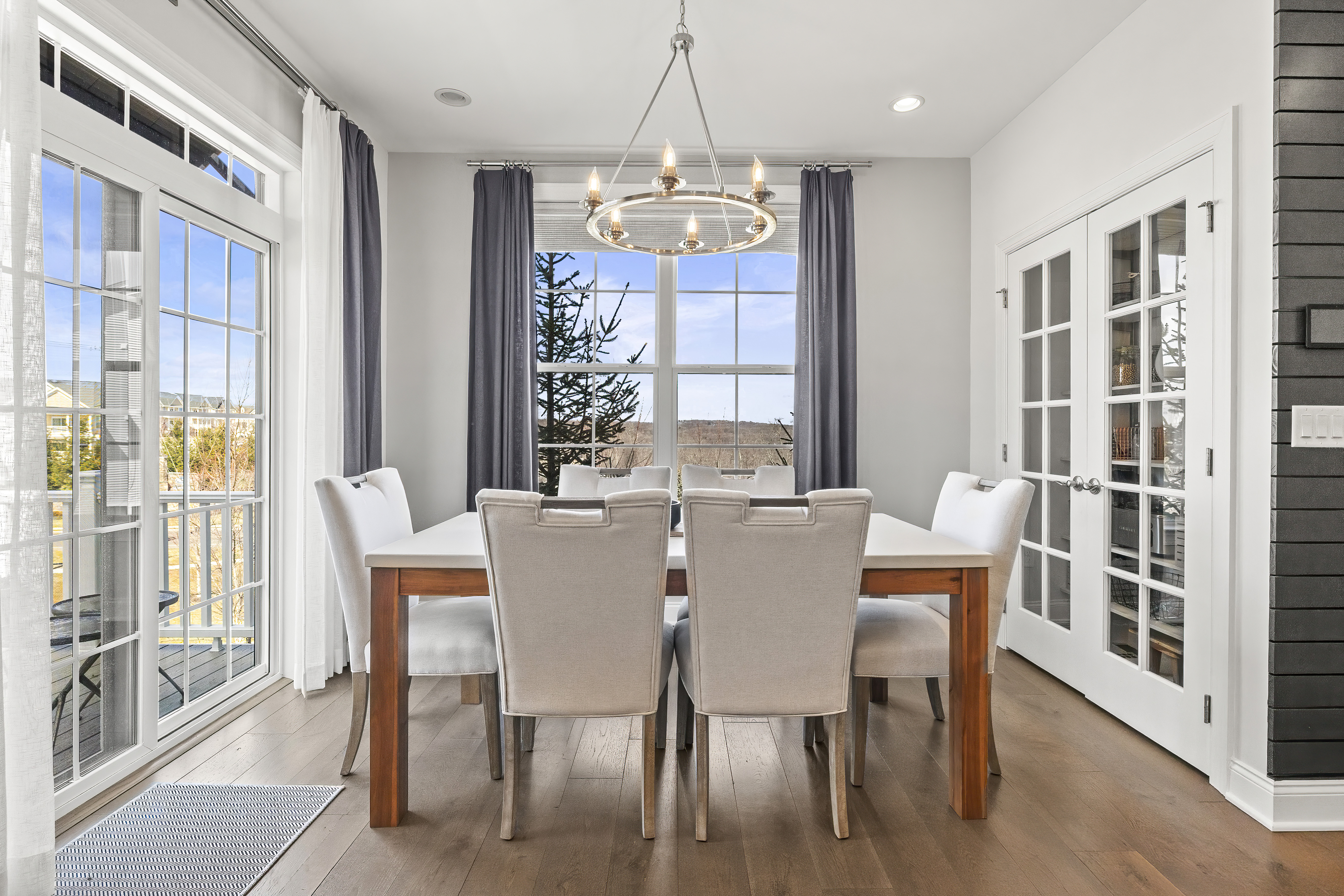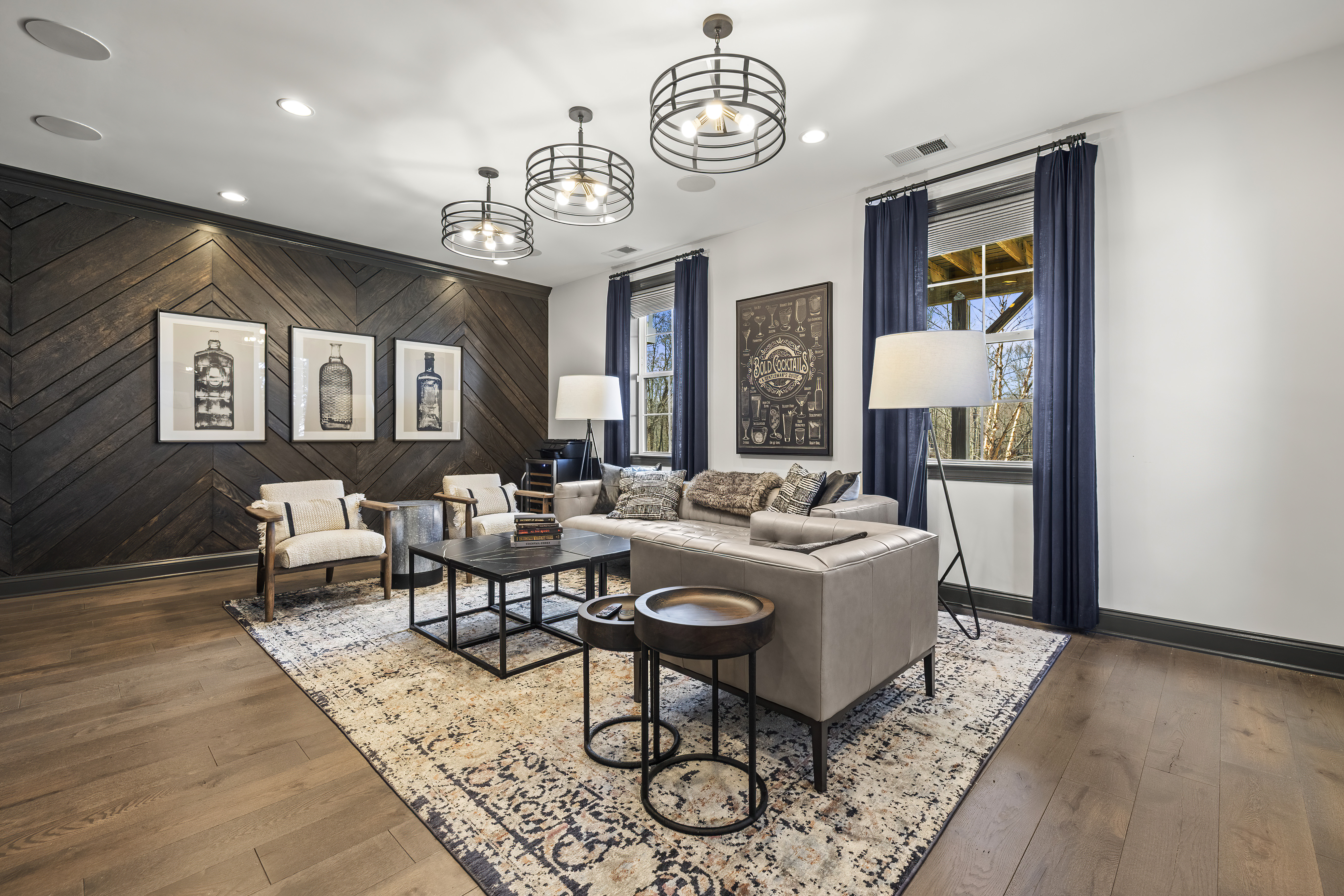 Welcome to the peak of luxury living. This spectacular end unit and former model home in the sought after Woodlands section of Rivington has been meticulously upgraded by the Toll Brothers Design Studio and further refined by a premier designer who curated the decor. Offering approximately $300K in upgrades, including features no longer available, this turnkey residence is being offered fully furnished. The home features 3 bedrooms, den, 2.5 bathrooms, finished lower level and a 1 car garage. The kitchen is the centerpiece with quartz countertops, oversized island with seating, custom cabinetry with thoughtful storage features, pantry and a farmhouse sink with garbage disposal, all open to the living areas with sliders leading to a deck overlooking the tennis courts and open space. The den showcases a custom entertainment wall with flat screen TV, gas fireplace and integrated LED lighting, along with custom glass barn doors for privacy. The primary suite is defined by vaulted ceilings and complemented by a textured accent wall and custom window treatments. A walk in closet provides storage. The ensuite bath features a double quartz vanity, frameless glass walk-in shower with a stone bench. Wide plank oak floors run throughout most of the residence, and upper level laundry adds convenience. Every inch of this home has been polished to perfection. Community amenities are conveniently located just across the street, enhancing the elevated lifestyle this exceptional home offers.