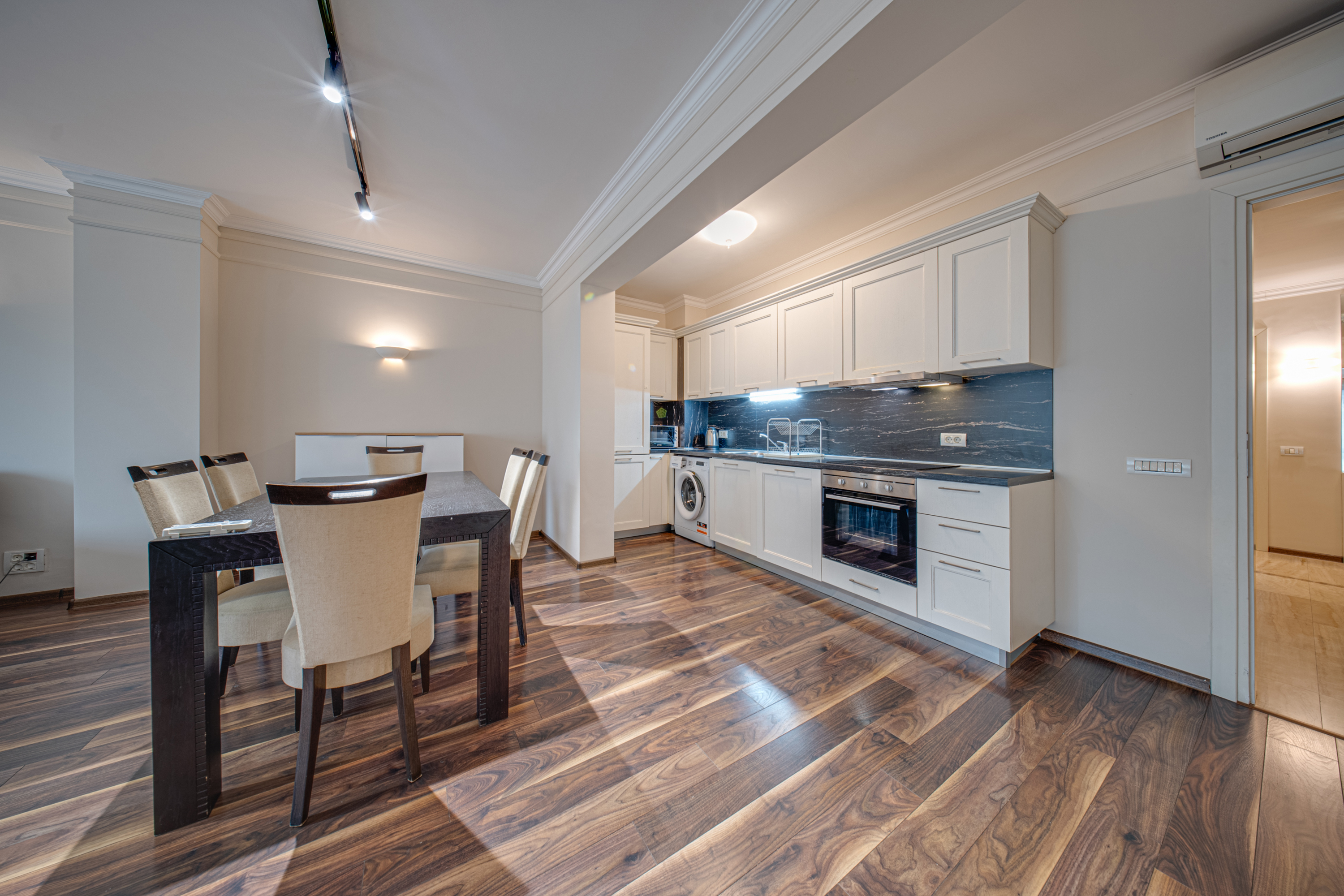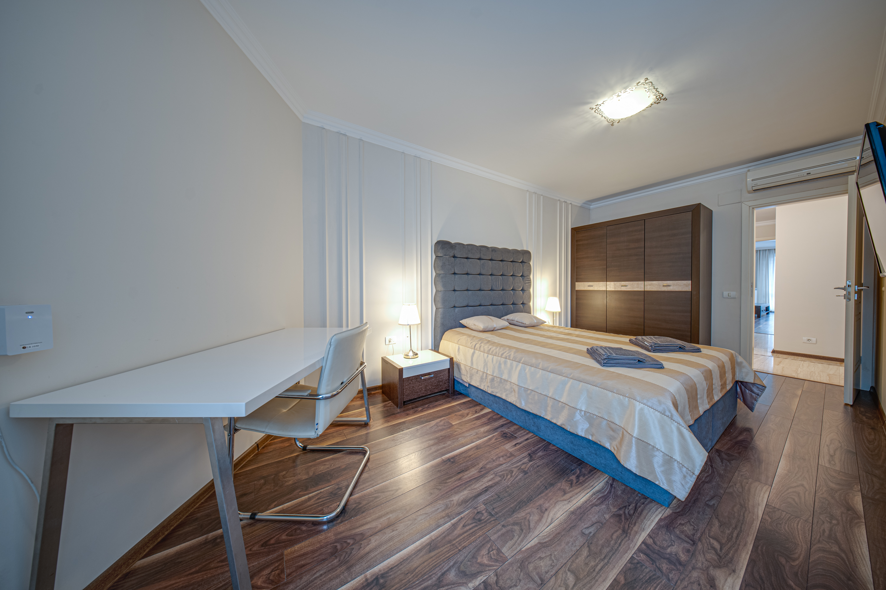 Luxury panoramic elevator; Luxury lobby with reception; Restaurant; Fire alarm and security; Two levels of underground parking for 27 cars are available. The building is completed according to modern construction standards and will provide luxury and comfort to its tenants; The joinery is aluminum with thermal bridge and double glazing with 8 mm outer glass - Stop Ray Vision also with triplex inner glass 3.1.3 for sound insulation; The utilities have a central heating system, VRV air conditioning system; Structured cabling. The maintenance of the common areas and the surrounding area is ensured. There is an appointed building manager, available to tenants for any questions and cases.