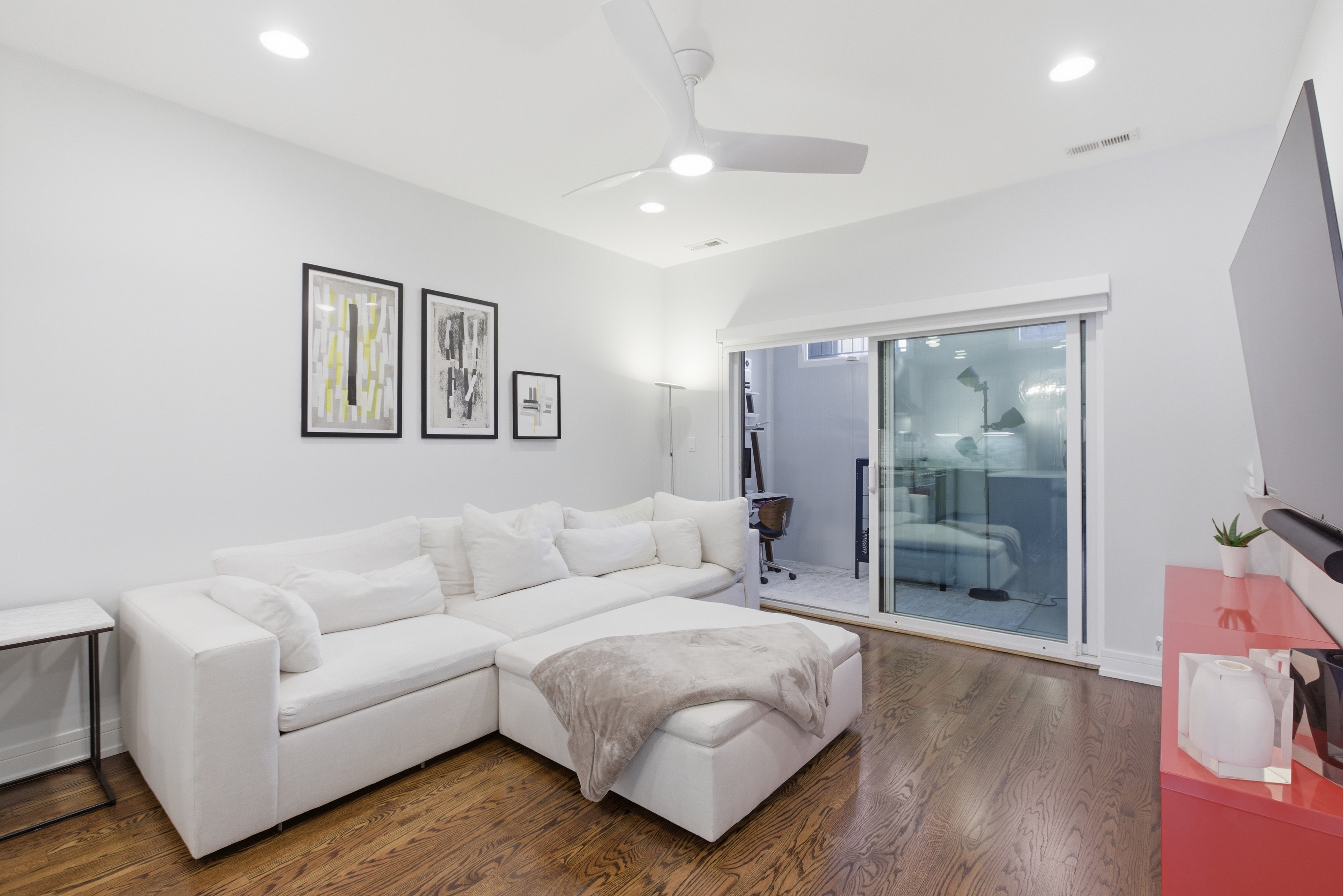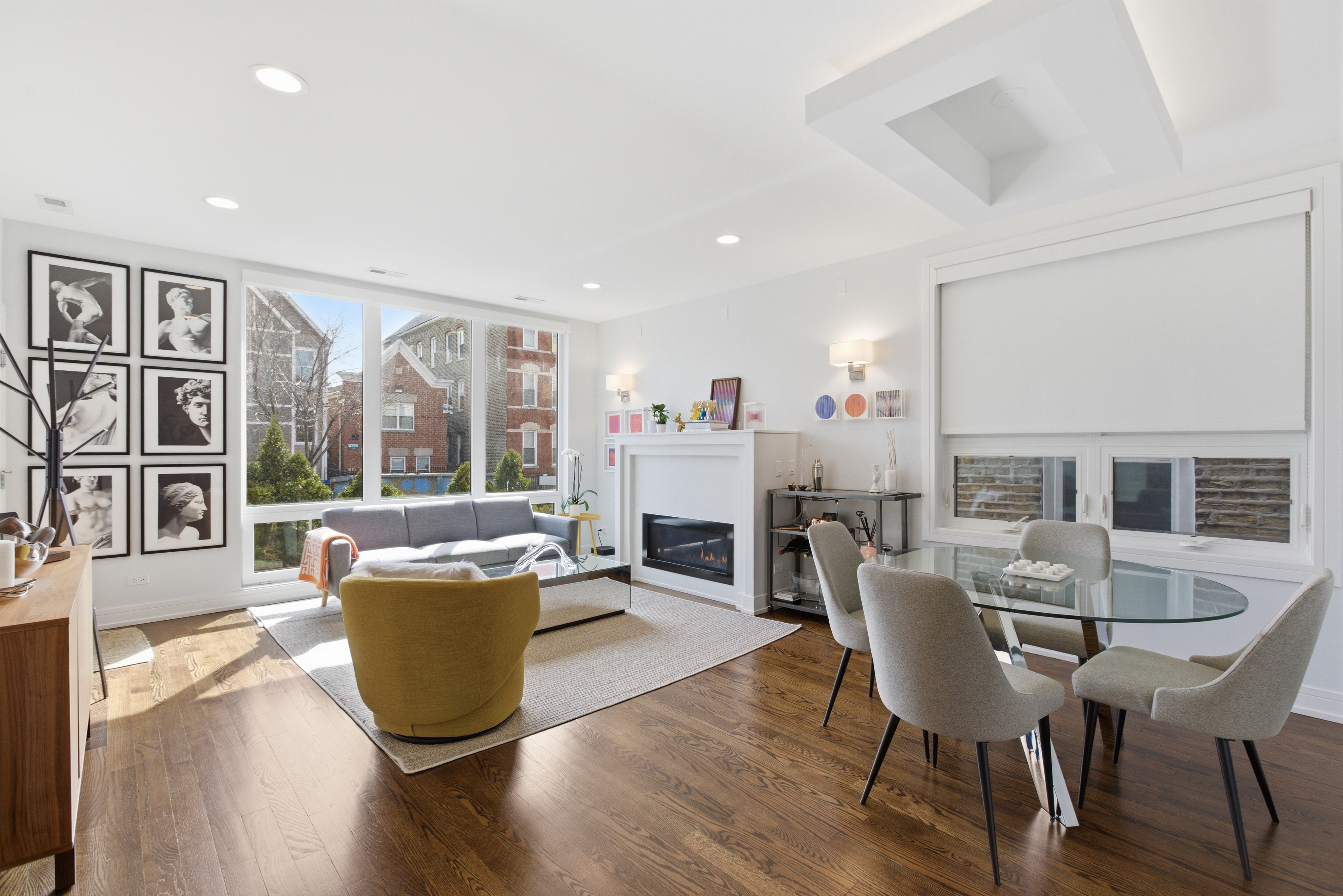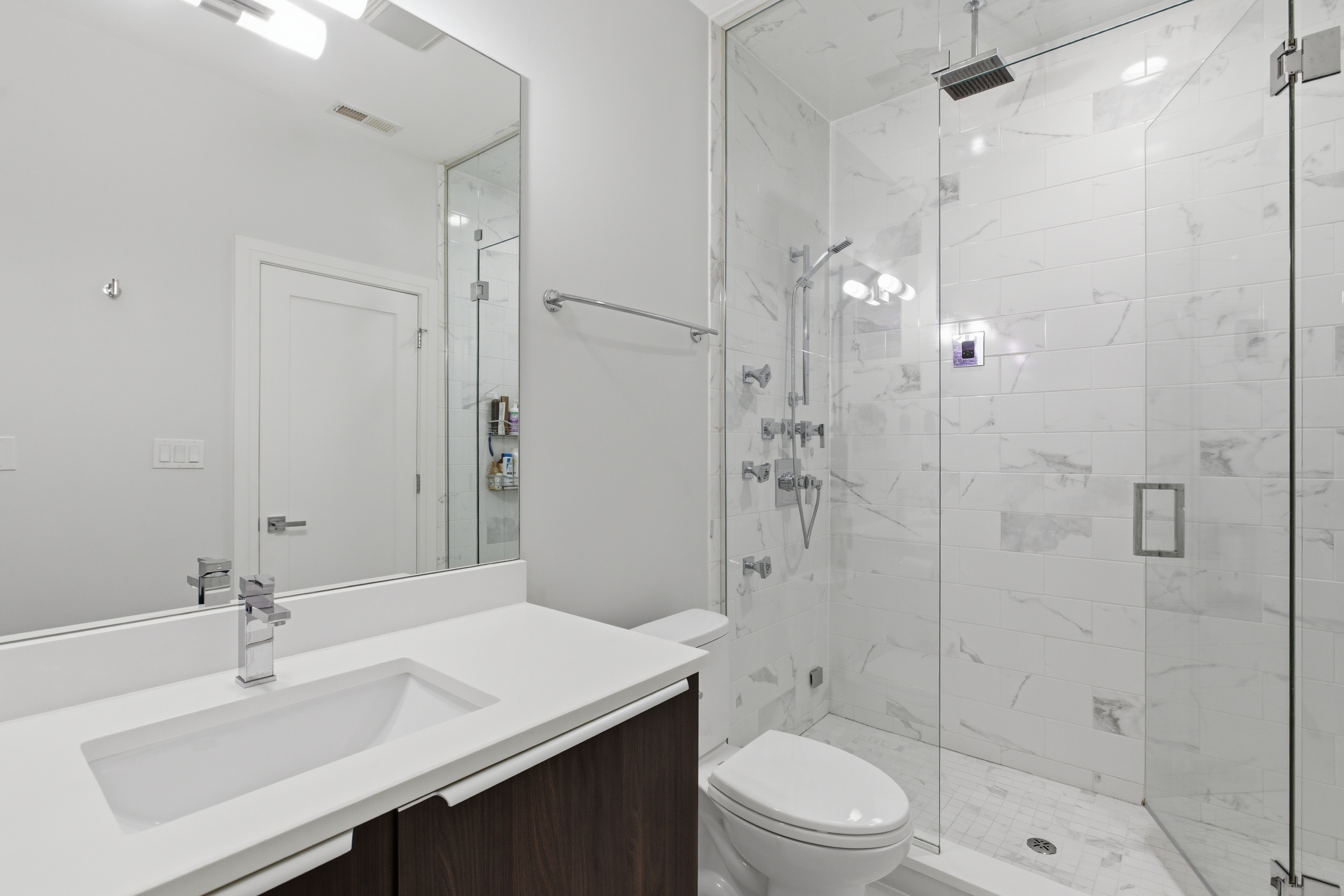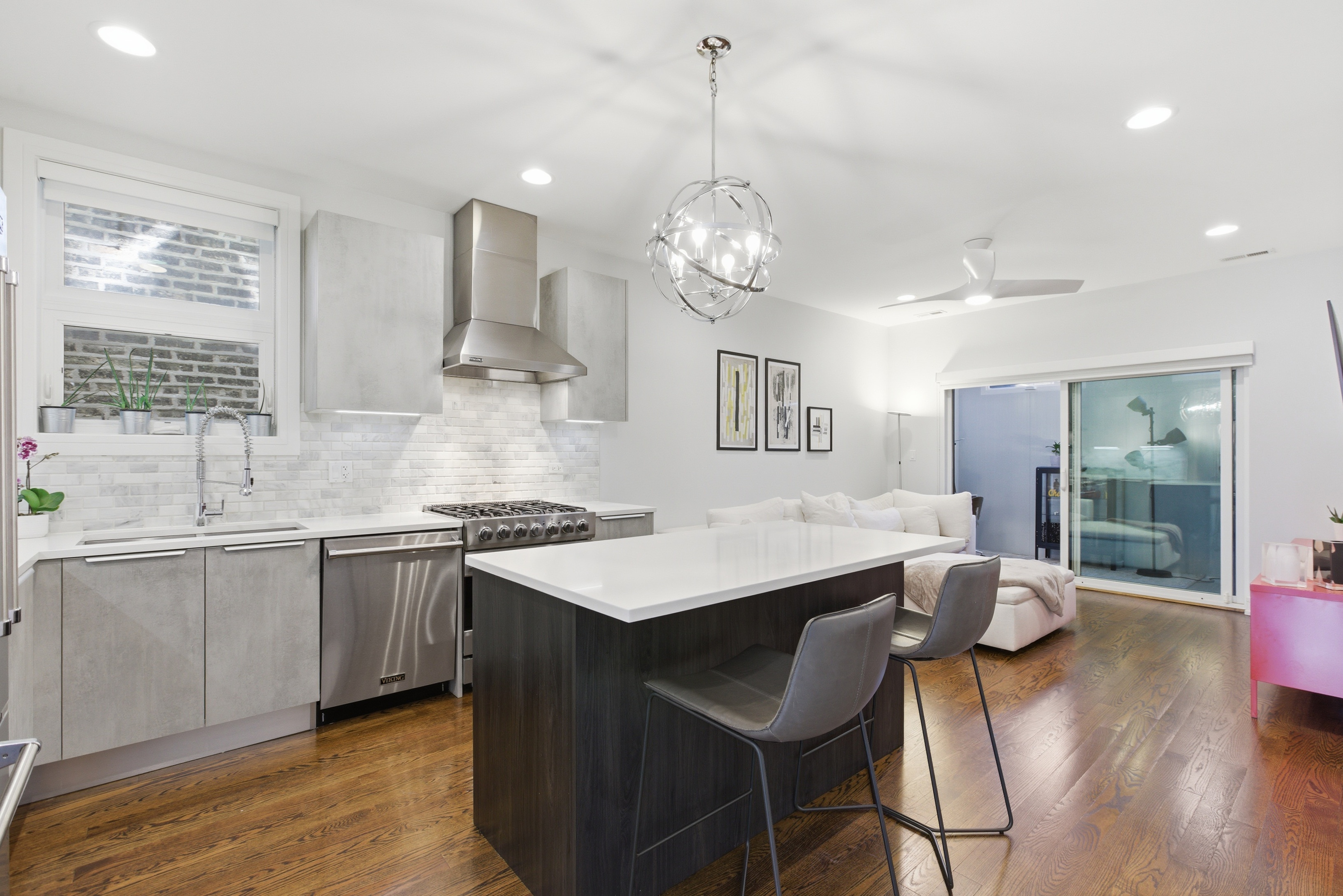 Stylish duplex with incredible outdoor space in the heart of Wicker Park. This 3 bed, 2.1 bath home lives like a single-family with an open, sun-filled layout and seamless flow between the living and dining areas, perfect for everyday living and entertaining. The sleek chef's kitchen features Viking stainless steel appliances, Copat Italian cabinetry, quartz countertops, marble backsplash, and a large island, opening to a rear family room with an enclosed office space. Enjoy summer evenings on the expansive private garage rooftop deck, ideal for entertaining. The primary suite offers a walk-in closet and spa-inspired bath with steam shower, body sprays, and heated floors, while the second full bath includes a soaking tub. Additional highlights include custom lighting, integrated speakers, high ceilings throughout, nest thermostats on both floors, garage parking, and an unbeatable Wicker Park location steps from Division St shops, dining, entertainment, the Blue Line and more!