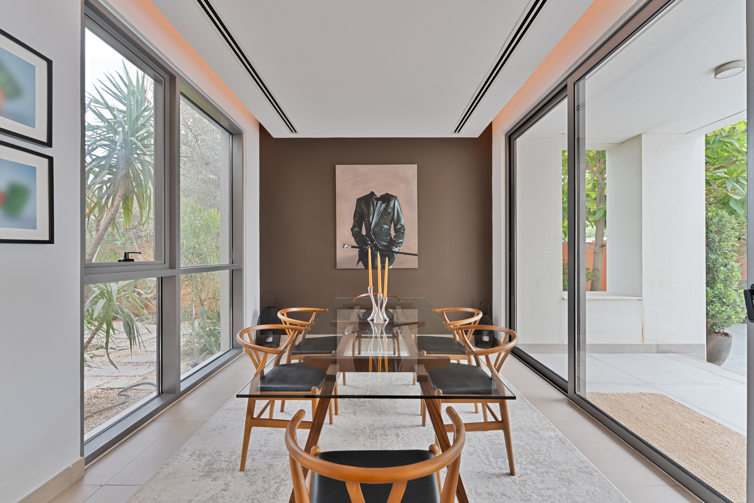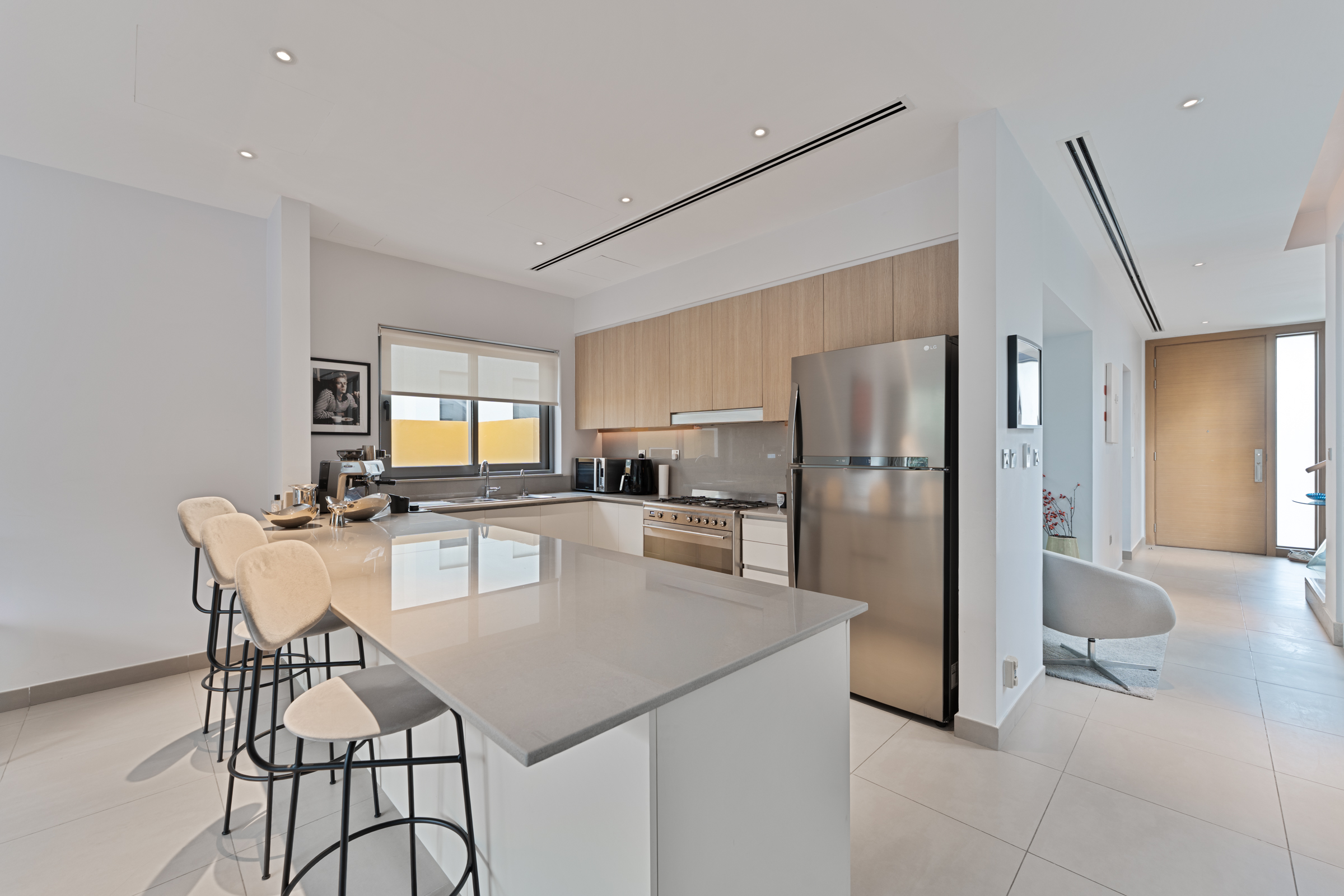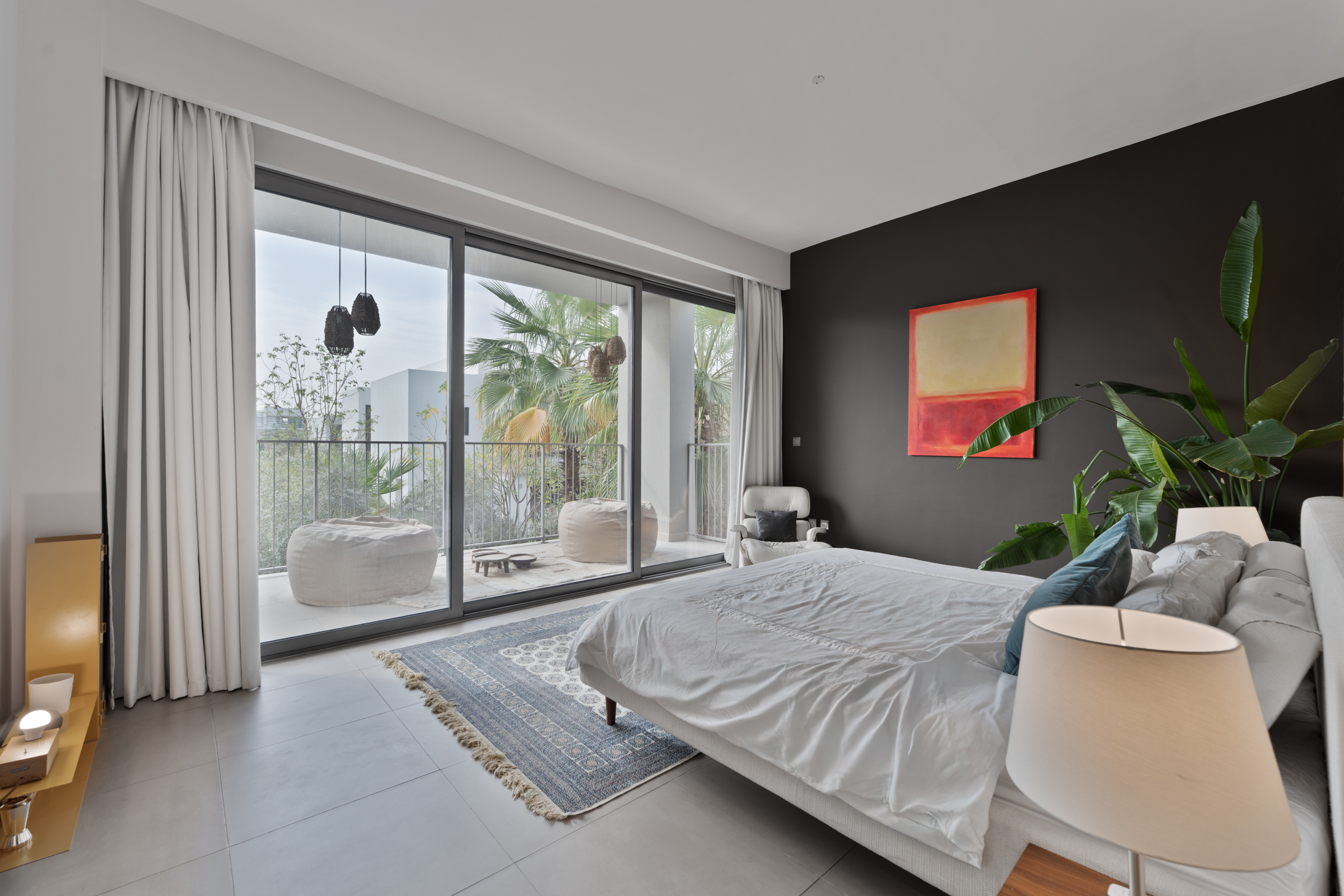 The three bedrooms each come alive with chic colour palettes, built-in wardrobes, wooden panelling, and refined finishes, completed by their own en-suite bathrooms. Two bedrooms offer generous balconies for slower, quieter moments, with the master suite benefitting from an expansive walk-in closet.