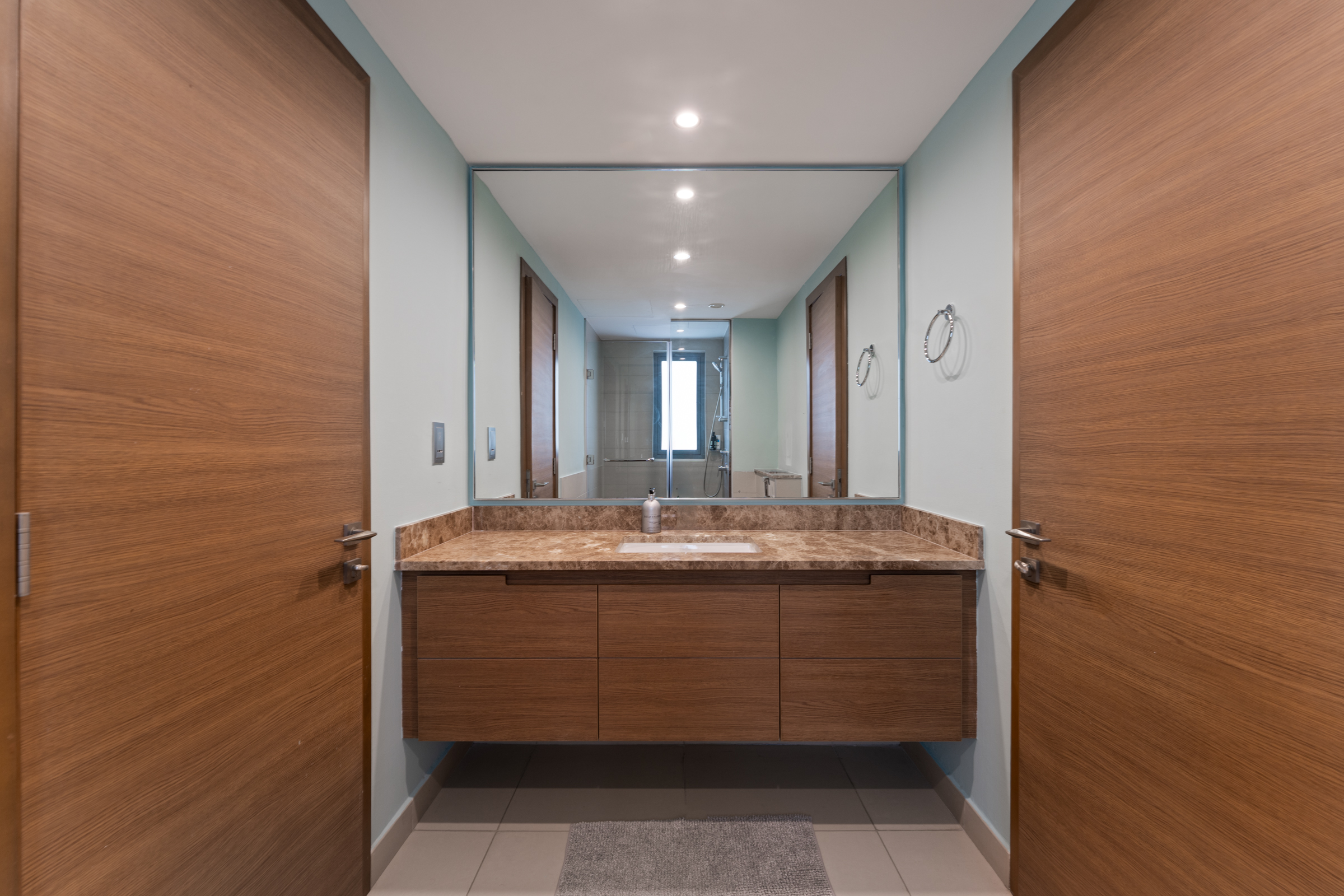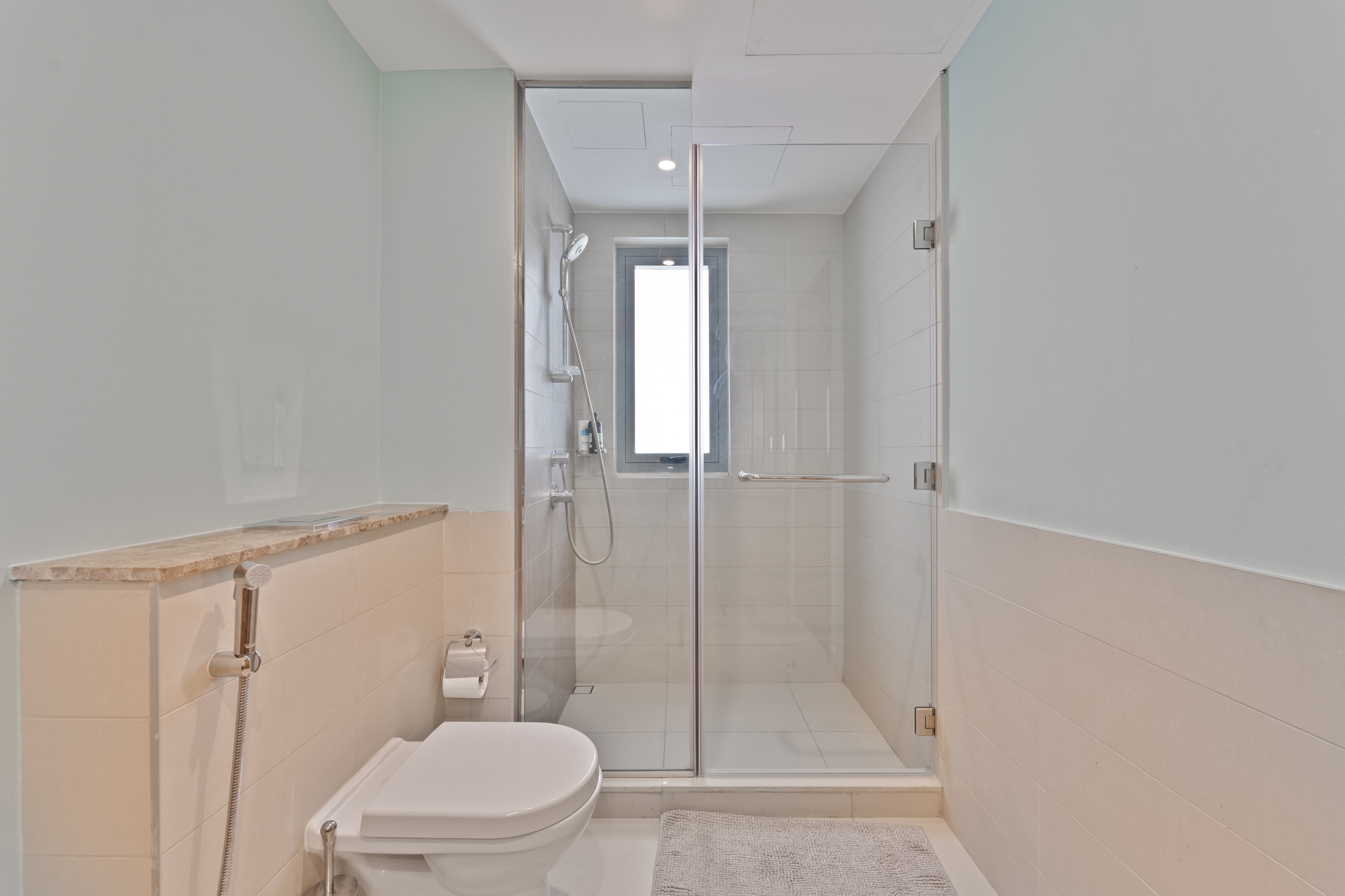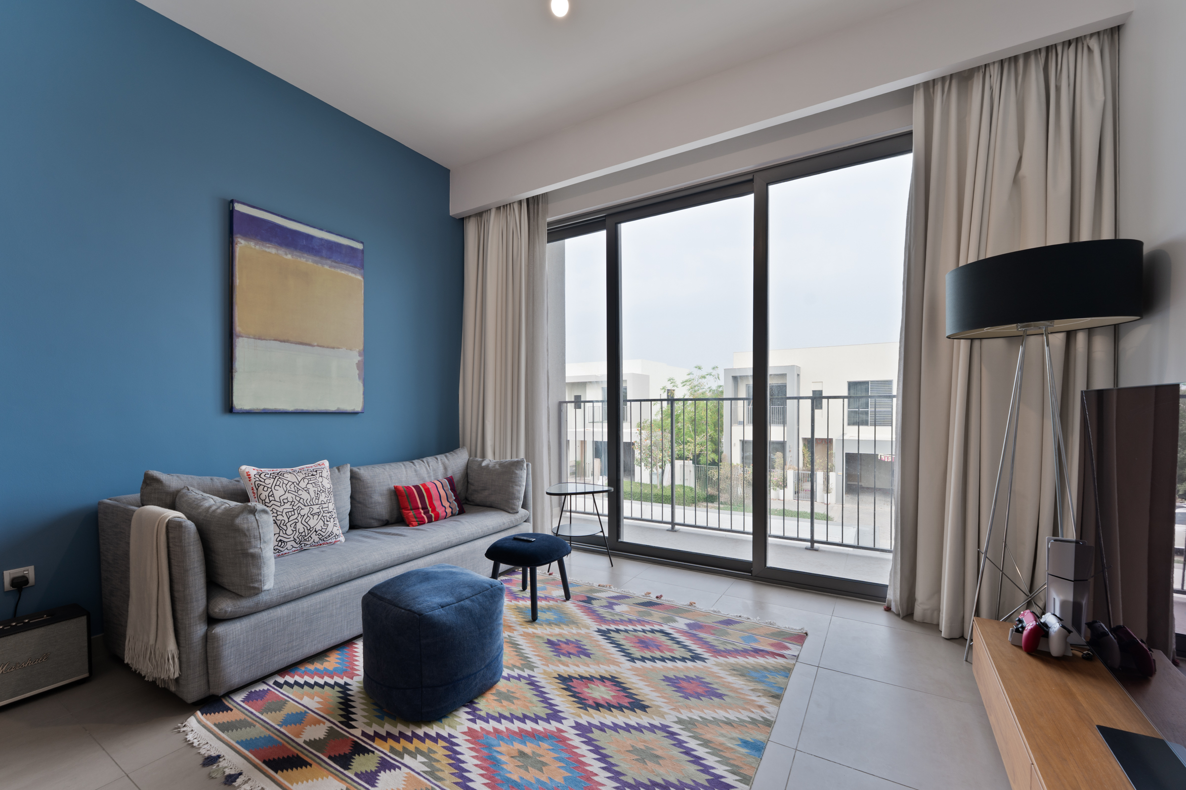 The three bedrooms each come alive with chic colour palettes, built-in wardrobes, wooden panelling, and refined finishes, completed by their own en-suite bathrooms. Two bedrooms offer generous balconies for slower, quieter moments, with the master suite benefitting from an expansive walk-in closet.