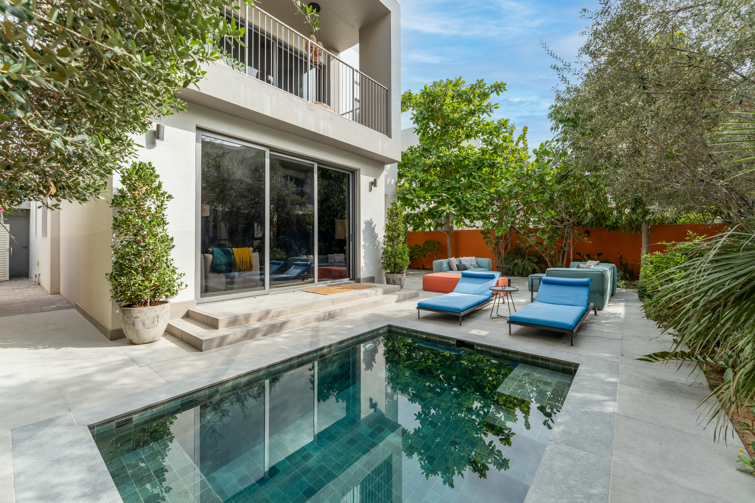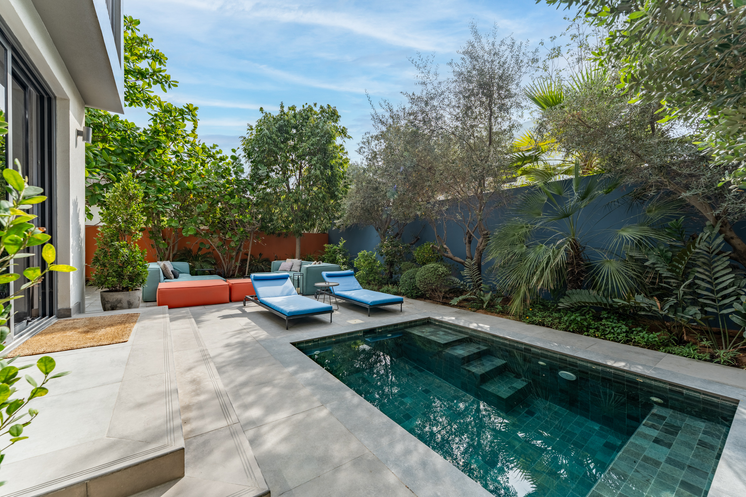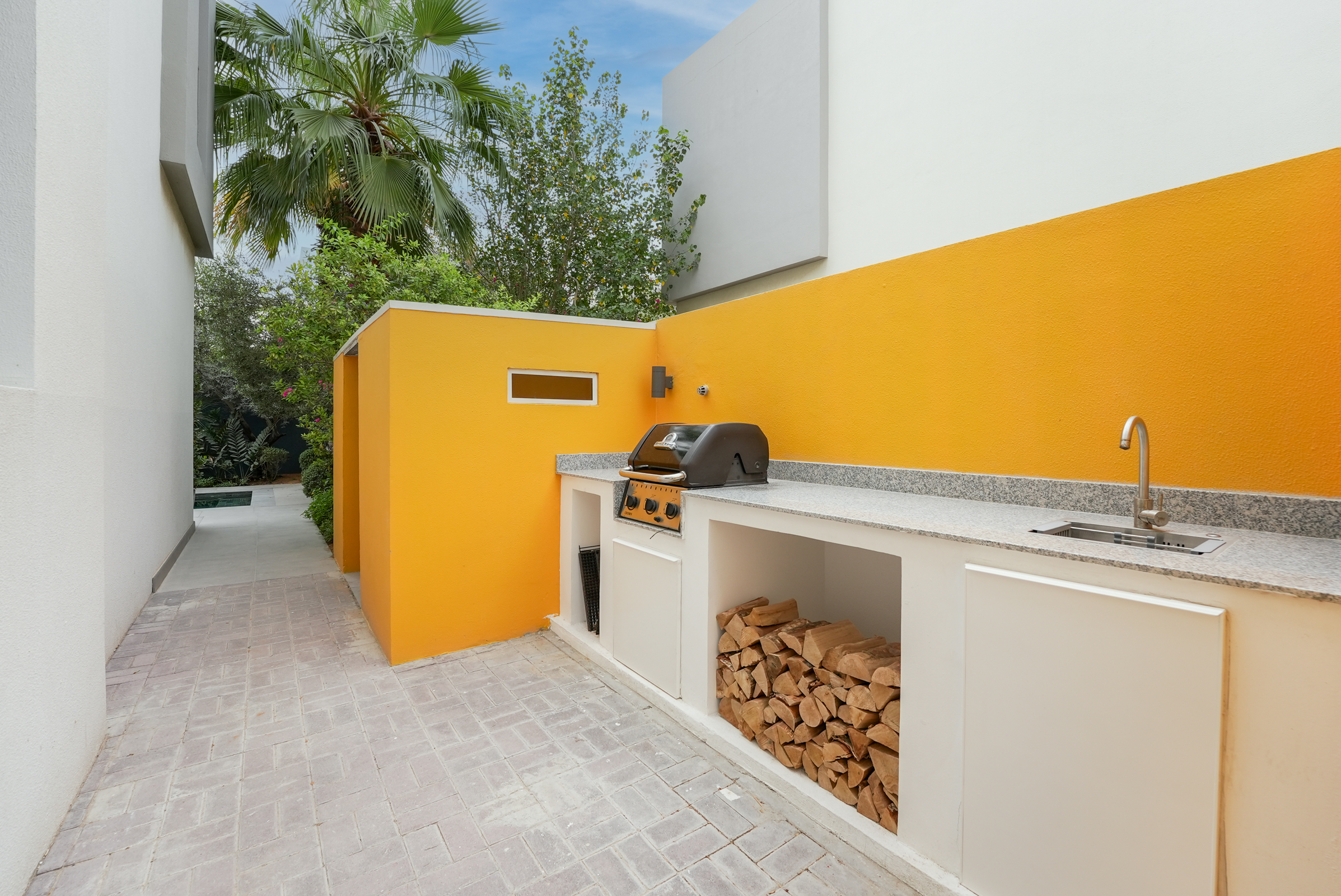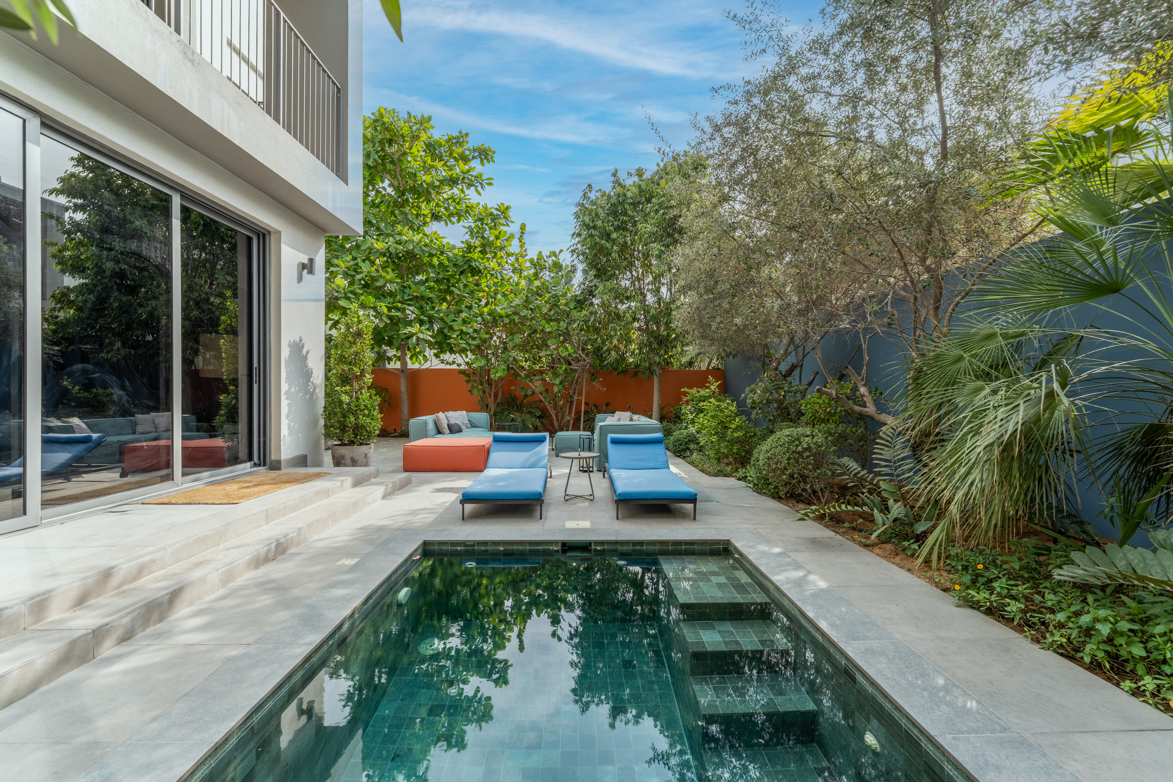 Outdoors, the backyard boasts a refurbished plunge pool, a relaxed lounge, and a barbecue station enveloped by landscaped greenery — adding to the home’s oasis-like theme. Two parking spaces complete this remarkable home.