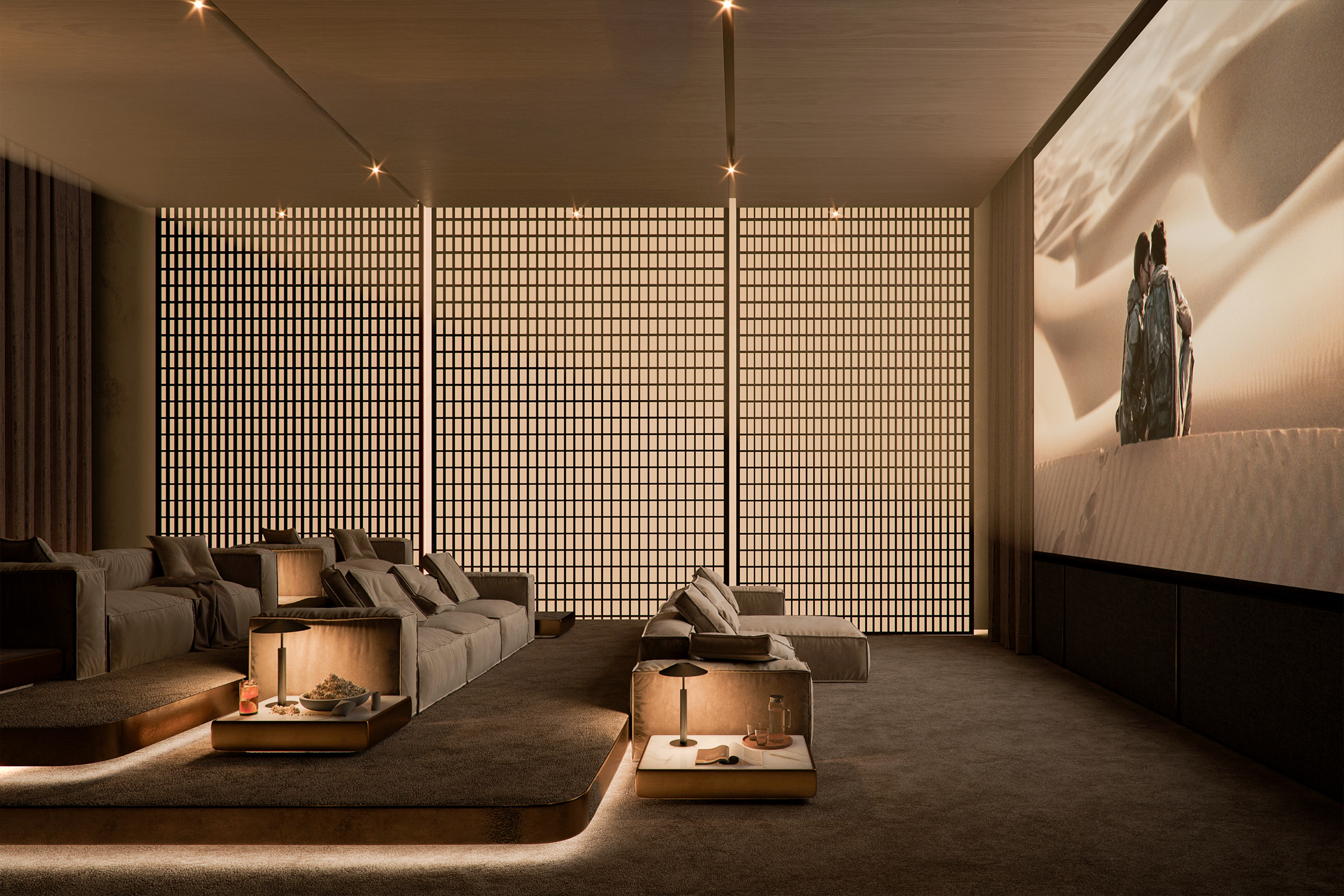 The apartment is furnished, featuring notable Italian brands such as B&B Italia, Minotti and Poltrona Frau. The kitchen is outfitted by Miele and Poliform, with other details from Antonio Lupi, Henge, Flos and Brokis. A fusion of Japanese and Italian aesthetic, it is adorned with elegant timber surfaces, textured concrete, burnished metal and tempered backlit glass.