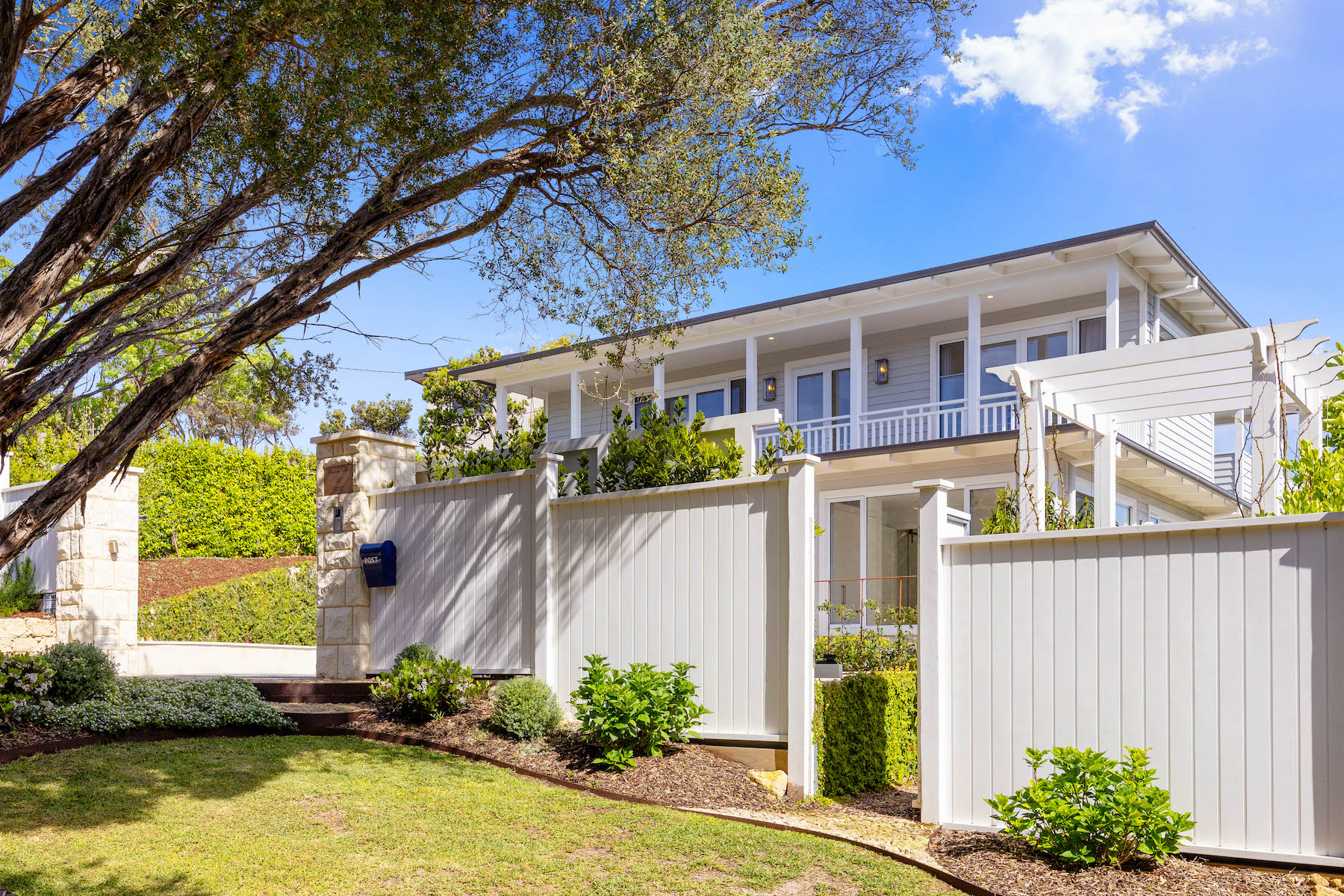 Behind secure remote gates, the limestone and weatherboard façade introduces a home conceived for long-term comfort and considered living. Set across two light-filled levels and serviced by an internal lift, the layout has been crafted so that daily life can be enjoyed predominantly on the upper floor — where sweeping bay and treetop views, generous living zones and outdoor entertaining spaces come together.