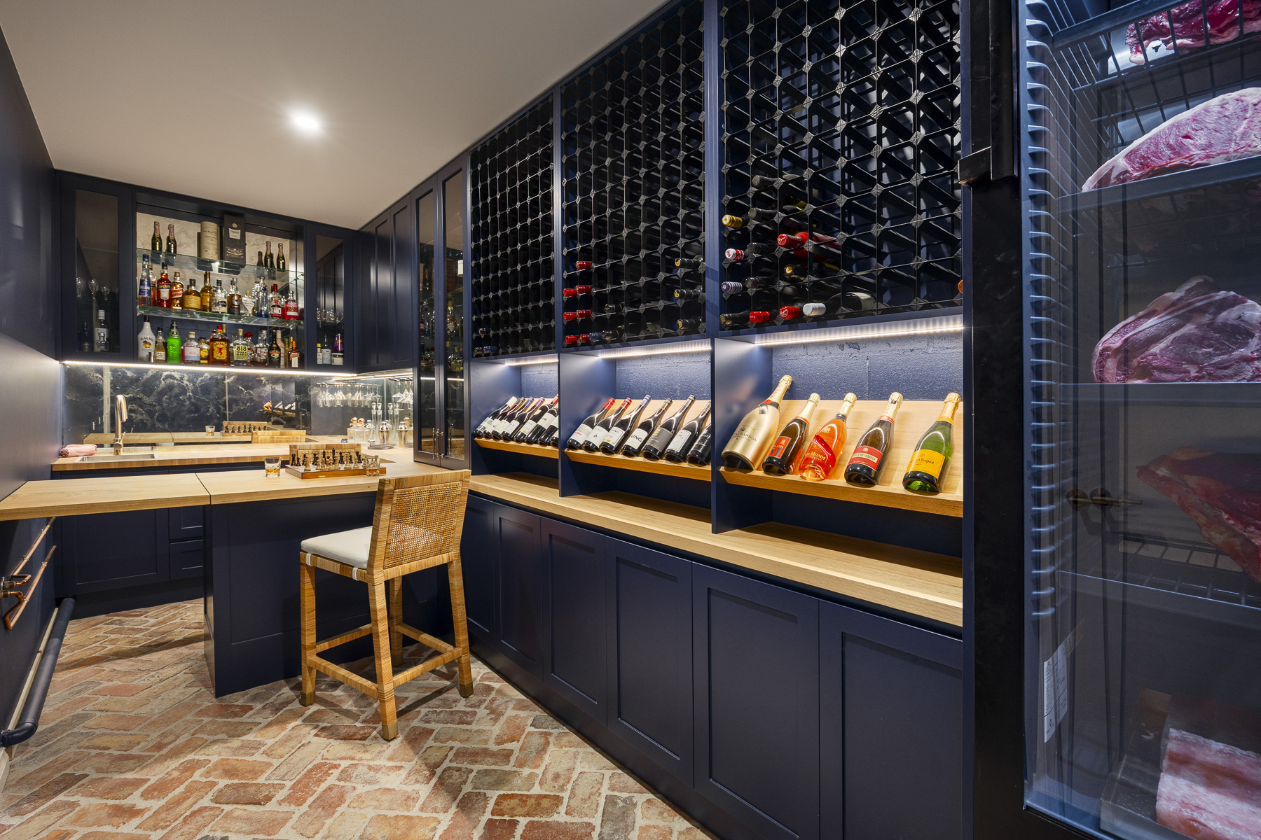 Downstairs, a relaxed rumpus room with kitchenette, a striking temperature-controlled cellar with bar, and a luxurious steam room create space for family, guests and quiet enjoyment alike.