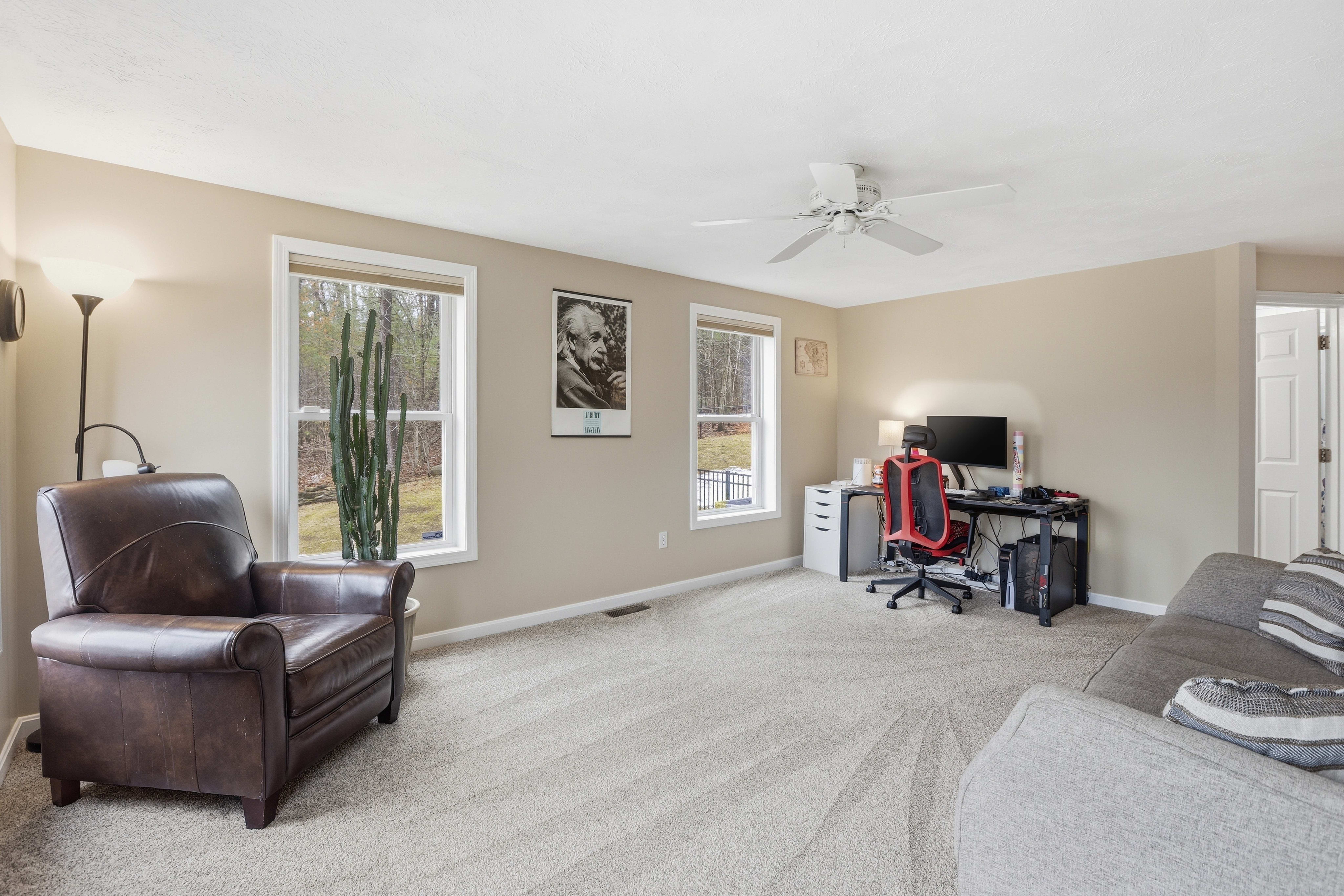 Set at the end of a cul-de-sac, this light and bright Colonial offers four levels of versatile living space designed for today’s lifestyle. Inside, a tiled foyer welcomes you to an updated kitchen featuring stainless steel appliances, pantry, and under-cabinet lighting. Bathrooms have been tastefully remodeled, and the interior has been freshly painted. The family room impresses with a cathedral ceiling, gas fireplace, and new carpeting. Well-proportioned bedrooms provide comfortable living, including a spacious front-to-back primary suite with two closets. A walk-up attic offers a fourth bedroom and additional storage. The lower level includes a heated, finished playroom and mudroom for added flexibility. Central air provides comfort during the warmer months. Outdoor living is equally appealing with an enclosed porch, composite deck, fenced backyard, and patio with firepit—ideal for relaxing or entertaining. Owned solar panels add efficiency and long-term value.