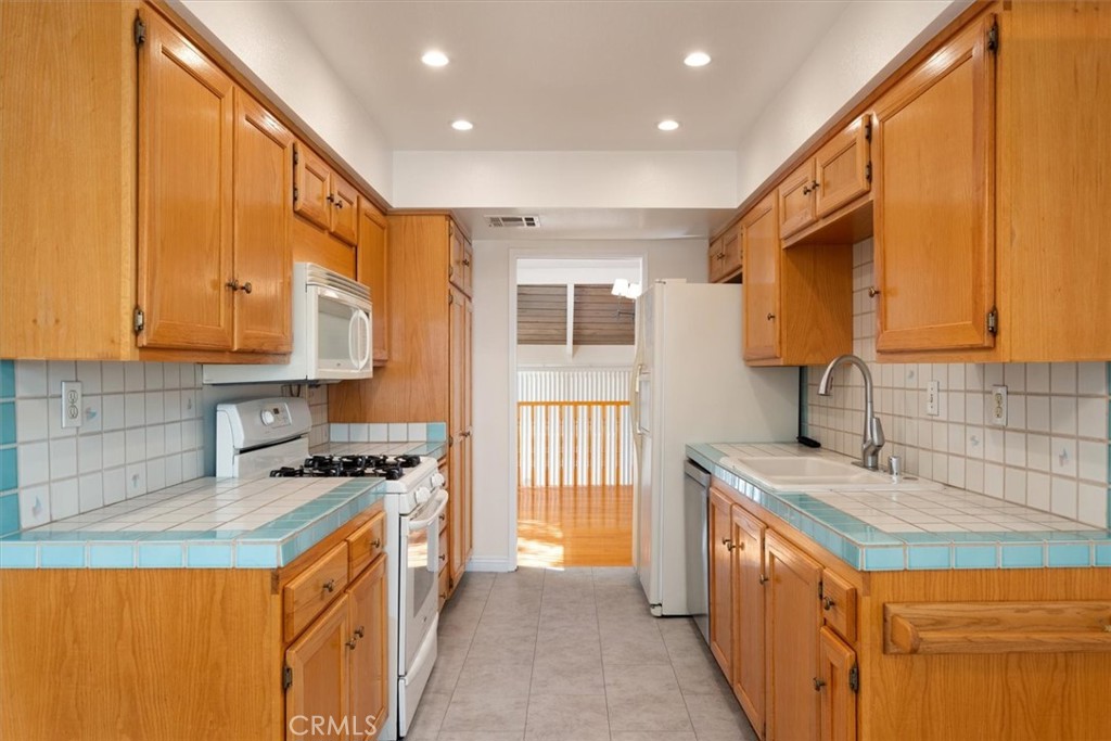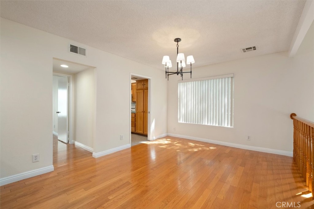 Welcome to Studio Village, a sunny end unit perfectly situated in a quiet interior location close to one of the community pools. The living room features a beamed cathedral ceiling, a cozy fireplace, and sliding glass doors that open to a private, enclosed patio - an ideal spot for relaxing or entertaining. A formal dining room overlooks the living room, creating an open, airy feel and effortless flow for gatherings. The kitchen includes a breakfast area. The convertible den with built-ins could easily be a third bedroom. A convenient bath is also on this level. Upstairs, you'll find two spacious bedrooms, each with its own en-suite bath and walk-in closet. Beautiful wood floors run throughout both levels, complemented by tile flooring in the kitchen and bathrooms. The home also offers a large, attached 2-car garage with washer, dryer, shelving, and abundant storage space. Studio Village is known for its resort-style amenities, including 6 pools, 5 spas, and 2 tennis courts, and is located within the Carpenter Elementary School District (subject to space availability - tenant to verify). Enjoy close proximity to Tujunga Village, Ventura Blvd's great shops, fine dining, public & private schools, making this an exceptional place to call home.