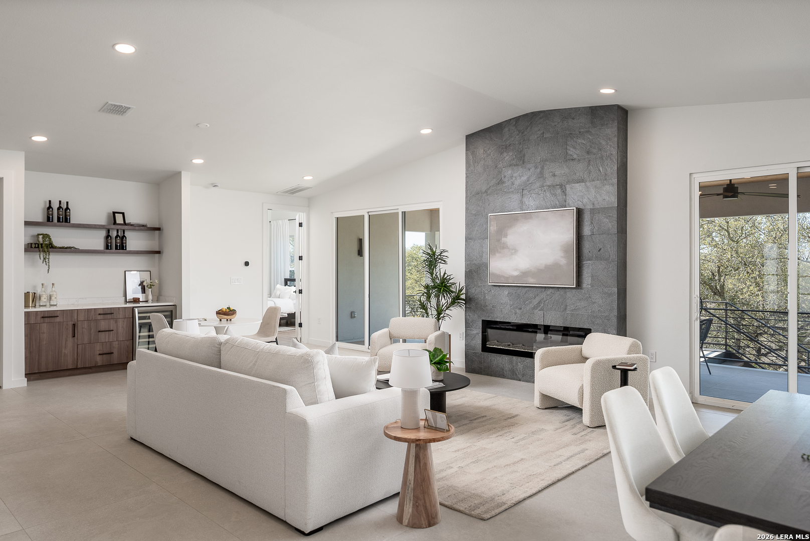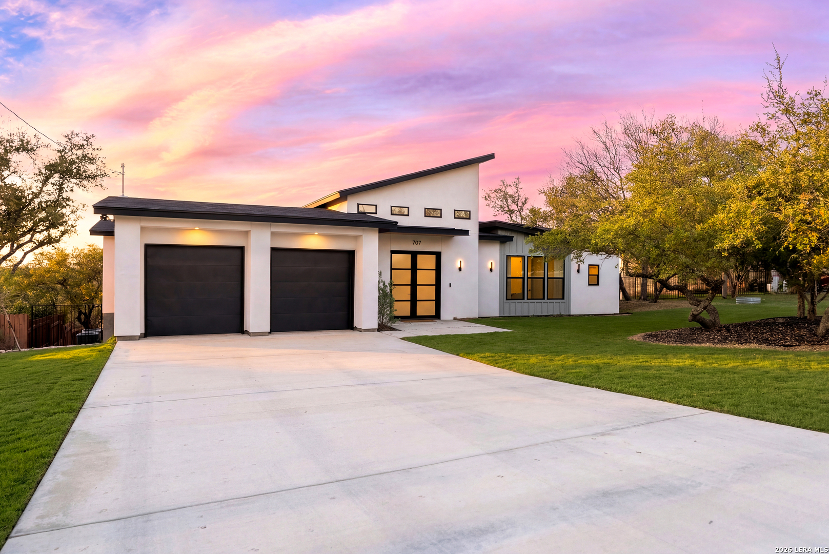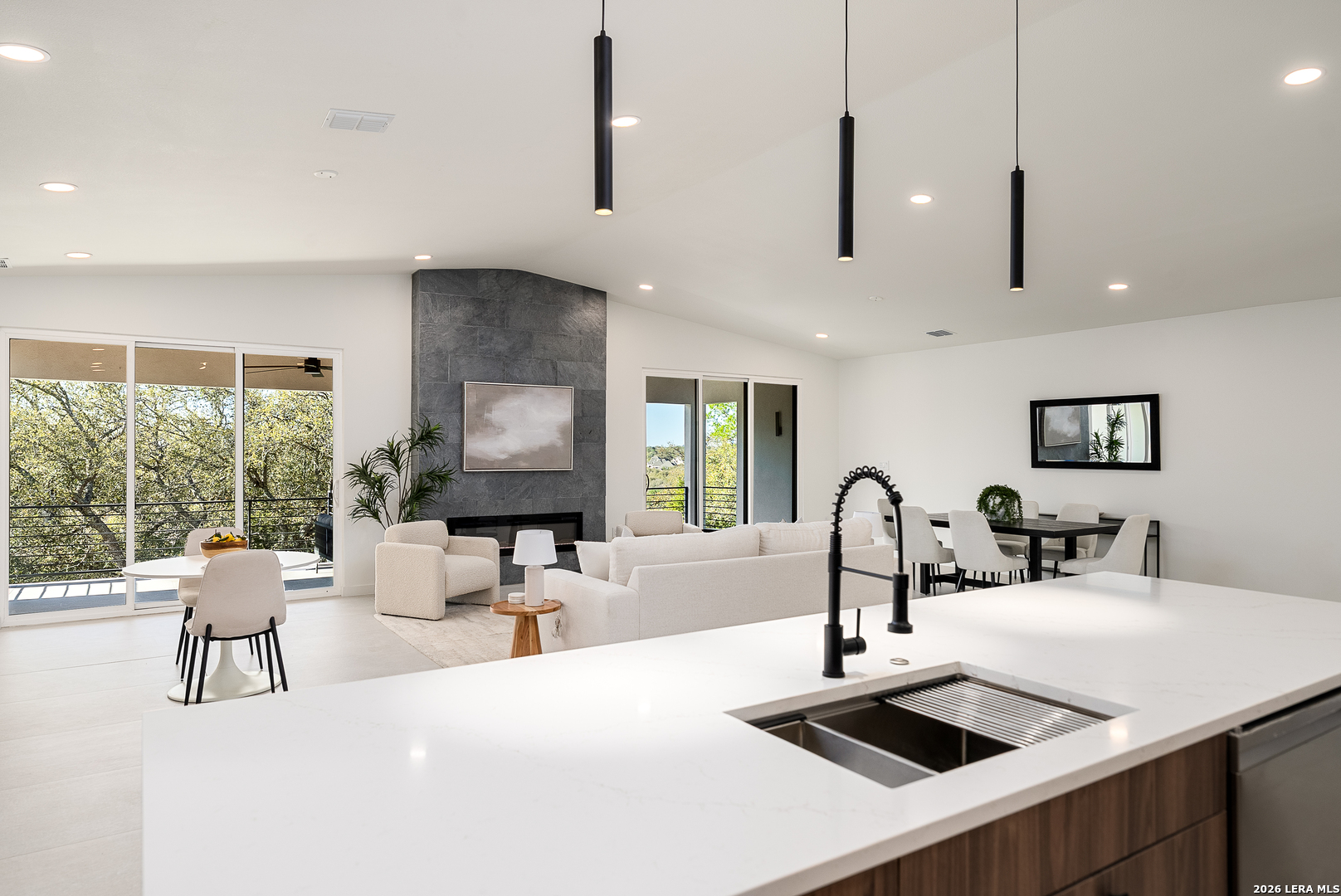 OPEN HOUSE SATURDAY MARCH 28TH 12:00PM -3:00PM // Set on nearly half an acre beneath a canopy of mature oaks in the coveted Timberwood Park community, this striking new construction residence is a true expression of modern luxury and architectural elegance. Clean lines, sleek finishes, and thoughtfully curated design elements come together to create a home that feels both sophisticated and effortlessly livable. Spanning approximately 3,029 square feet, this 4-bedroom, 4 full bath, and 1 half bath home is designed to impress at every turn. From the moment you enter, you're welcomed by expansive interiors, soaring ceilings, and breathtaking long-range scenic views that unfold throughout the home-seamlessly blending indoor and outdoor living. At the heart of the home, the chef-inspired kitchen is a true showpiece, featuring contemporary custom cabinetry, stunning quartz countertops with a dramatic waterfall- edge island, and a full suite of stainless steel Samsung appliances, including a built-in oven, cooktop, dishwasher, and refrigerator. Designed for both everyday living and elevated entertaining, the space flows beautifully into two distinct dining areas and a stylish dry bar complete with a wine fridge. The primary suite is a private retreat, offering spa-like indulgence with a luxurious walk-in shower, a sculptural floating soaking tub, and dual vanities-creating a serene escape framed by peaceful natural views. Each additional bedroom is generously sized and complete with its own walk-in closet, ensuring comfort and privacy for all. Throughout the home, a refined palette of ceramic tile and wood-like flooring (with no carpet) enhances both durability and design continuity. Additional highlights includes two HVAC systems for optimal efficiency, an indoor utility room with sink, a spacious walk-in pantry with refrigerator setup, and dedicated walk-in storage off the garage. Designed for seamless indoor-outdoor living, oversized sliding glass doors open to a covered patio with its own outdoor fireplace-perfect for enjoying tranquil evenings overlooking the expansive backyard and treetop vistas. The property offers ample space for future customization, all while maintaining privacy and serenity. A spacious two-car garage and long, flat driveway provide both convenience and curb appeal, completing this exceptional offering. This is more than a home-it's a modern sanctuary where luxury, design, and nature exist in perfect harmony.