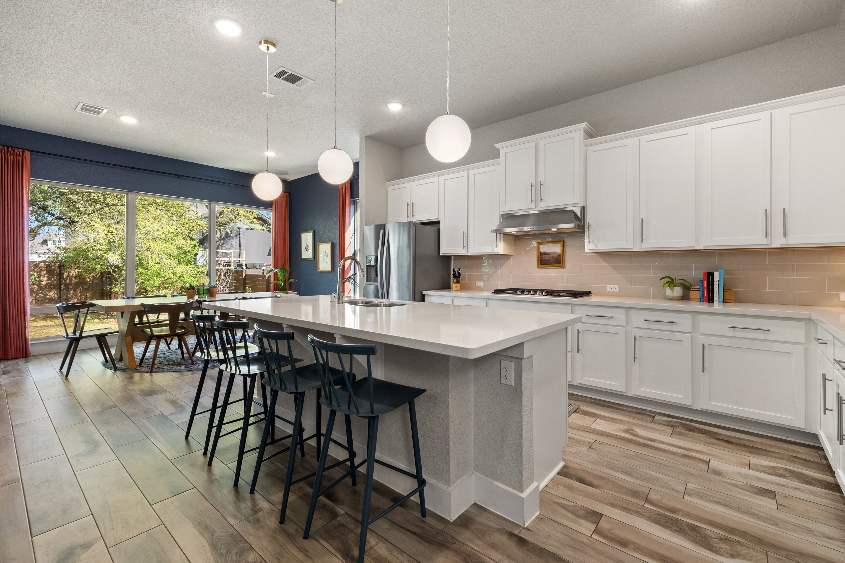 If you’ve been waiting for a Provence home with more space and more character—this is it. Not all homes in Provence are created equal—this one stands apart.Full of character and thoughtful design, this Provence residence offers a refined take on Hill Country living—tucked into a quiet cul-de-sac and set on one of the neighborhood’s more desirable homesites with a larger backyard and mature trees, a rare find within the community.A charming courtyard entry sets the tone, leading into light-filled interiors where clean lines and warm wood-look tile flooring create a sense of effortless sophistication. The open-concept living spaces are both inviting and functional, designed for everyday living and elevated entertaining.At the center of the home, the chef’s kitchen features quartz countertops, a gas cooktop, stainless steel appliances, and an expansive breakfast bar—perfect for gathering. The adjoining dining area is wrapped in windows, bringing in natural light and creating a seamless connection to the outdoor setting.The well-designed 5-bedroom floor plan offers exceptional flexibility, with both the primary suite and a secondary bedroom with full bath located on the main level—ideal for guests, multigenerational living, or a private office. The primary suite feels like a true retreat, complete with a spacious layout, large walk-in closet, and a spa-inspired bath with a soaking tub and oversized walk-in shower.Upstairs, a game room creates a relaxed second living space, complemented by three additional bedrooms, including one with a private en-suite bath.Outdoor living is where this home truly stands apart. The covered patio with a built-in grill opens to a generously sized backyard framed by mature fig trees—offering privacy, shade, and a perfect backyard retreat.Located within the highly sought-after Provence community and zoned to acclaimed Lake Travis ISD, residents enjoy access to a thoughtfully designed amenity center with a pool, fitness center, pavilion, and miles of scenic trails—all just minutes from Bee Cave, and Dripping Springs.This home strikes the balance between style and substance—offering character, comfort, and a setting that’s increasingly hard to find.