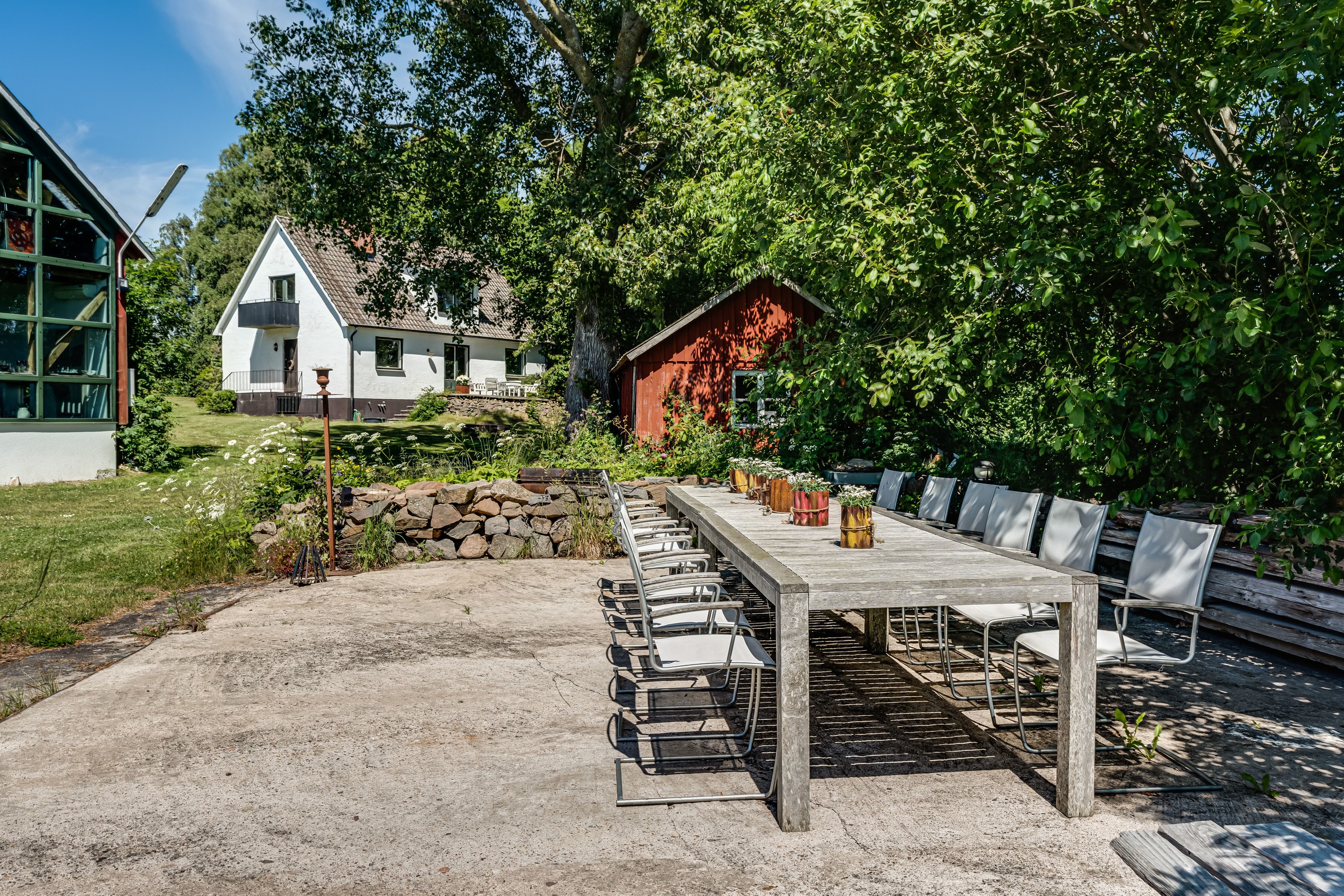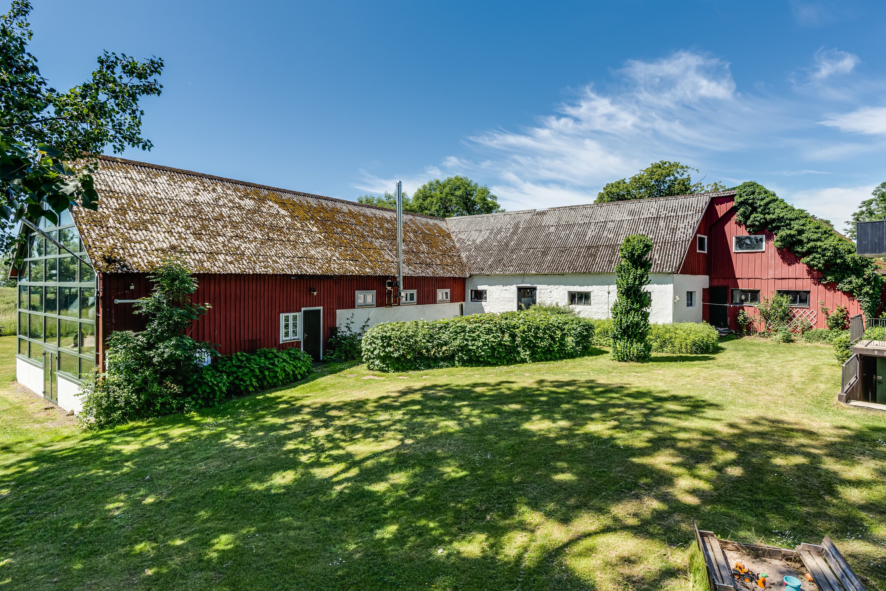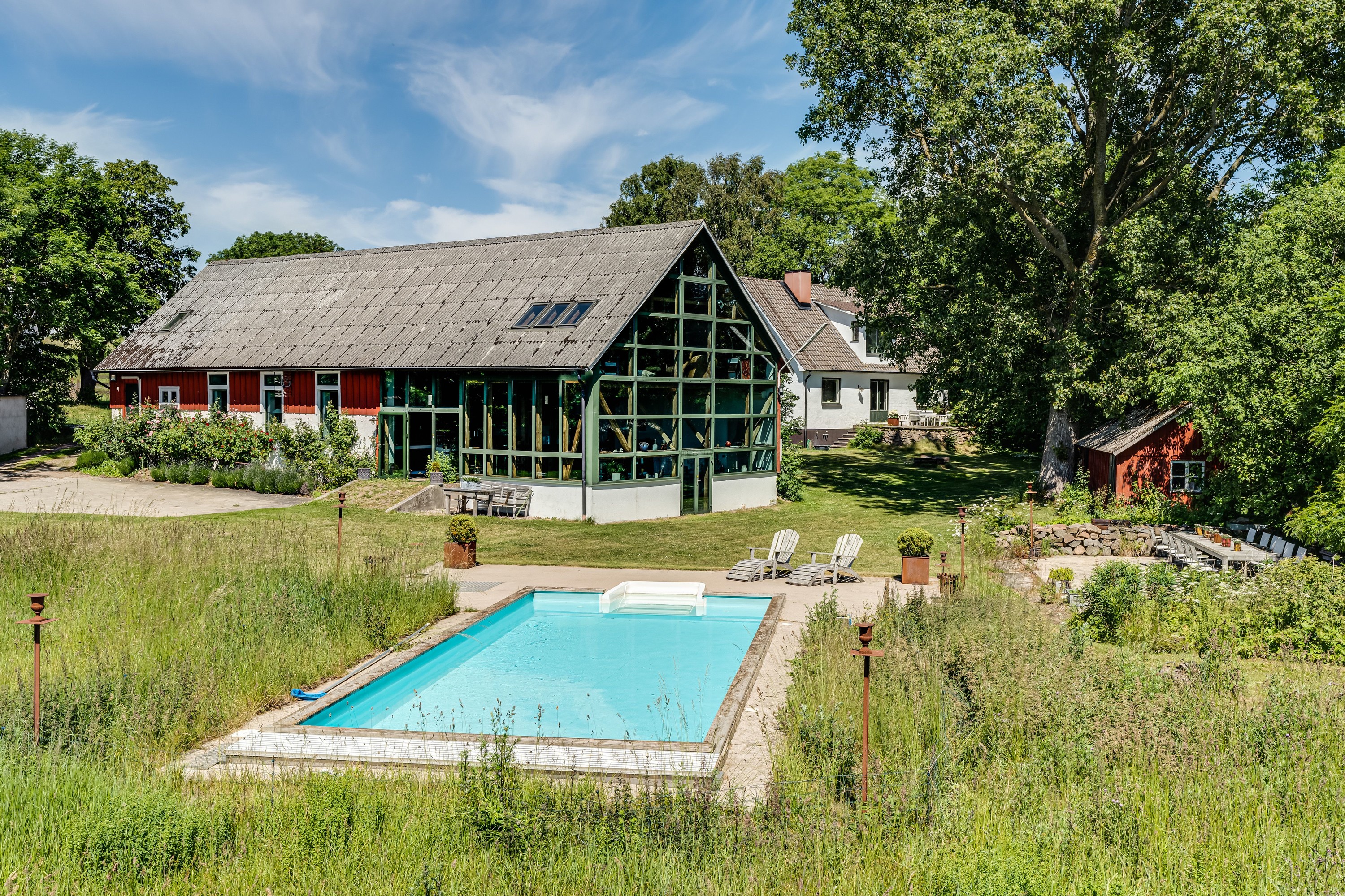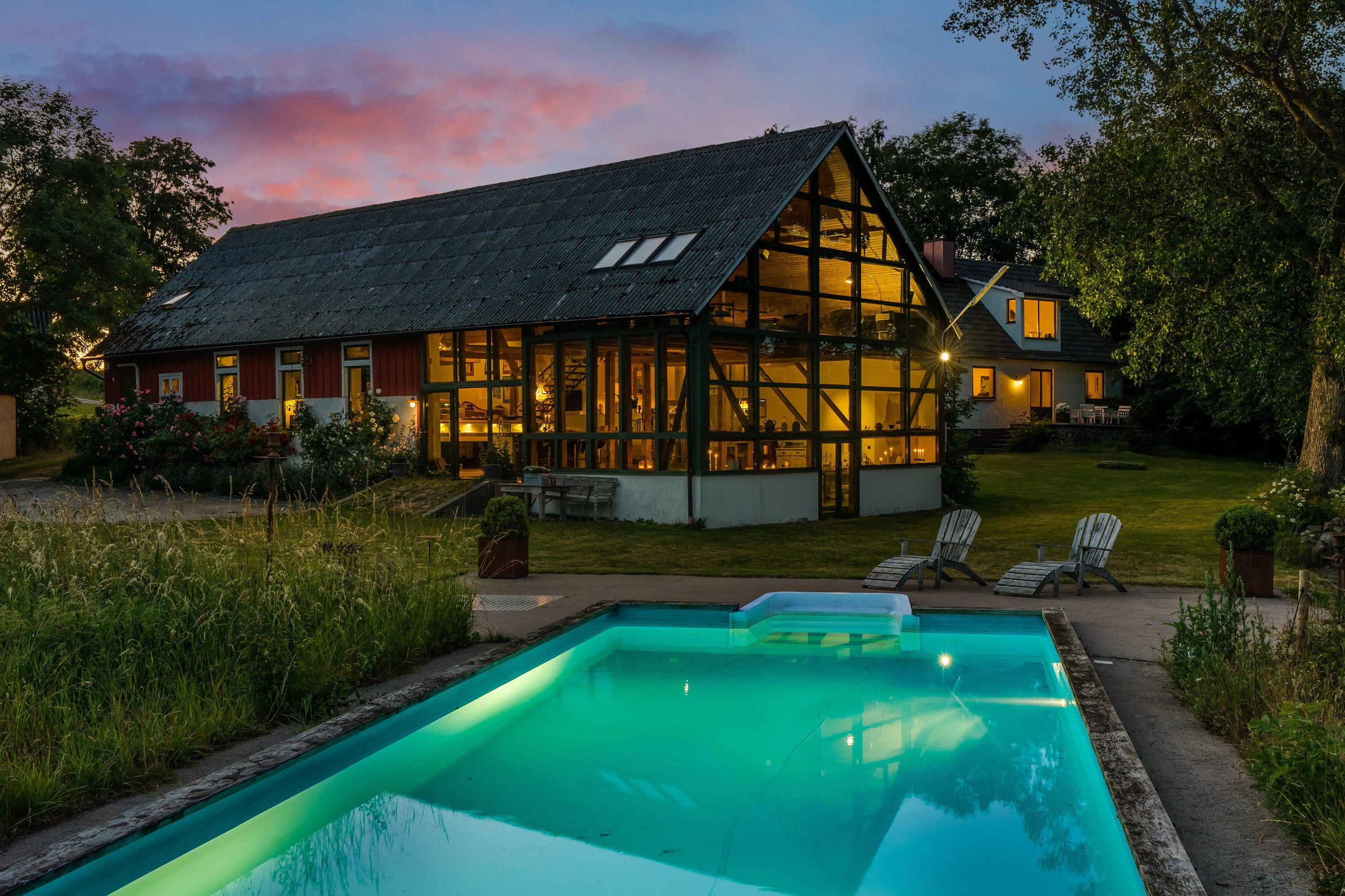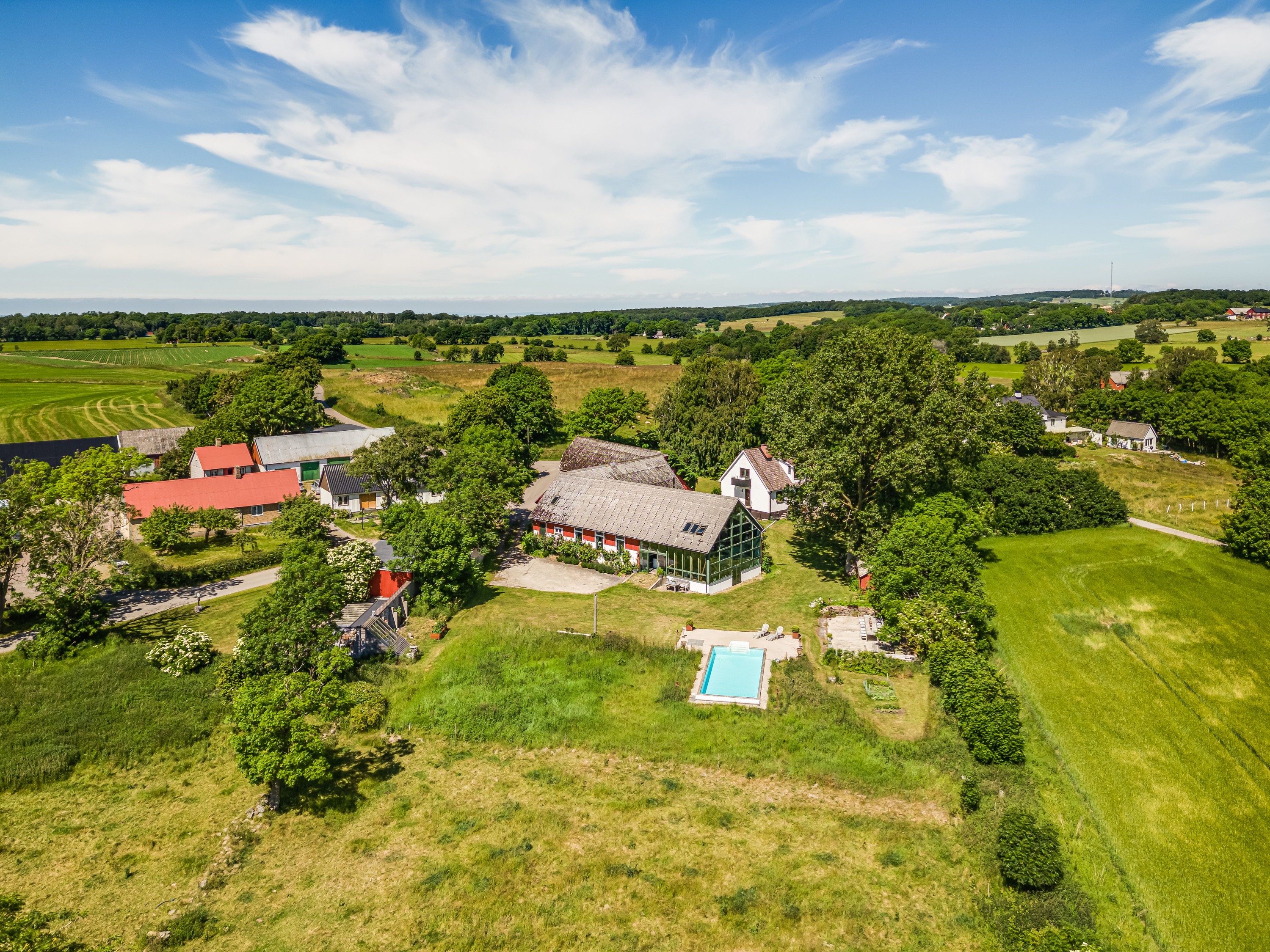 Set in a peaceful and rural location in Påarp, just outside Torekov, this unique property enjoys stunning views over rolling fields, the sea, and Kullaberg. Extensively renovated spaces have been created for quality living and a dream home setting, complemented by a beautiful garden plot with a pool.