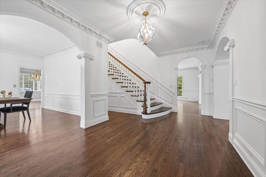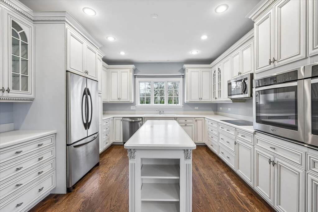 Located in a superb East Winnetka location this 4 bedroom 3.2 bath lovely classic Hemphill built home boasts 3 car attached garage and an elevator. Glen Oak Drive is a private cul-de-sac street on the lake east of Sheridan Road with only 5 stately homes. A separate circular drive & double door entry leads into a large and gracious foyer with pretty moldings and staircase. When you step into the spacious foyer, you are greeted by the open and beautiful staircase. Off the foyer is a spacious living room featuring a decorative fireplace and built in bookcases. The living room flows into a sun filled sunroom with skylight and sliding glass doors leading to a bluestone terrace and private back yard. Adjacent to the sunroom is an inviting family room with a wood-burning fireplace and wet bar. A lovely formal dining room has impressive moldings and is adjacent to the kitchen. There is a handsome private office boasting wood paneling and built in bookcases and an elegant guest powder room, just steps away off the foyer with second first floor powder room. The large kitchen features abundant white cabinetry, center island, stainless steel appliances and a designated eating area. Conveniently located off the kitchen is the laundry room with many cabinets and closets for all your storage needs and an additional powder room. The oversized attached heated 3 car garage is 1050 SF and has a staircase leading to an attic above and a second staircase to the basement. A traditional staircase or the elevator brings you upstairs to the second floor which features 4 large bedrooms with fabulous closet space and 3 full bathrooms. The primary suite bedroom has access to a private balcony overlooking the backyard, 2 large walk-in closets and a primary bath with separate shower and tub. In the full basement there is a recreation room, an area for a fifth bedroom or second office, walk-in cedar closet and abundant storage. The elevator services all 3 levels of the house. There are beautiful architectural moldings and chair rail detail in the house along with dark stained hardwood floors throughout and nine foot ceilings that grace the first floor. The lower level is spacious and awaits your personalization. Enjoy seasonal views of the lake and cool breezes from this classic home in a most coveted location near Tower Road Beach.