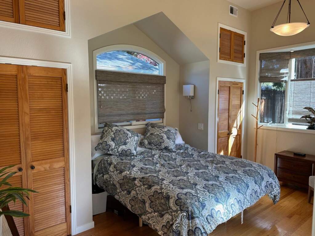 Contemporary home with high ceilings, ideally located in The Willows. This neighborhood is renowned for its award-winning schools, picturesque, tree-lined streets, and active community life. Featuring four spacious bedrooms, including one converted into a home office, perfect for remote work. A welcoming living room centered around the fireplace, along with two full bathrooms. Cook and entertain in an updated kitchen equipped with stainless-steel appliances, a breakfast counter, and an adjoining open-plan dining and family room that leads out to a lush backyard. Step outside to a professionally landscaped garden complete with three comfortable seating areas, two fountains, outdoor dining, a fire pit, and a rejuvenating hot tub located under a redwood tree. Benefit from energy efficiency with rooftop solar panels and an EV charging station in the driveway, and a separate laundry area with front-loading appliances. Strategically positioned near tech giants like Meta, Apple, Google, and Microsoft, as well as financial and biotech hubs, this location offers unparalleled access to work, leisure, and education. Close to cafes, restaurants, and shopping. and parks, and both downtown Palo Alto and Menlo Park. CURRENTLY TENANT OCCUPIED. DO NOT DISTURB TENANTS.