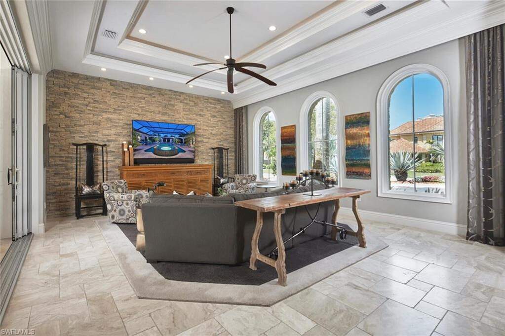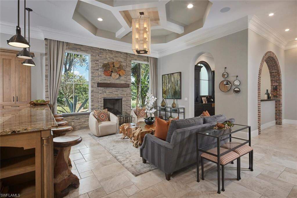 Among the rarest offerings to emerge in Tuscany Isle within The Colony, this landmark single-family estate commands over 5,377 square feet of living space set upon more than three-quarters of an acre of immaculately curated landscaping. It offers a scale of privacy, proportion, and presence that defines true estate living in Southwest Florida's most prestigious golf community. This is not a home you simply live in; this is a home you retreat to. The outdoor living experience elevates this property to an entirely different category. Guest suites with their own private ensuite bathrooms, flank an expansive resort-style pool and entertaining terrace that captures the Florida sun at its most generous. The layout was conceived specifically for true outdoor entertaining at scale. An outdoor fire pit, a cozy fireplace with multiple covered living and dining areas, and lush professional landscaping complete a compound that functions as a private resort: beautiful, autonomous, and fully self-contained. Inside, Old Florida warmth and unparalleled craftsmanship meet without pretension. Exquisite millwork ceilings frame every room, highlighting warm and inviting interiors and a sensibility that is refined and genuinely livable, never ostentatious, always exceptional. The great room flows openly and generously, drawing family and guests naturally together while maintaining the unhurried ease that defines this home. A wine bar anchors the entertaining space, while professional Wolf appliances define an expansive, yet welcoming kitchen designed for both casual mornings and effortless holiday gatherings. The primary suite is exactly that: an oasis. Conceived as a private sanctuary within the estate, it offers the serenity and spa-caliber finish befitting a true retreat, with every detail considered and nothing overlooked. This is a true family compound, the rare property where three generations can gather under one roof, where guests arrive for a long weekend and stay for the week, and where every family unit feels equally at home. A spacious 3-car garage and a whole-house generator ensure seamless, uninterrupted enjoyment whether you are in residence or away. These details speak to the broader character of this home: nothing left to chance, nothing left to want. For the luxury buyer seeking an estate of genuine distinction, where guests experience the privacy of their own retreat while remaining warmly connected to the whole. Some estates are admired. This one is felt.