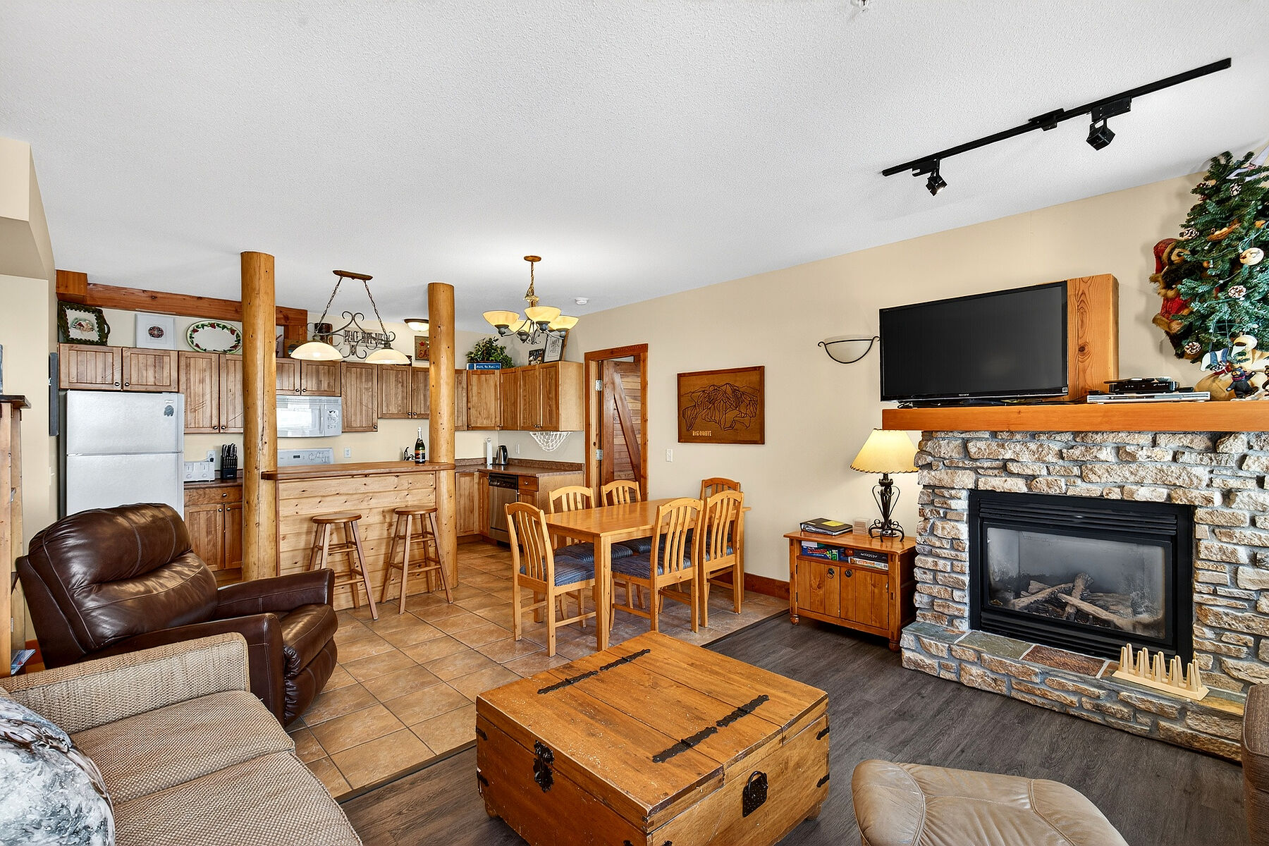 Welcome to The Grizzly, one of Big White’s most iconic and sought-after lodges. This two bedroom, two bathroom corner suite perfectly captures the spirit of "Big White" and is ready for you to move right in. Experience the warmth of mountain living in a fully furnished space designed for comfort. The open-concept floor plan features a nicely equipped sit-up bar for casual breakfast before hitting the slopes. A Cozy Living Area, anchored by a stunning rock fireplace and a charming window seat. Enjoy the private Deck with Your own personal private hot tub and BBQ for the ultimate apres ski experience. Life at The Grizzly offers more than just a place to rest; it offers a community. Relax in the massive two-story great room with soaring views of the Monashee Mountains. Challenge friends to a pool game, watch the game on the big screen, or secure the "best spot" in the village to watch the famous Big White fireworks. Additional perks include a large twelve person outdoor hot tub and sauna, secure underground parkade & elevator access. You’ll appreciate the Prime Location: Steps from the Village Center and Bullet Chair. Ski down to the Plaza, Ridge, or Snow Ghost chairs—no gondola required! Exceptional Investment with a history of rental clientele, this unit is a turnkey investment that ticks every box for vacationers. Big White is outside of the Foreign Buyer Ban, Foreign Buyers Tax, Speculation Tax, and the Short-Term Rental Ban—making it an unparalleled investment opportunity!