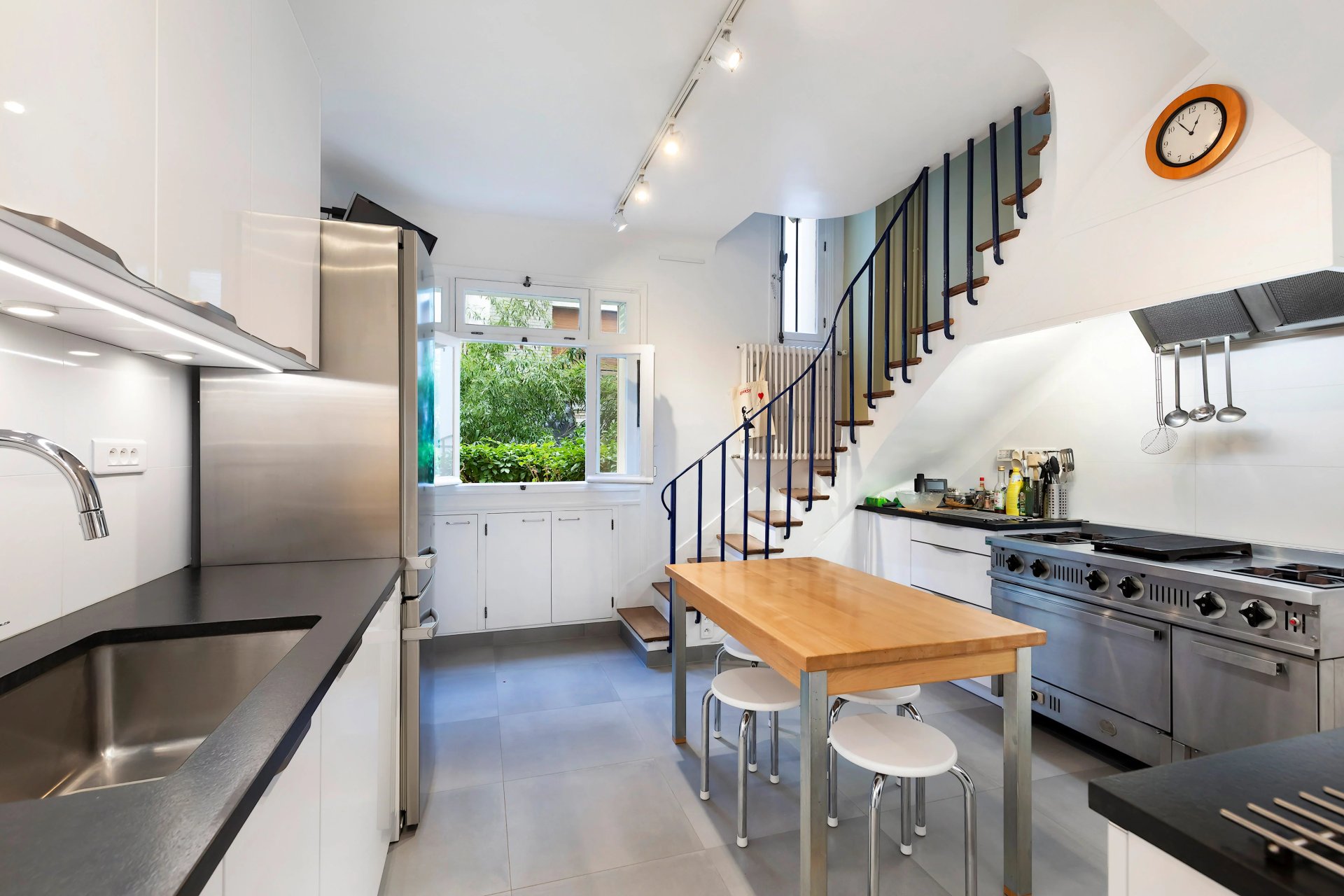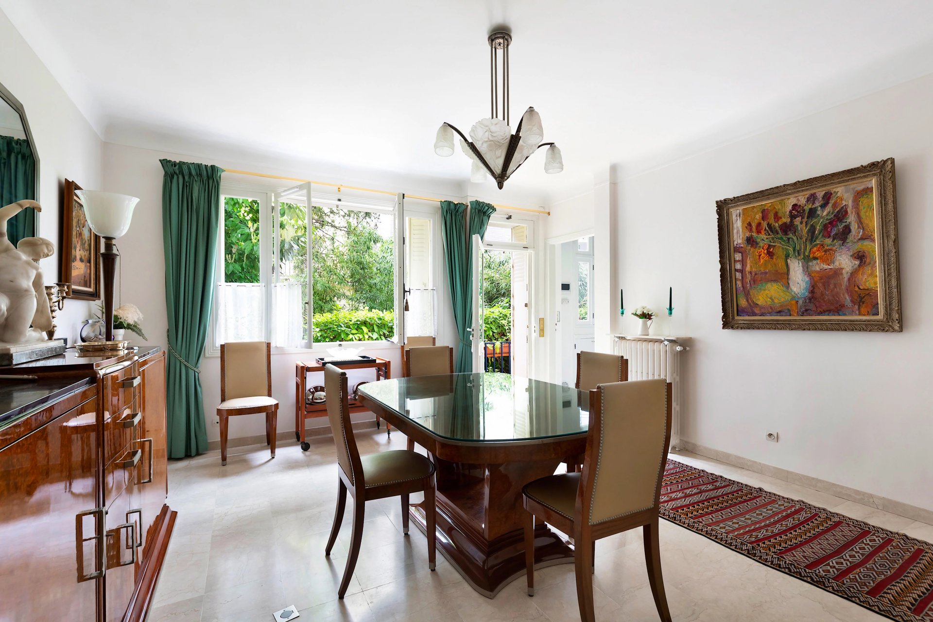 This exceptional dual-aspect private mansion dating from the 1930s is on four floors and an entresol. It includes an entrance hall with a remarkable stone and oak period staircase accessing the upper floors, a dining room and a fitted and equipped kitchen opening onto a garden/terrace, a guest wc and a heated garage.