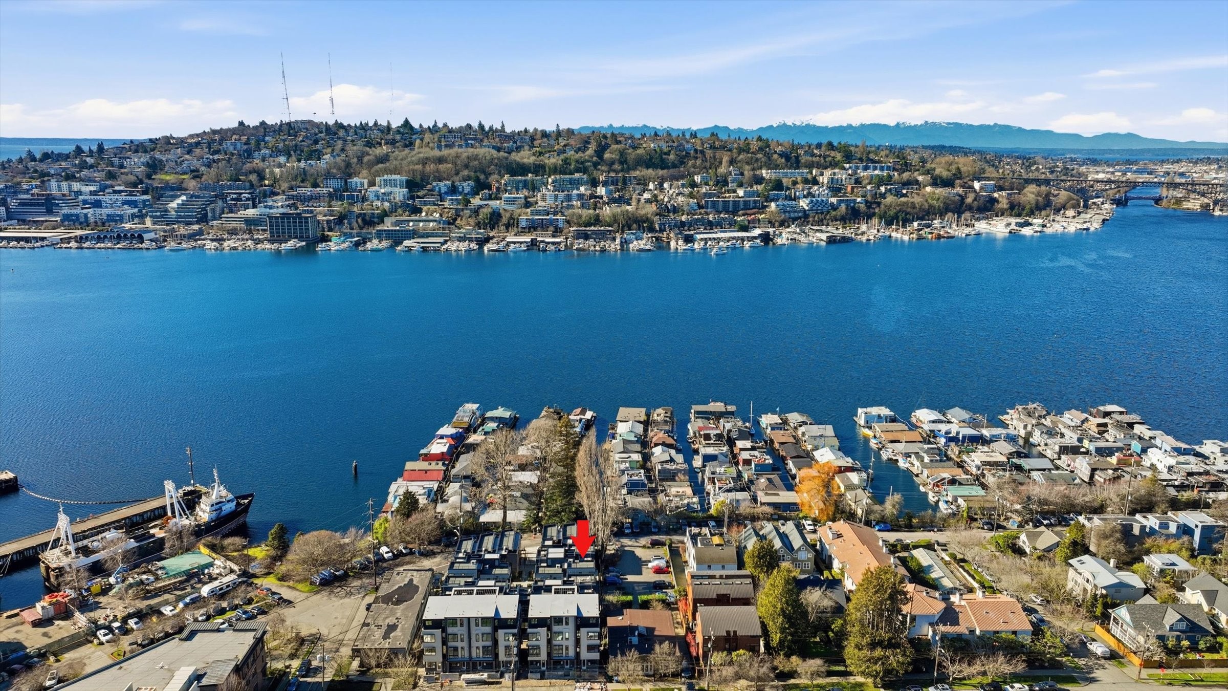 Harbor 26 places you front and center to Lake Union living in the heart of Eastlake. This thoughtfully designed 2 bed, 2 bath townhome offers 998 sqft of modern comfort, blending clean architecture with a bright, open layout that lives larger than its footprint. Natural light fills the main living spaces, highlighting sleek finishes and a contemporary kitchen built for both daily living and entertaining. Upstairs, a private rooftop deck delivers sweeping views of Lake Union and the Seattle skyline—ideal for sunset unwinding or hosting under the city lights. Enjoy the convenience of secured garage parking within this gated 26-home community by DEP Homes Eastlake, a trusted local builder known for quality craftsmanship and timeless design. Modern. Efficient. Unmistakably Eastlake.