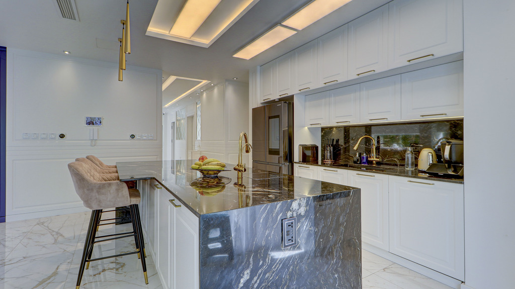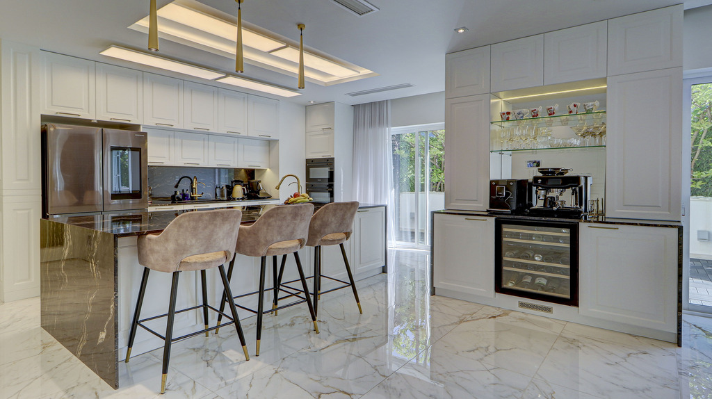 This exceptional residence is finished to the highest standards and equipped with premium features throughout, including concealed Daikin air-conditioning, low voltage underfloor heating, and a fully integrated smart home system. Further benefits include CCTV surveillance, an intelligent lighting system, a UV water sterilization system, and solar panels for enhanced efficiency and sustainability. The property is served by a private lift with direct access into the penthouse and is fitted with top-end appliances and bespoke cabinetry throughout.