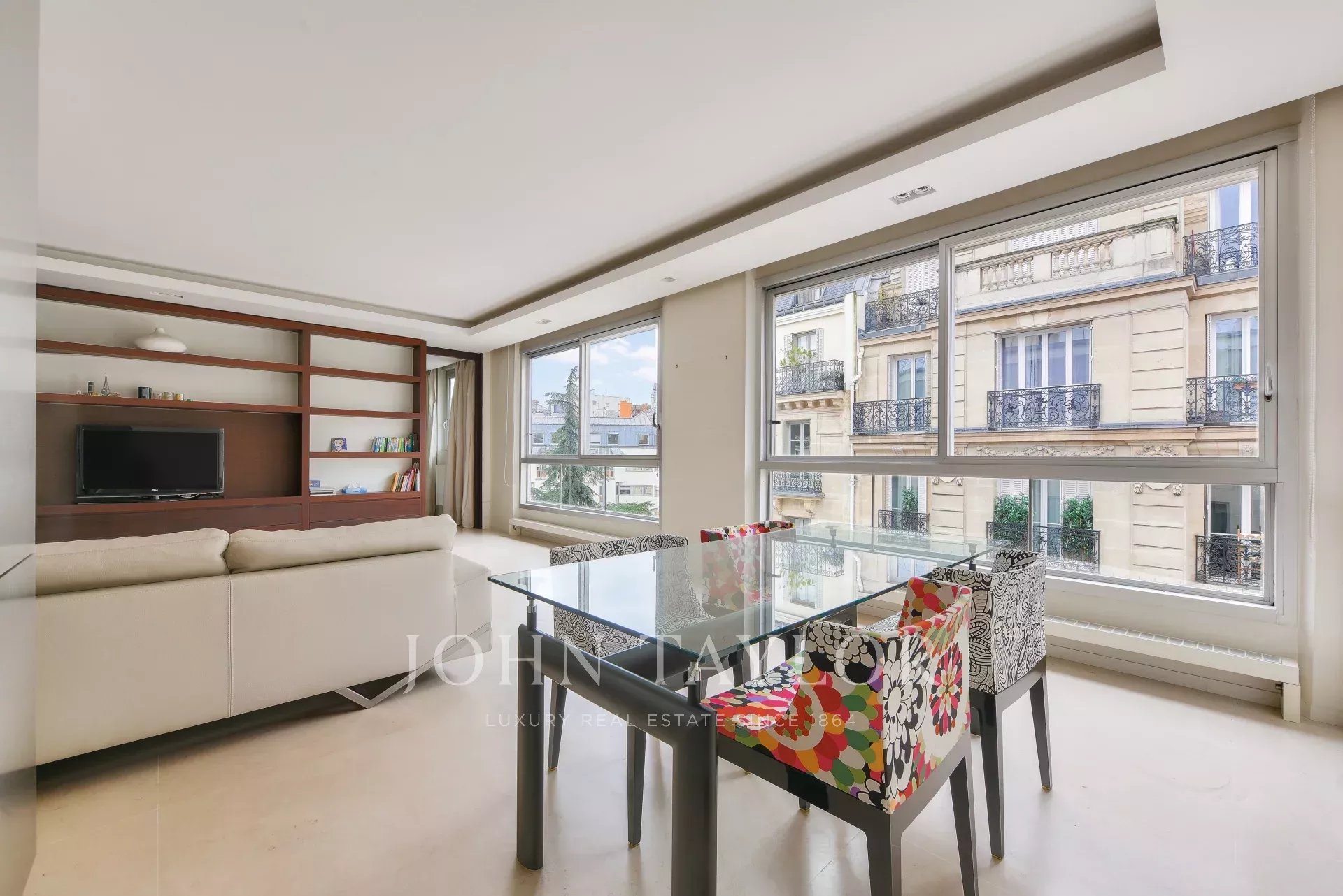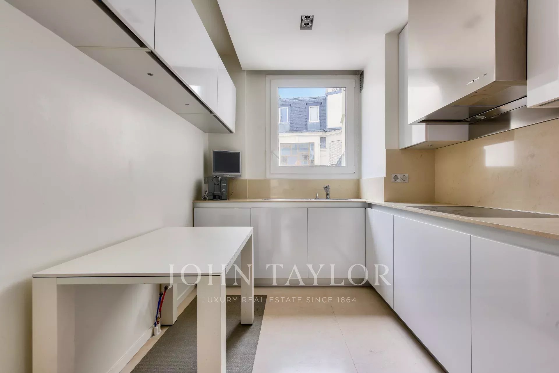 在一栋新近建成的豪华楼房内,105 平方米的明亮公寓位于 5 楼,配有电梯,状况良好。它拥有一个通透的平面,非常明亮,具有以下特点:- 入口大厅通向一个 41 平方米的接待室、- 一个厨房、- 带浴室和卫生间的主人套房、- 带浴室的次卧- 一间书房、- 客用卫生间。这栋高质量的房产位于一栋最近翻修过的公共区域内,还有两个地窖和地下室停车场。