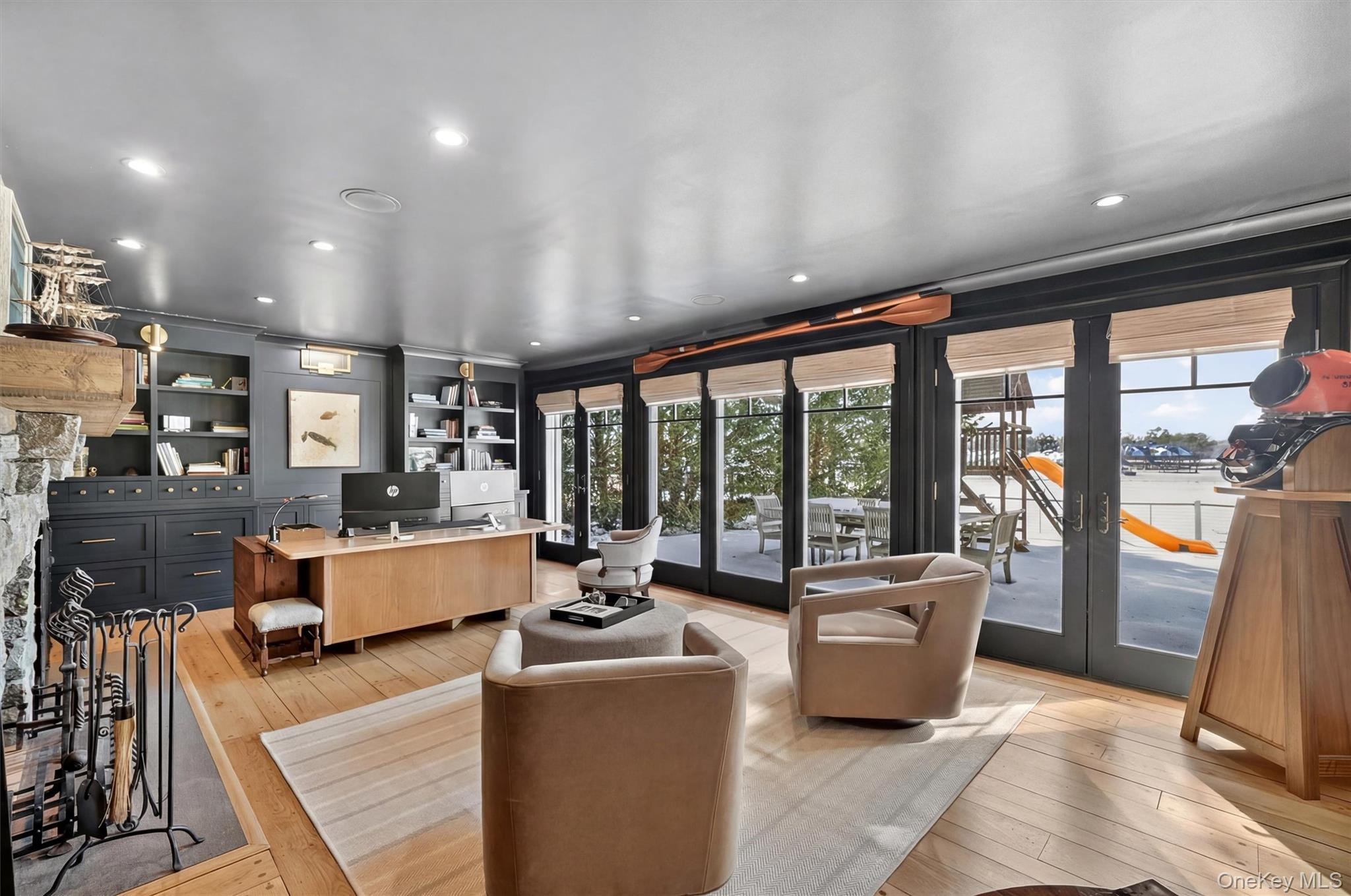 A distinguished waterfront residence in the prestigious Shore Acres community of Mamaroneck with sweeping views of the Long Island Sound. This remarkable five-bedroom home offers breathtaking water views, refined interiors, and a private resort-style setting designed for both gracious entertaining and relaxed coastal living. Thoughtfully designed and beautifully proportioned, the home features five spacious bedrooms, including three en-suite retreats. The stunning primary suite serves as a true sanctuary, complete with a fireplace, private balcony overlooking the Sound, expansive walk-in closets, and a luxurious spa-inspired primary bath. The main living areas offer comfortable yet sophisticated spaces for everyday living and gathering, including a gourmet kitchen and light-filled living areas where walls of windows capture natural light and the beauty of the surrounding waterfront. The family room is highlighted by beautiful coffered ceilings, adding architectural character and warmth to the space. A home office with walls of glass overlooking the Sound features pegged wood floors and a fireplace, creating a warm and inspiring workspace with tranquil water views. Outdoor living is equally impressive. Just off the kitchen, a patio with a pergola provides a wonderful setting for outdoor dining and entertaining. The beautifully landscaped grounds also feature a gunite pool, pool house with bath, and expansive outdoor spaces ideal for relaxing or hosting gatherings. A private dock offers direct access to the Long Island Sound, making this property ideal for boating enthusiasts and those who appreciate life on the water. Additional highlights include second-floor laundry, abundant closet and storage space, a heated driveway, and a heated two-car garage for year-round comfort and convenience. Located in the highly sought-after Shore Acres waterfront community, known for its scenic coastline, beautiful homes, and close proximity to village amenities. Residents also have the option to join the nearby Shore Acres Beach Club, offering access to waterfront recreation and community amenities just moments from the home. Just minutes from the charming village of Mamaroneck, renowned yacht clubs, beaches, dining, and Metro-North for an easy commute to Manhattan. A rare opportunity to own a spectacular Long Island Sound waterfront home in one of Westchester County's most desirable coastal communities. Property includes a private deep-water dock with hydraulic boat lift - a rare and highly desirable feature in Shore Acres for direct boating access.