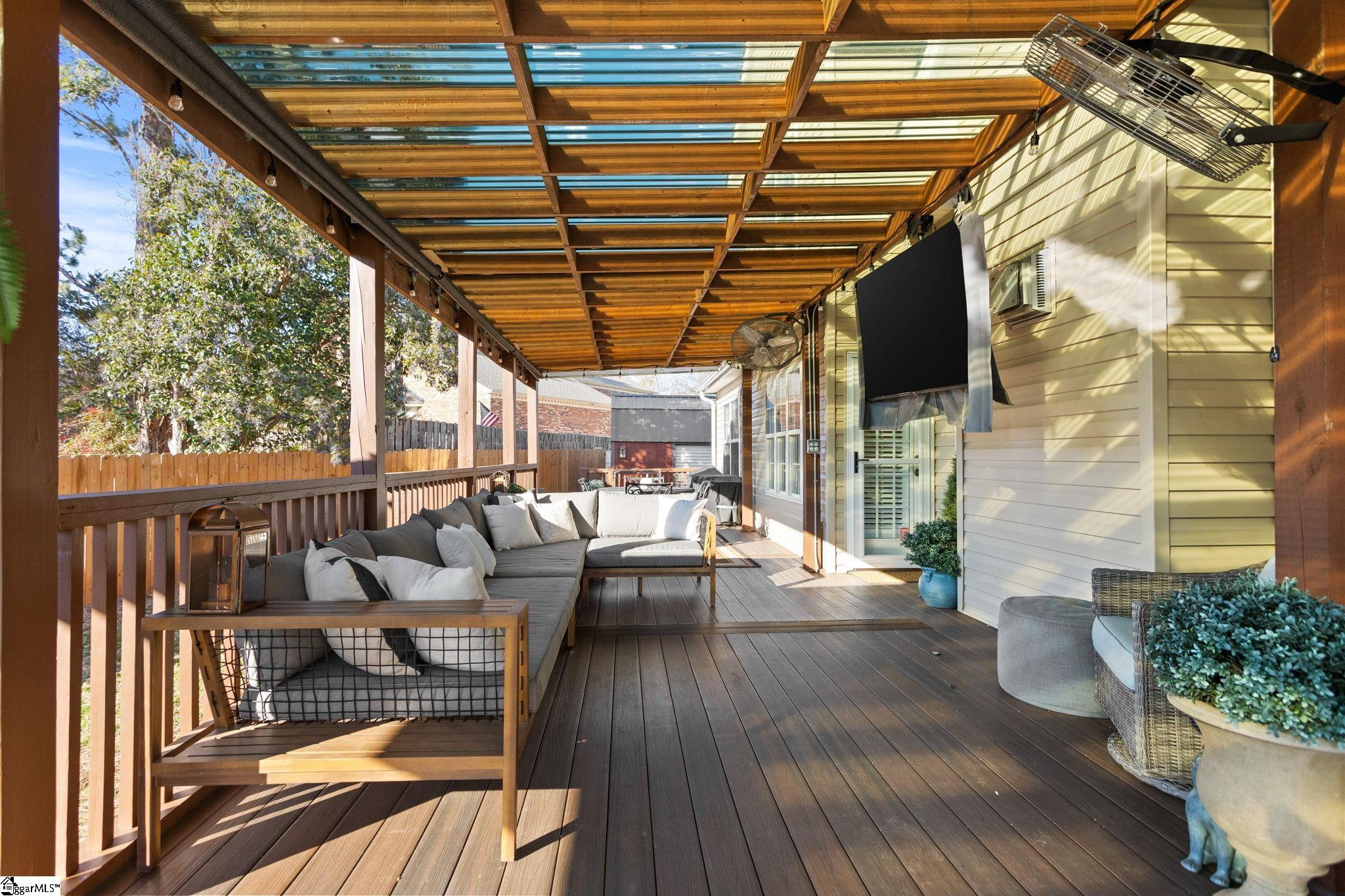 Private Greenville Retreat with Exceptional Upgrades, Expansive Outdoor Living, and Versatile Spaces - NO HOA. Motivated seller. "PRICED $50,000 dollars below recent appraisal". Privately positioned off the road, creating a peaceful setting with a spacious backyard retreat. This spacious home offers approximately 3,200 square feet with 4 bedrooms and 3 full bathrooms, with the primary bedroom and an additional bedroom conveniently located on the main level. The upstairs features new plush carpeting, two additional bedrooms, a full bath, a large loft, and a spacious bonus room that could easily function as a fifth bedroom/media room or additional living area. With numerous updates throughout - including shiplap accent walls in the great room and kitchen, a reclaimed barn wood fireplace mantel, and custom shades for added interior character - this home is truly move-in ready! The kitchen features natural stone quartzite countertops, KitchenAid appliances, a gas range, and a microwave that doubles as a second oven. The main level offers continuous luxury LVP flooring along with updated lighting fixtures, ceiling fans, faucets, and fresh neutral colored interior paint in Sherwin Williams Alabaster. Major improvements provide peace of mind for the next owner some of which are to include two brand new HVAC systems in 2024 and 2025, architectural shingle roof 2025, and a fully encapsulated crawlspace completed in 2025, tankless hot water heater, and updated PEX plumbing home repipe for added piece of mind. This well-maintained custom built home has been carefully nurtured by its original owner. The main level also features a dedicated in-home fitness room with full-length mirrors, track lighting, and its own mini-split unit, providing a flexible space that could serve a variety of lifestyle needs. This room can also easily revert to the original two car garage. Outdoor living is a standout feature of the property. The impressive triple-level covered back deck creates a luxurious retreat featuring a sunken Hot Springs hot tub, roll-down privacy shades, app-controlled outdoor lighting, a television area, and a separate grilling deck - perfect for relaxing or entertaining. The fully fenced backyard continues the outdoor experience with a spacious concrete patio and pergola designed for comfortable outdoor living and gatherings with generous seating space. Another highlight of the property is the detached studio-style building that has been extensively improved with electricity, plumbing, lighting, and waterproof, scratch-proof LVP flooring. This versatile space offers many possibilities including a home business, workshop, guest retreat, or additional flex space. The building also features its own private fenced courtyard separate from the main backyard, creating an additional peaceful outdoor area with gates, concrete walkway, and its own private entrance. The property also includes a second large storage shed on the opposite side of the property with excellent space for tools, lawn equipment, and additional storage. The private setting and outdoor living spaces and the separate studio building truly come to life once experienced in person. With the numerous extras this home provides and situated in a peaceful setting with convenient access to Greenville shopping, dining, the Swamp Rabbit Trail, Gower Pool, and more, this property offers a rare combination of space, upgrades, flexible areas, and inviting outdoor living - all with no HOA and priced below recent appraisal, a must see! Walking distance to Reedy Laurel Elementary NEW school!!