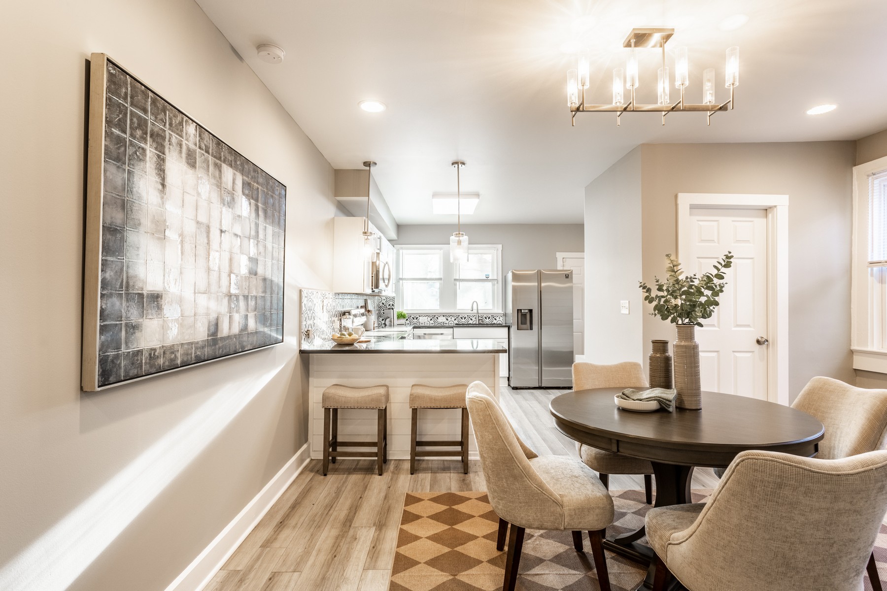 Step into style with this beautiful 3-bedroom townhome that perfectly balances modern luxury with urban convenience. The open-concept main floor features stunning luxury vinyl plank flooring and a bright, white chef's kitchen complete with stainless steel appliances, a sleek breakfast bar, and a custom tile backsplash. Upstairs, you'll find three spacious bedrooms and updated bathrooms designed with a contemporary flair. Rare for the area, this home boasts a fully fenced rear yard-perfect for pets, gardening, or private weekend BBQs. Located just minutes from the Monon Trail, The Children's Museum, and the Red Line, you are perfectly positioned between the energy of Downtown and the charm of Broad Ripple.