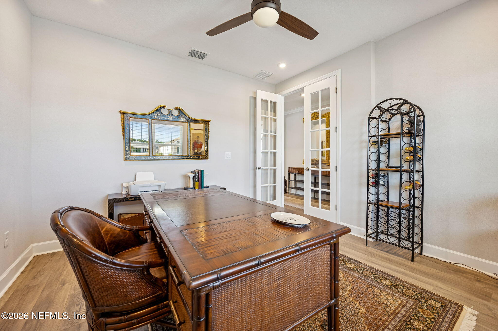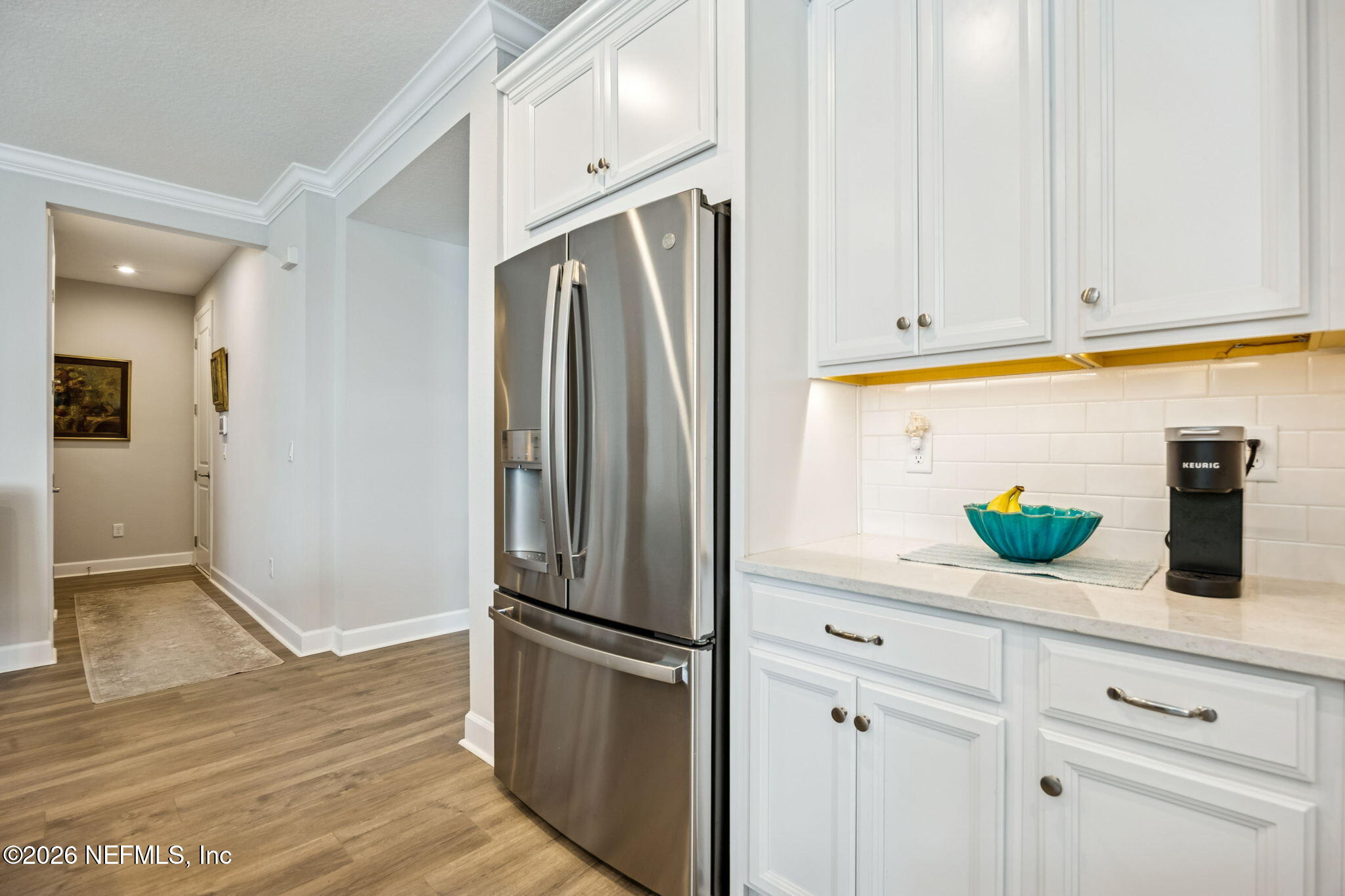 Experience elevated coastal living in this impeccably upgraded home situated on a private preserve homesite in the highly sought-after Amelia Walk community of Fernandina Beach. Designed for both entertaining and everyday comfort, this residence features a seamless open floor plan enhanced by engineered hardwood flooring throughout and premium gas appliances. The chef's kitchen serves as the heart of the home, showcasing an oversized center island, custom cabinetry, and expansive sightlines into the main living area. Large sliding glass doors frame tranquil preserve views and open to a screened lanai, creating a private outdoor retreat ideal for relaxing or hosting guests. The primary suite offers generous room size, and a luxurious en-suite bath complete with a spacious walk-in shower, dual vanities, and a soaking tub. Every bedroom includes walk-in closets, providing abundant storage and thoughtful functionality. An oversized three-car garage delivers exceptional flexibility for vehicles, recreational equipment, or additional storage needs. Amelia Walk residents enjoy access to resort-style amenities including a community pool, fitness center, tennis courts, playground, and scenic walking paths throughout the neighborhood. Located in Nassau County just minutes from Amelia Island beaches, historic Fernandina Beach, and Jacksonville International Airport, this home combines privacy, upgrades, and convenience in one of Northeast Florida's most desirable communities.
