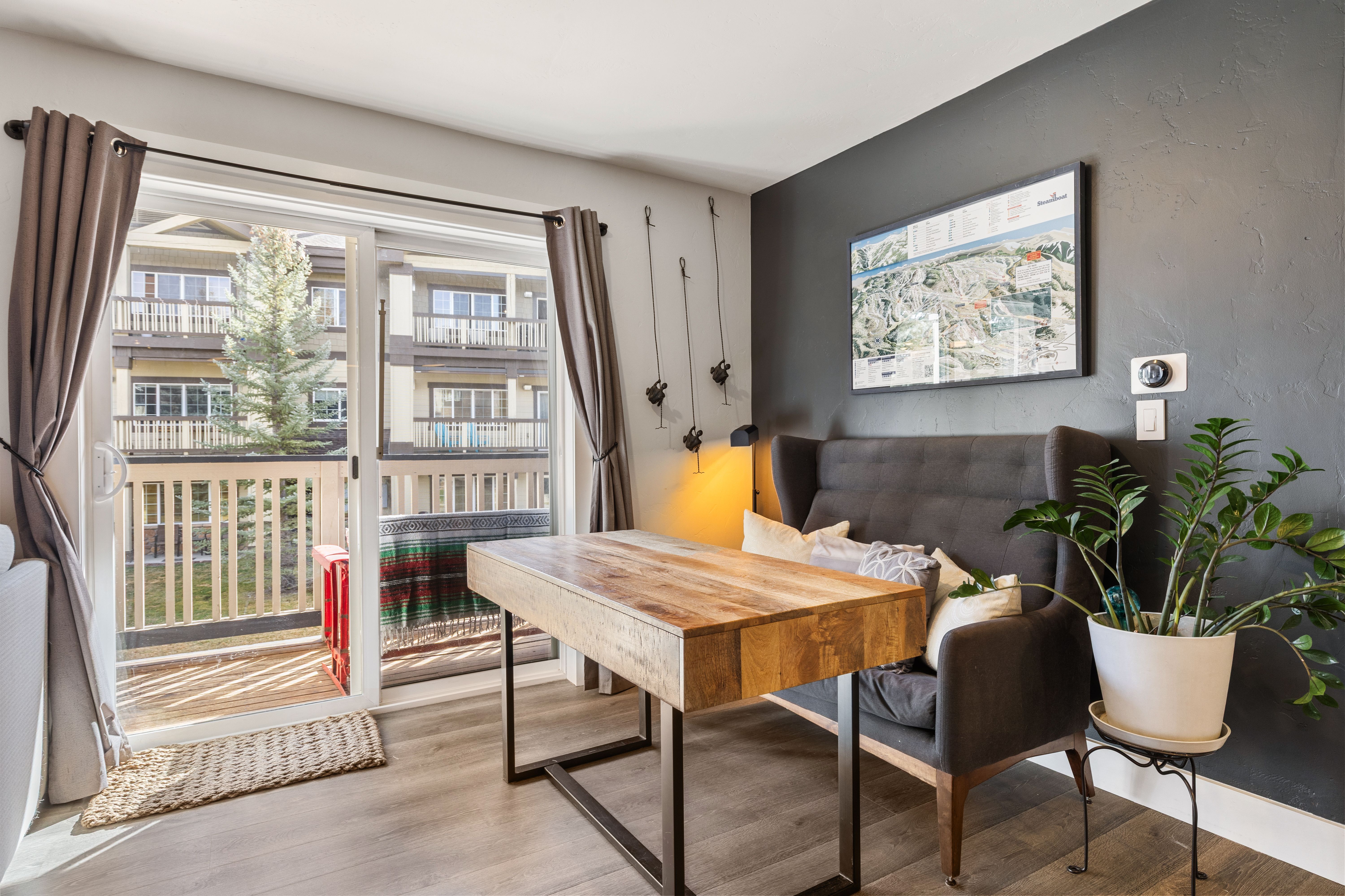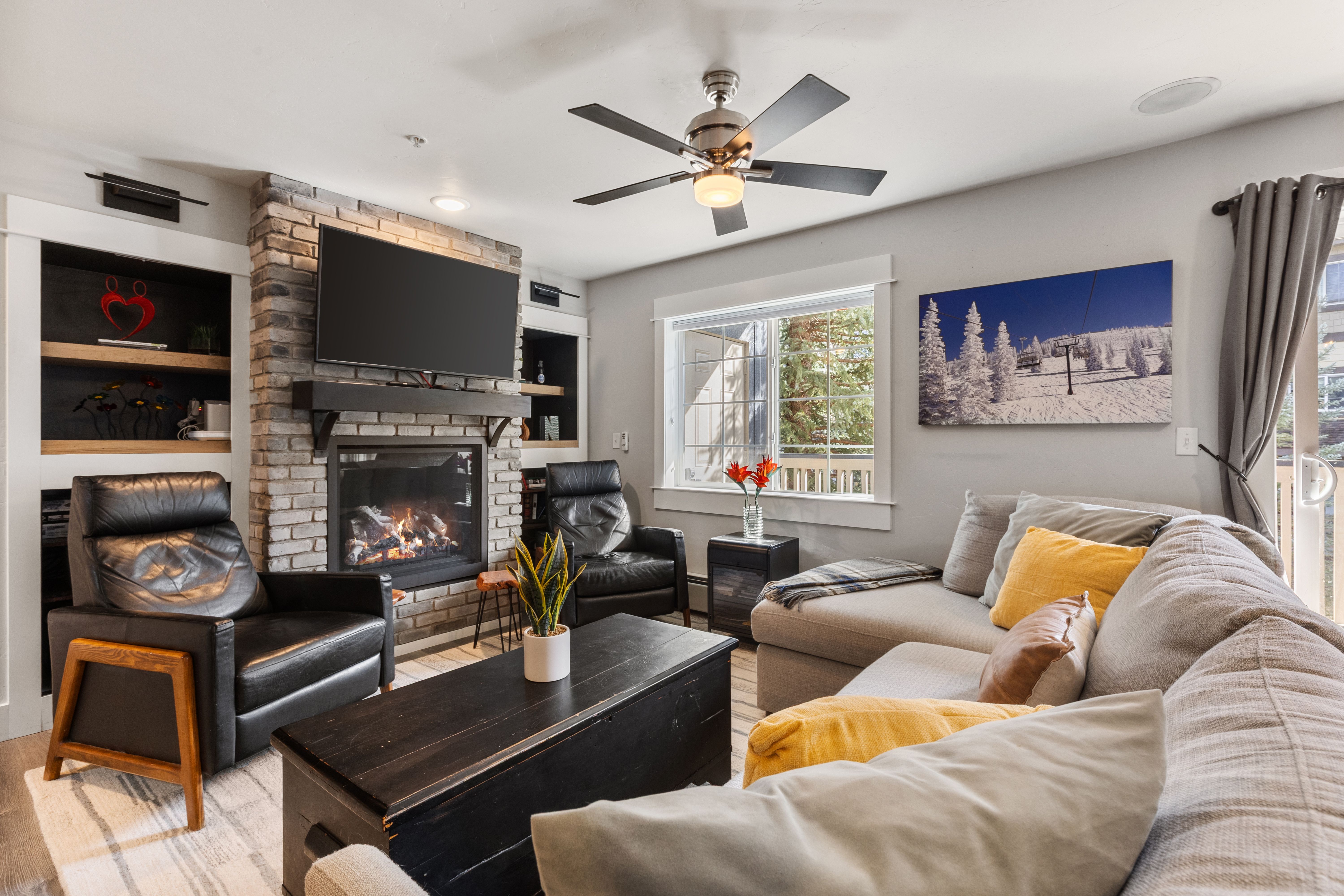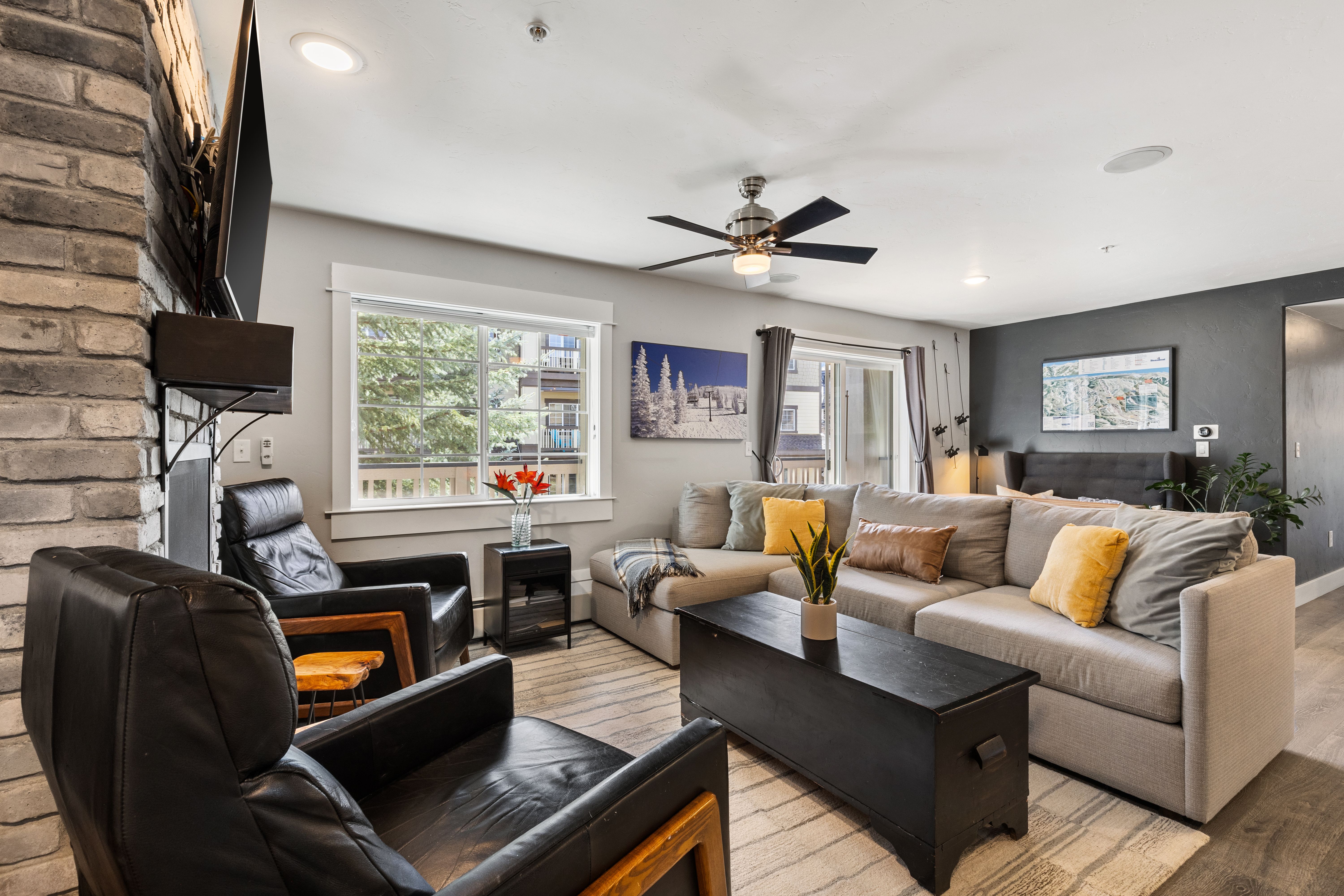 Spacious and light-filled, this 2-bedroom, 2-bath end-unit condo at Sunray Meadows is ideally located close to the ski area. Partially furnished and thoughtfully remodeled, the home features a modern kitchen, durable laminate plank flooring throughout, a new fireplace and mantel, quartz countertops, and newer appliances. Just off the entry, a well-designed mudroom/laundry area includes custom shelving, cubbies, and a sliding barn door. Updated lighting and plumbing fixtures enhance both the kitchen and bathrooms. Two covered decks, shaded by mature trees and overlooking greenspace, offer a peaceful setting to enjoy morning and afternoon sun as well as evening sunsets. The oversized heated one-car garage includes two storage lofts, along with hooks and racks for easy gear storage. Sunray Meadows is a well-maintained community with mature landscaping and walkways, guest overflow parking, and is just steps from Steamboat’s free bus route. And, low HOA dues cover all utilities except electricity (including heat, gas, internet, cable TV, water, sewer, and trash). Enjoy the ease and comfort of effortless mountain living, with convenient access to everything Steamboat has to offer.