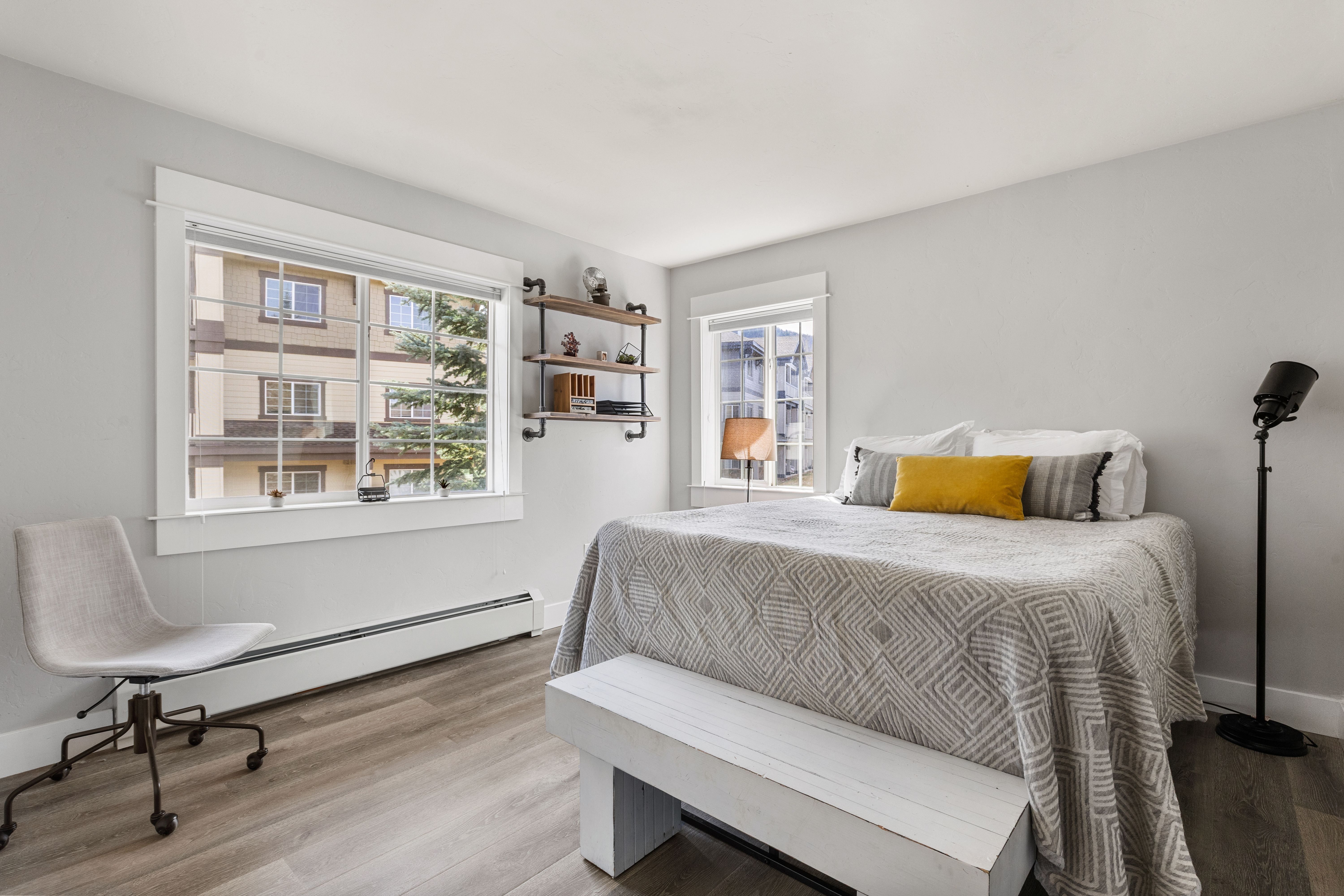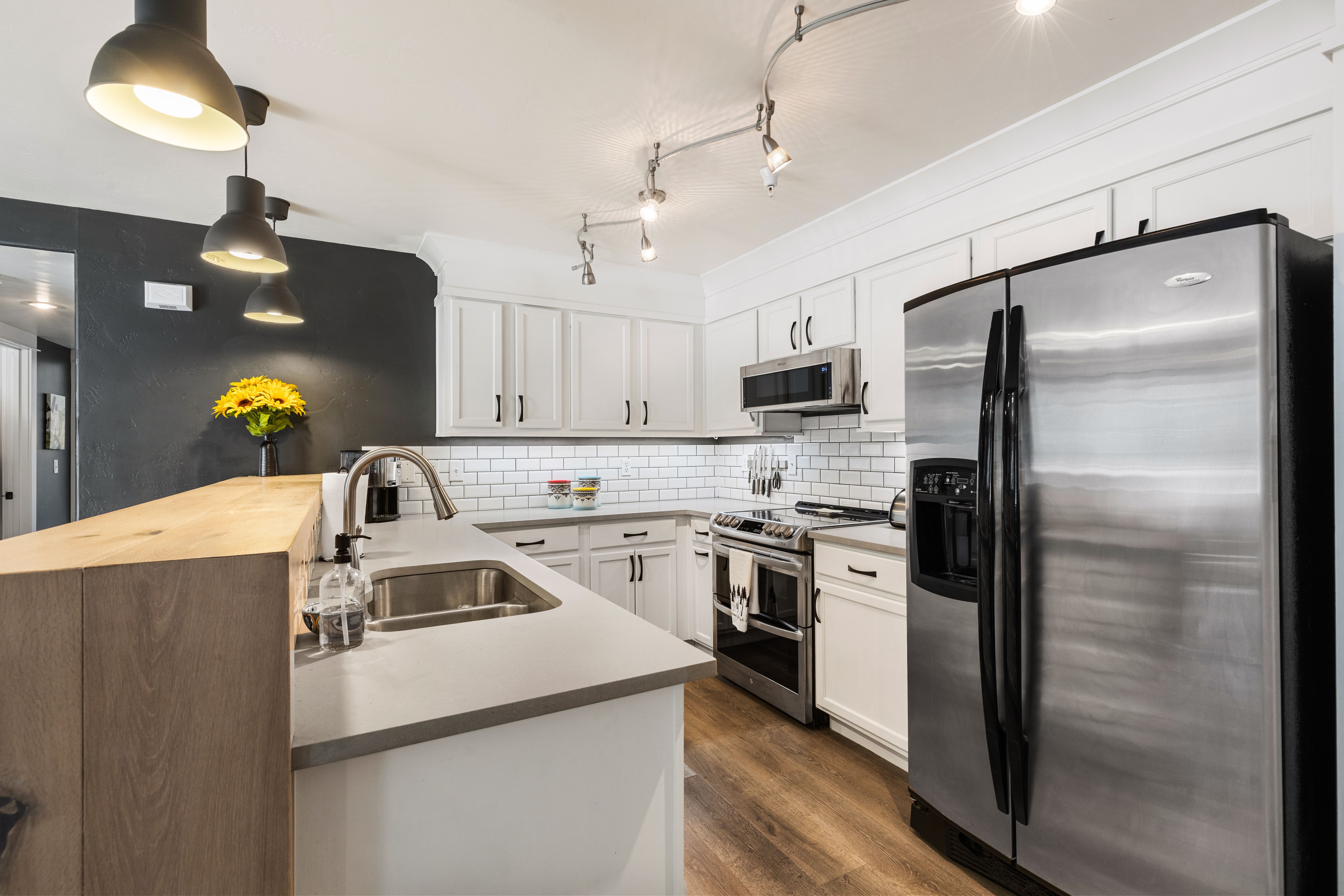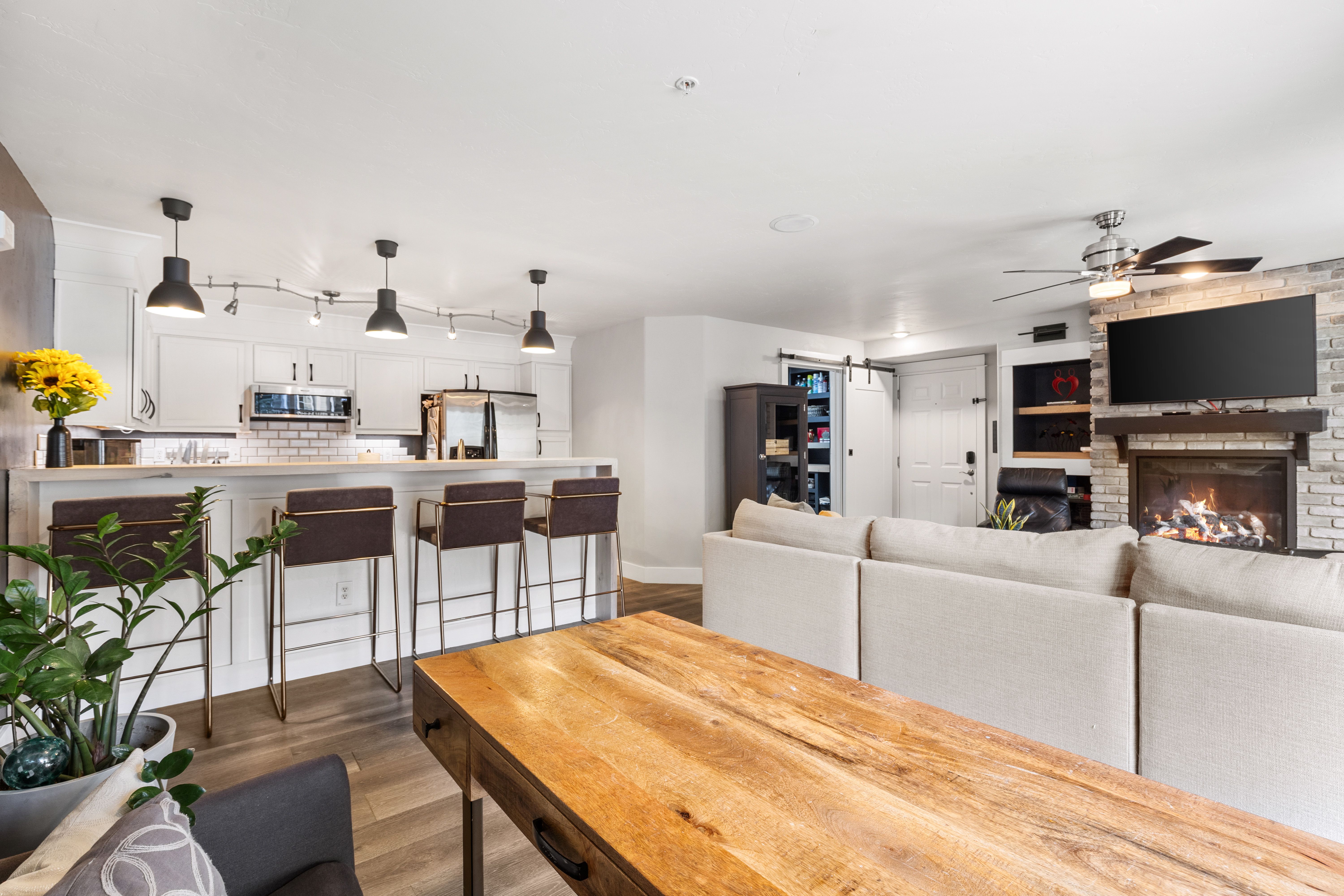 Spacious and light-filled, this 2-bedroom, 2-bath end-unit condo at Sunray Meadows is ideally located close to the ski area. Partially furnished and thoughtfully remodeled, the home features a modern kitchen, durable laminate plank flooring throughout, a new fireplace and mantel, quartz countertops, and newer appliances. Just off the entry, a well-designed mudroom/laundry area includes custom shelving, cubbies, and a sliding barn door. Updated lighting and plumbing fixtures enhance both the kitchen and bathrooms. Two covered decks, shaded by mature trees and overlooking greenspace, offer a peaceful setting to enjoy morning and afternoon sun as well as evening sunsets. The oversized heated one-car garage includes two storage lofts, along with hooks and racks for easy gear storage. Sunray Meadows is a well-maintained community with mature landscaping and walkways, guest overflow parking, and is just steps from Steamboat’s free bus route. And, low HOA dues cover all utilities except electricity (including heat, gas, internet, cable TV, water, sewer, and trash). Enjoy the ease and comfort of effortless mountain living, with convenient access to everything Steamboat has to offer.