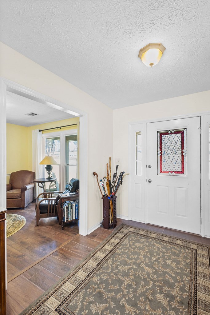 Open House March 22nd 1:00-3:00 EST! Relax on your front porch while overlooking Lakewood Golf Course. This 1793 sq ft very well maintained home sits on .85 beautifully landscaped acres right across from Lakewood Golf Course. Enter through your front door into a large foyer with storage closet. Next you will find a dining room which is currently being used as a sitting room, followed by a bright, open concept family room and kitchen. The family room is situated around a beautiful wood burning fire place and overlooks the stunning backyard. The open kitchen includes stainless steel appliances, granite counters, and bar area. Storage isn't an issue with the large walk in pantry with shelving and a stand up freezer. Down the hall you will find 3 bedrooms and 2 full bathrooms. The large backyard includes a composite deck, beautiful landscaping, and a separate gardening area with a storage shed. Enjoy low maintenance with a composite deck, 10 year old roof, 5 year HVAC, 1 year water heater and energy efficient Anderson windows and doors. With beautiful surroundings, excellent schools, and a prime location across from the golf course, this home offers comfort, convenience, and a lifestyle you'll love.