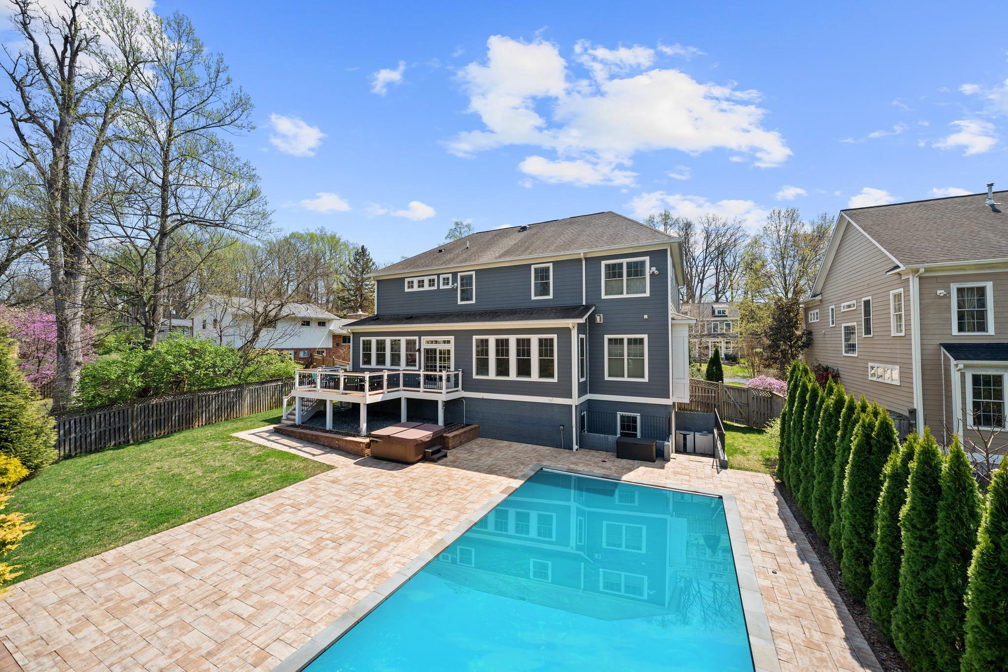 Experience elevated living in this stately Arts & Crafts Colonial, built in 2018 by award-winning Mid-Atlantic Custom Builders. Thoughtfully designed and fully upgraded across all three finished levels, this 6-bedroom, 6-bath home offers sophisticated charm and unmatched functionality in the sought-after Whitman High School Cluster.The main level welcomes you with attention to detail and custom finishes throughout. A sunlit sitting room and formal dining room give way to an open family room with custom built-ins and gas fireplace. The family room transitions to a gourmet chef’s kitchen with high-end appliances and a butler’s and out to a large rear deck—perfect for gatherings. This level also features a bedroom with a full bath, ideal as a guest suite or a private home office. A mudroom off the two-car garage adds convenience and organization.Upstairs, the second level boasts a luxurious owner’s suite with dual walk-in closets and a spa-like bath. Each of the additional bedrooms features its own en-suite bathroom, along with a dedicated study/homework area and a spacious laundry room designed for busy households.The finished lower level is an entertainer’s dream, complete with a bedroom and full bath, an additional den, a spacious recreation/media room with a wet bar, and a fully equipped home gym.Step outside to your private backyard oasis, where manicured landscaping surrounds a beautiful in-ground pool and hot tub, offering the perfect retreat for relaxing or entertaining all year round.This exquisite home delivers elegance, comfort, and convenience at every turn.