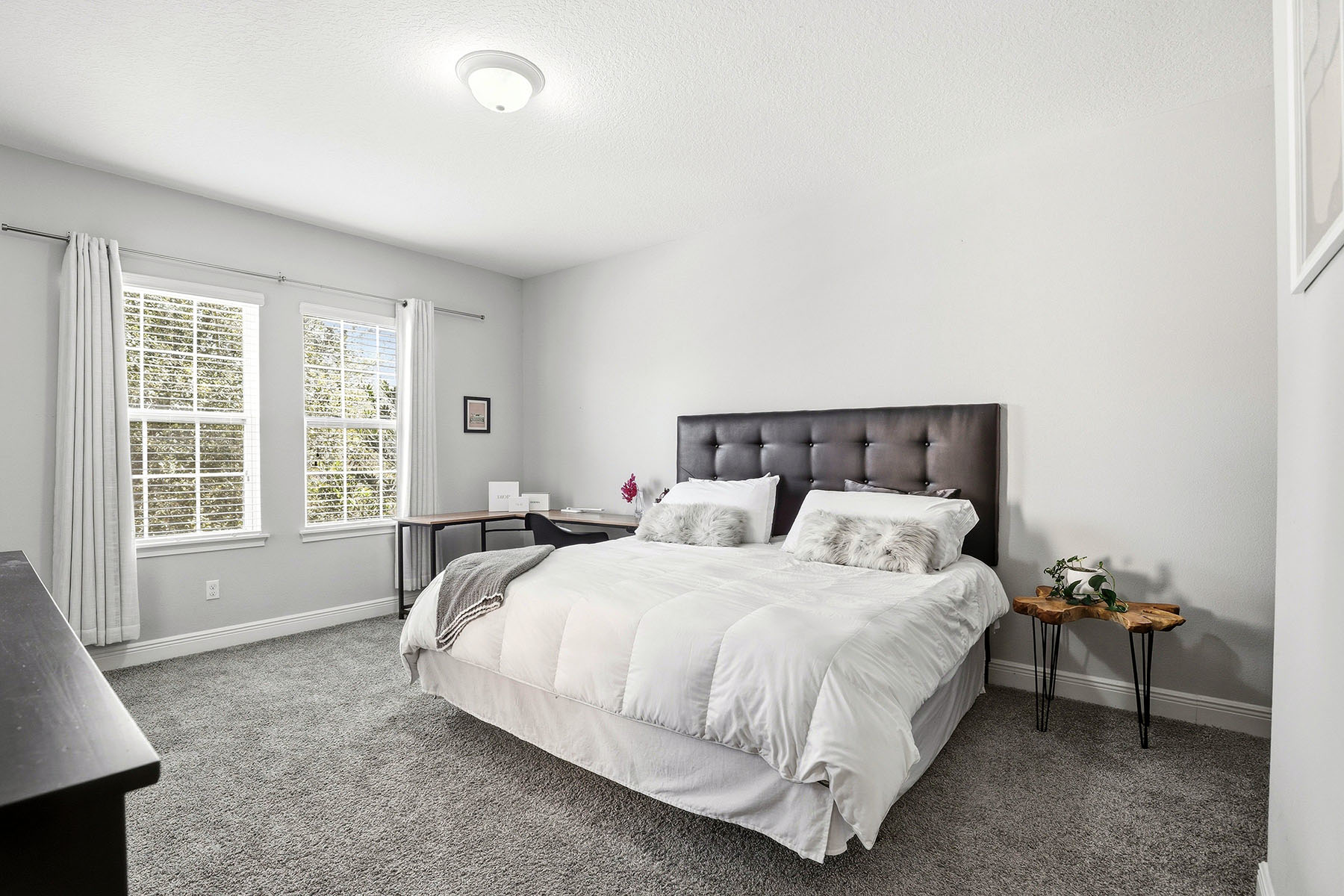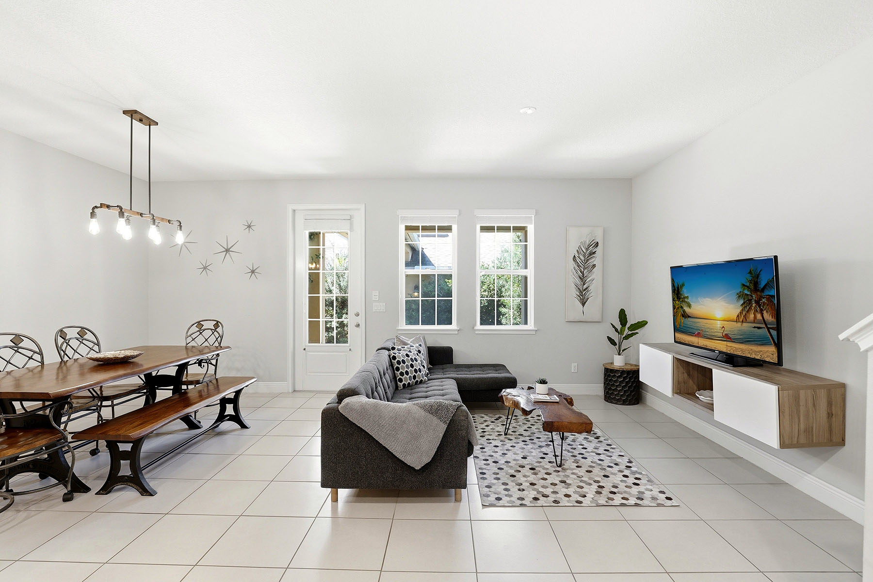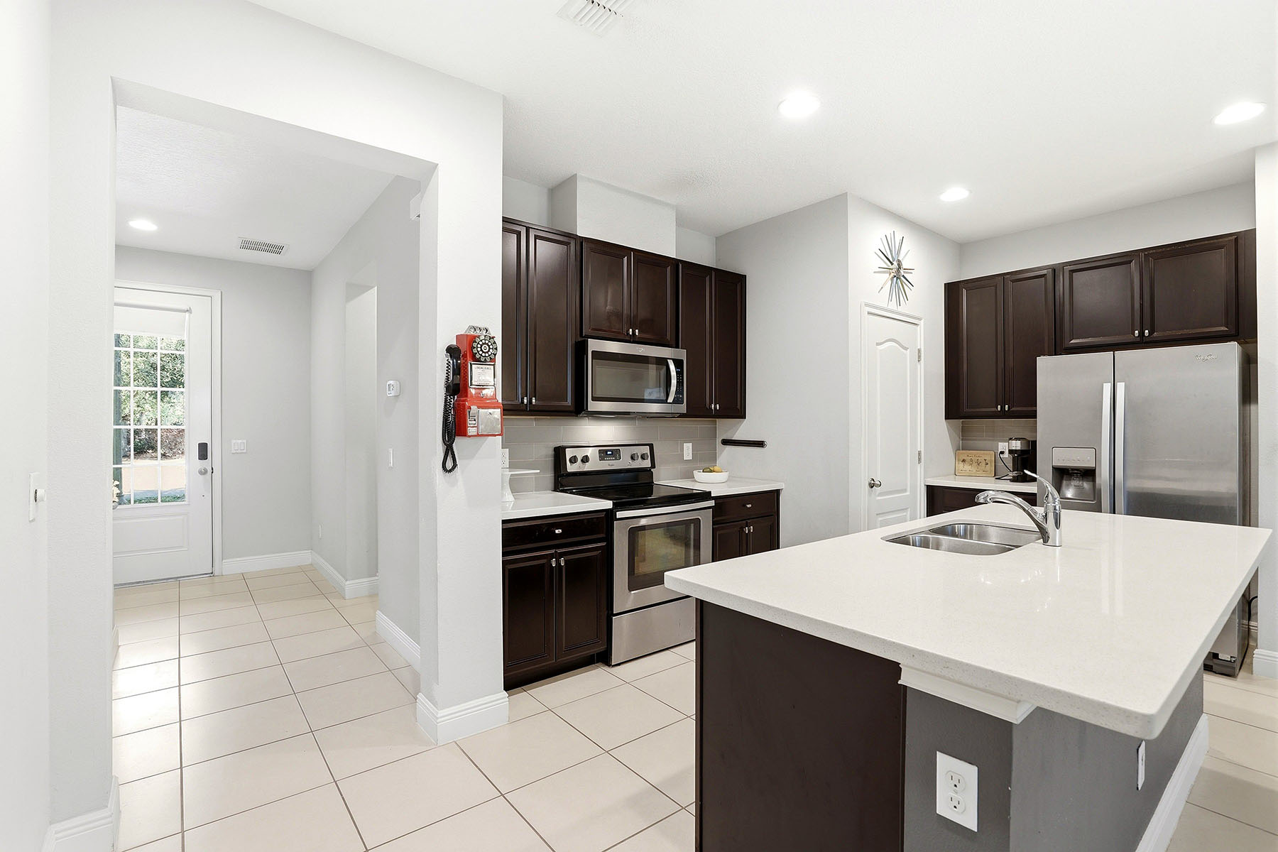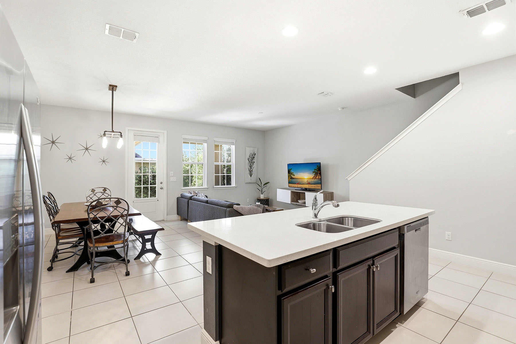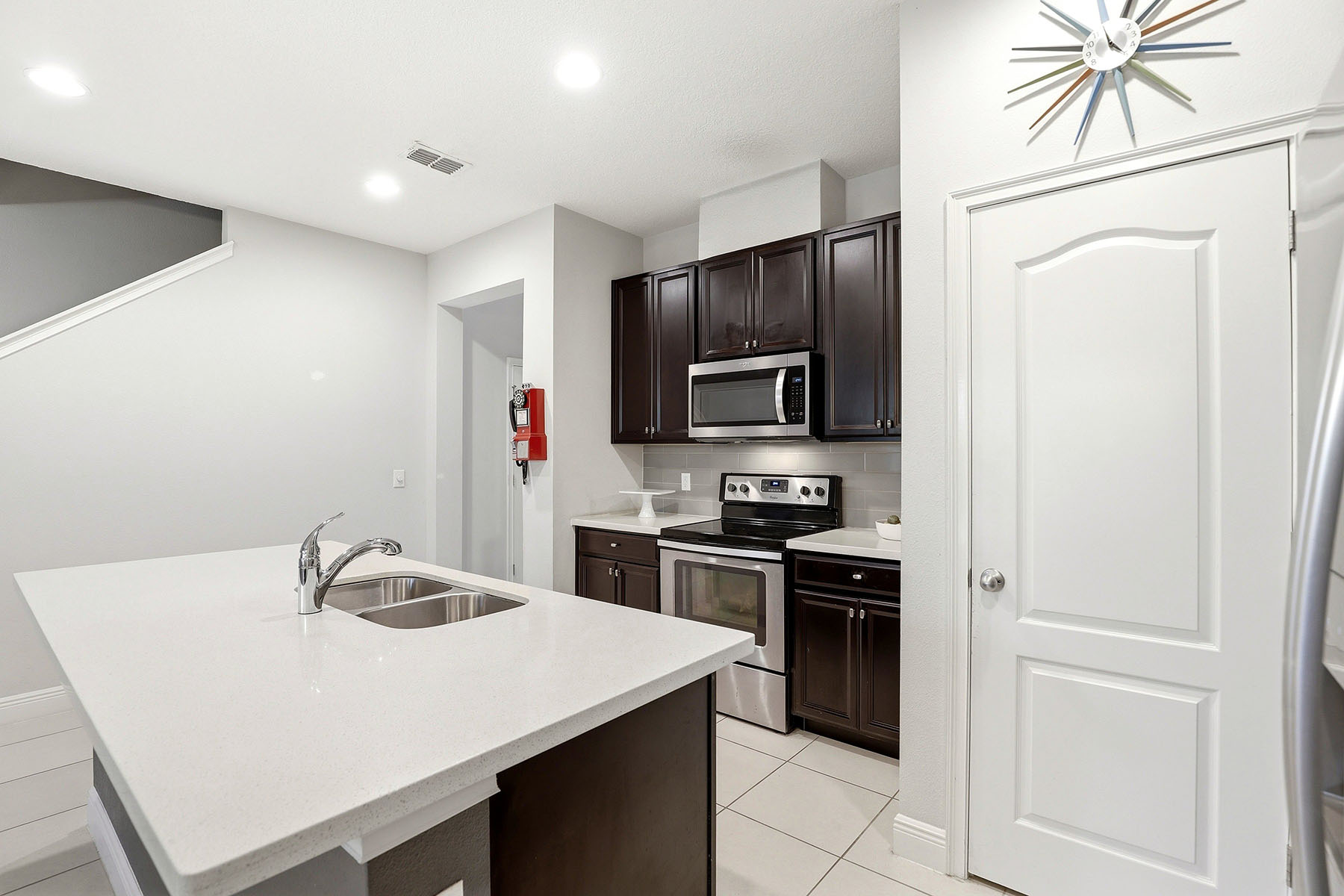Live in the heart of Hamlin Reserve, this stylish executive townhome sits directly across from the community pool and playground, just a five-minute drive or short distance to Hamlin Town Center for convenient shopping, dining and everyday essentials in Horizon West. Spanning over 2,000 square feet, this four-bedroom, three-bath home with two-car garage and private patio is thoughtfully designed for comfortable, modern living. The main level features an open-concept layout with a guest bedroom and full bath, along with a well-appointed kitchen complete with a large granite island, stainless steel appliances and a spacious pantry, ideal for everyday living and entertaining. A private, partially covered courtyard offers a comfortable outdoor space and leads to an oversized rear-entry two-car garage. The second level features a split floor plan with three bedrooms, two full baths and a laundry room. Relax and unwind in the serene primary suite, complete with a private balcony offering picturesque views of the pool and playground, an ideal vantage point for nightly views of Walt Disney World fireworks. The primary suite also includes an en-suite bath with dual vanities, a glass-enclosed shower and a generously sized walk-in closet. Residents enjoy a maintenance-free lifestyle with HOA-covered exterior care, landscaping, roofing and access to resort-style amenities including a pool, clubhouse, playground, dog park and scenic green spaces, all just near your front door. Positioned near Hamlin Town Center, you'll experience a vibrant, accessible community with boutique shopping, dining and entertainment, including Cinépolis Luxury Cinemas. With proximity to Orlando Health Horizon West Hospital, Orange County National Golf Center and Horizon West Regional Park, plus easy access to major highways, this home offers a balance of luxury, convenience and lifestyle in one of Central Florida's sought-after communities. A 2016 roof (HOA maintains), 2016 air conditioner and 2026 water heater.