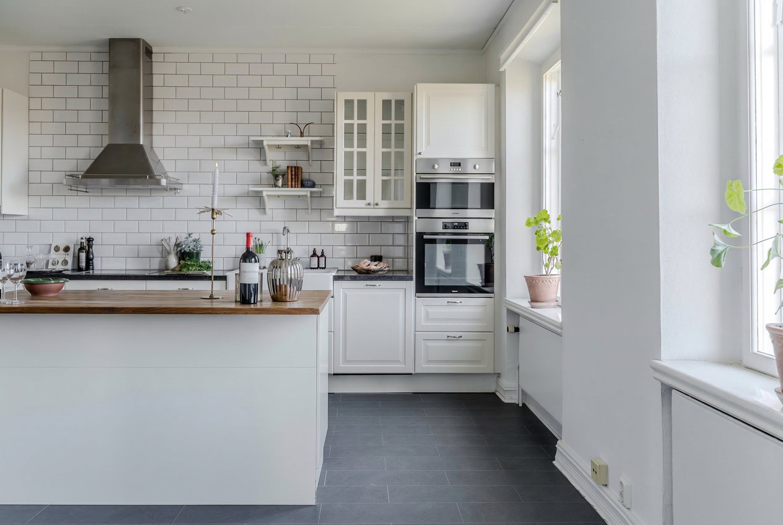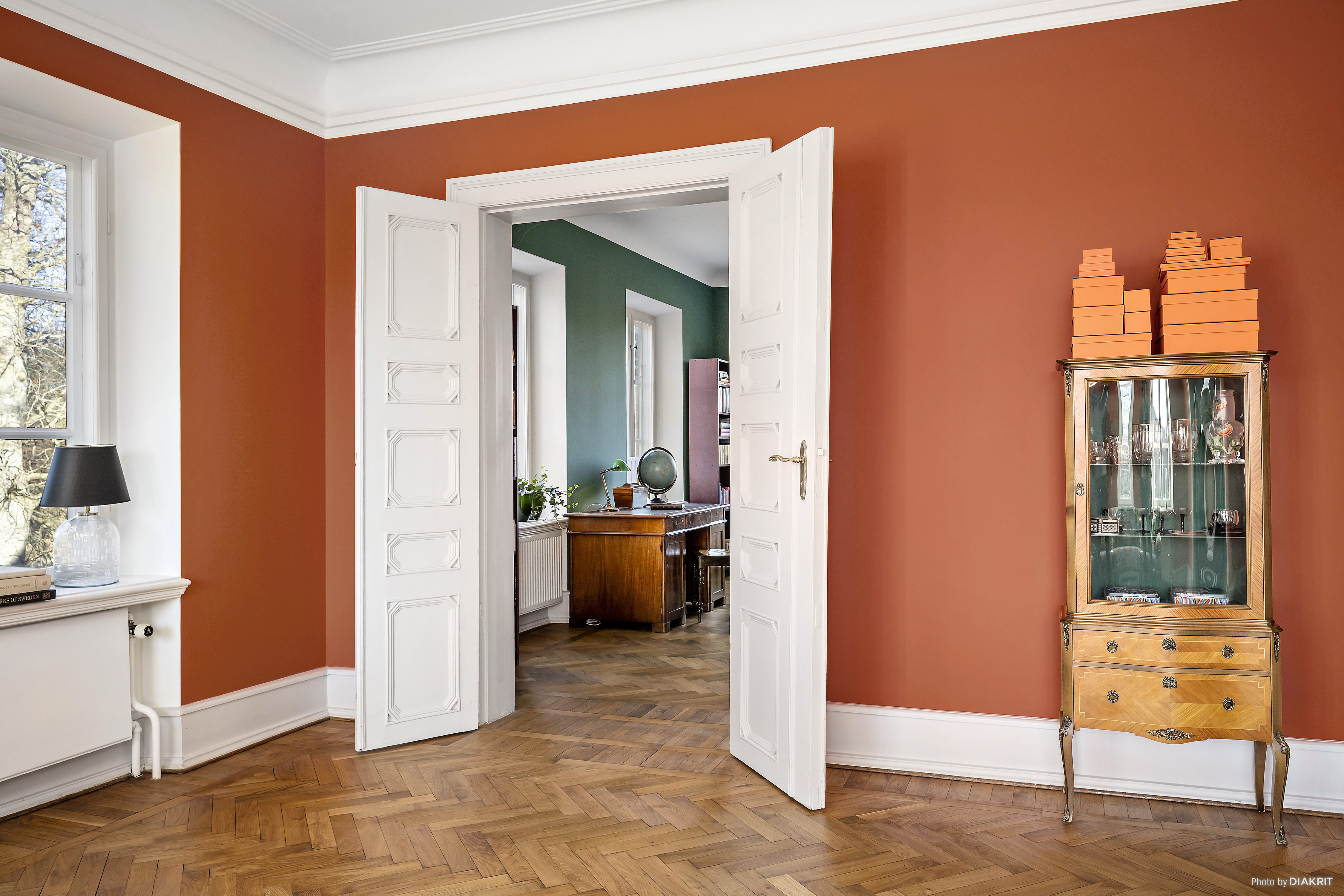 Meticulously and skillfully renovated throughout in an Art Nouveau and turn-of-the-century style, with restored original windows, oiled oak herringbone parquet flooring, marble and limestone floors, and countless masterfully crafted double doors arranged in enfilade. Period-appropriate materials and traditional renovation methods have been used throughout, giving the house a harmonious and timeless character.