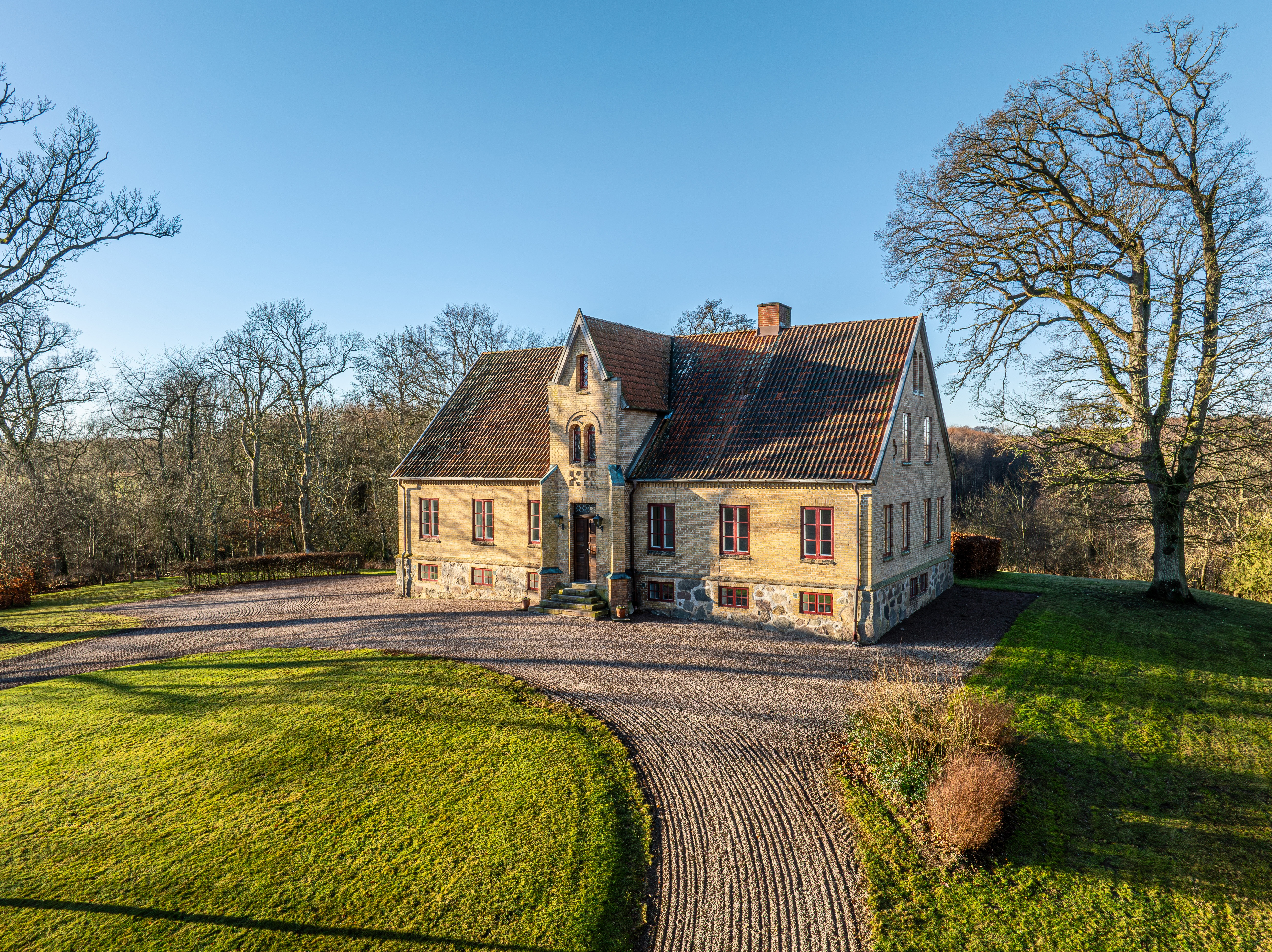 The manor was built between 1860 and 1870 and has historically belonged to the prestigious Näsbyholm Estate. The residence offers generous social spaces as well as six to seven bedrooms, all with walk-in closets.