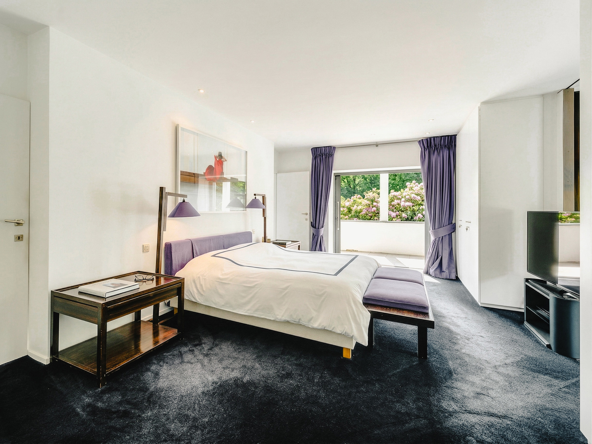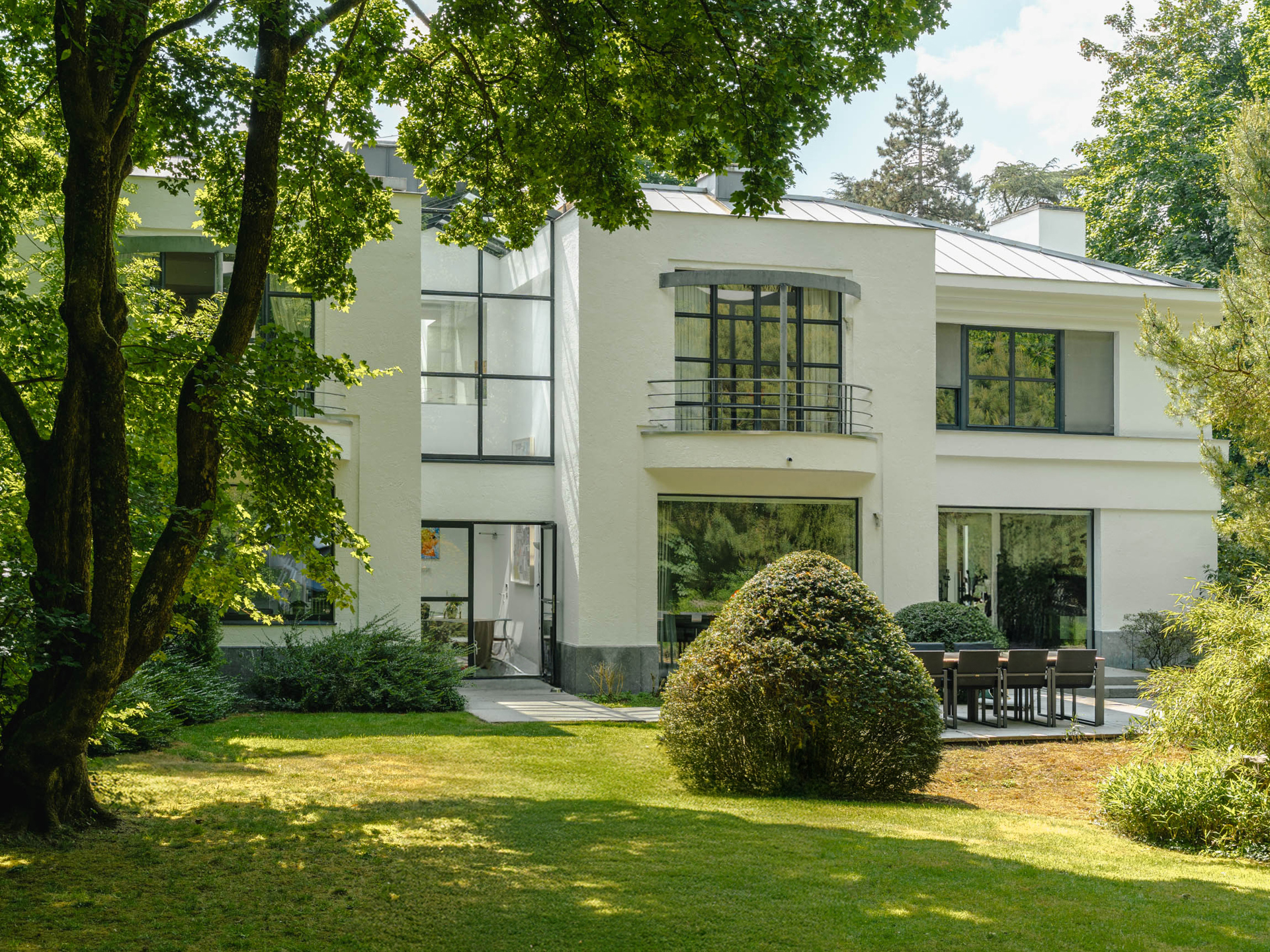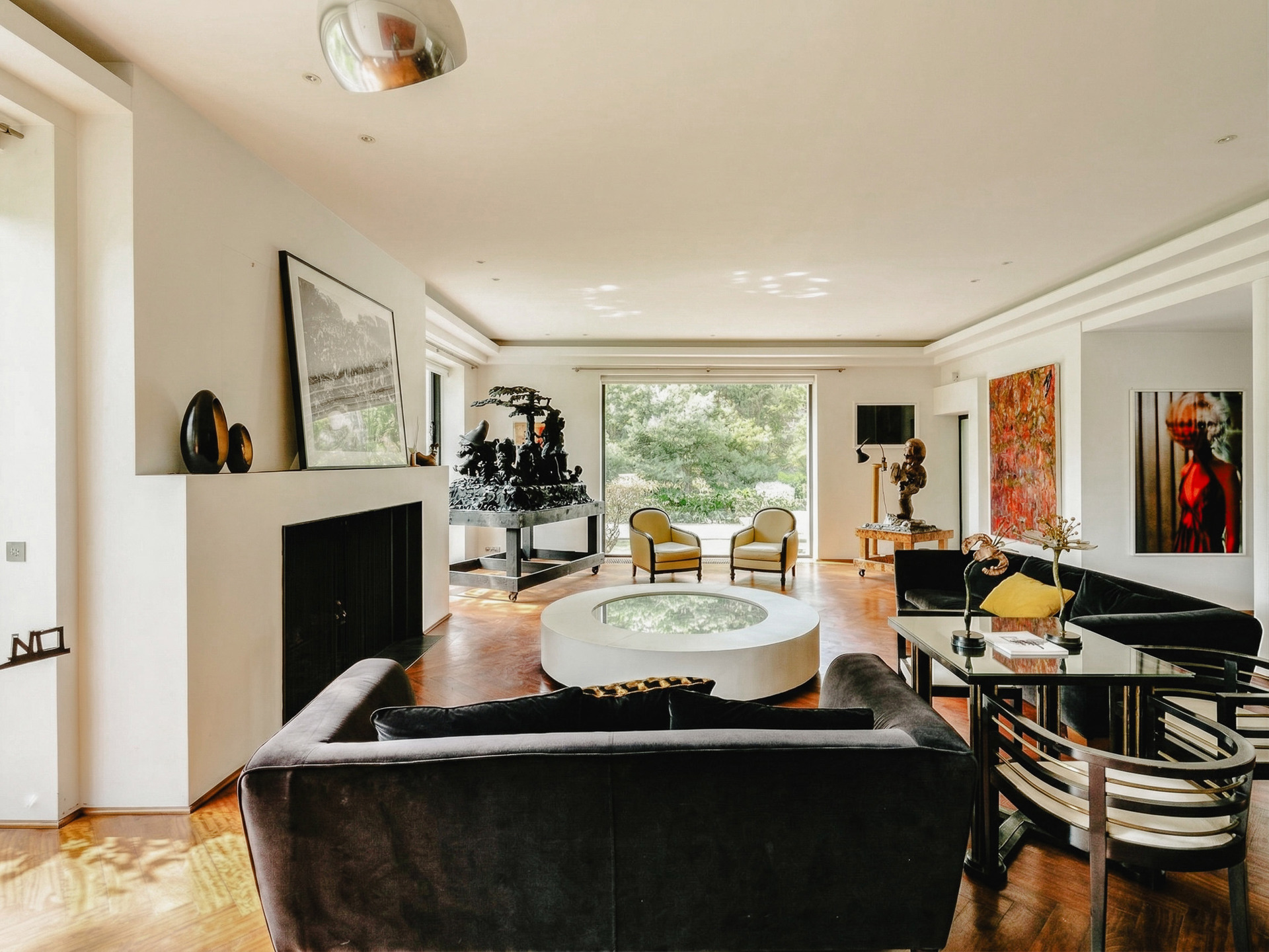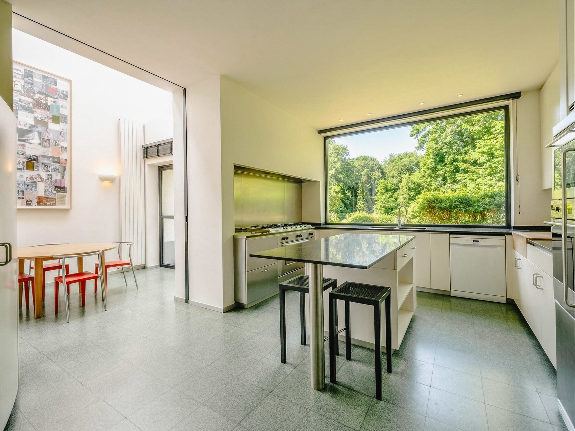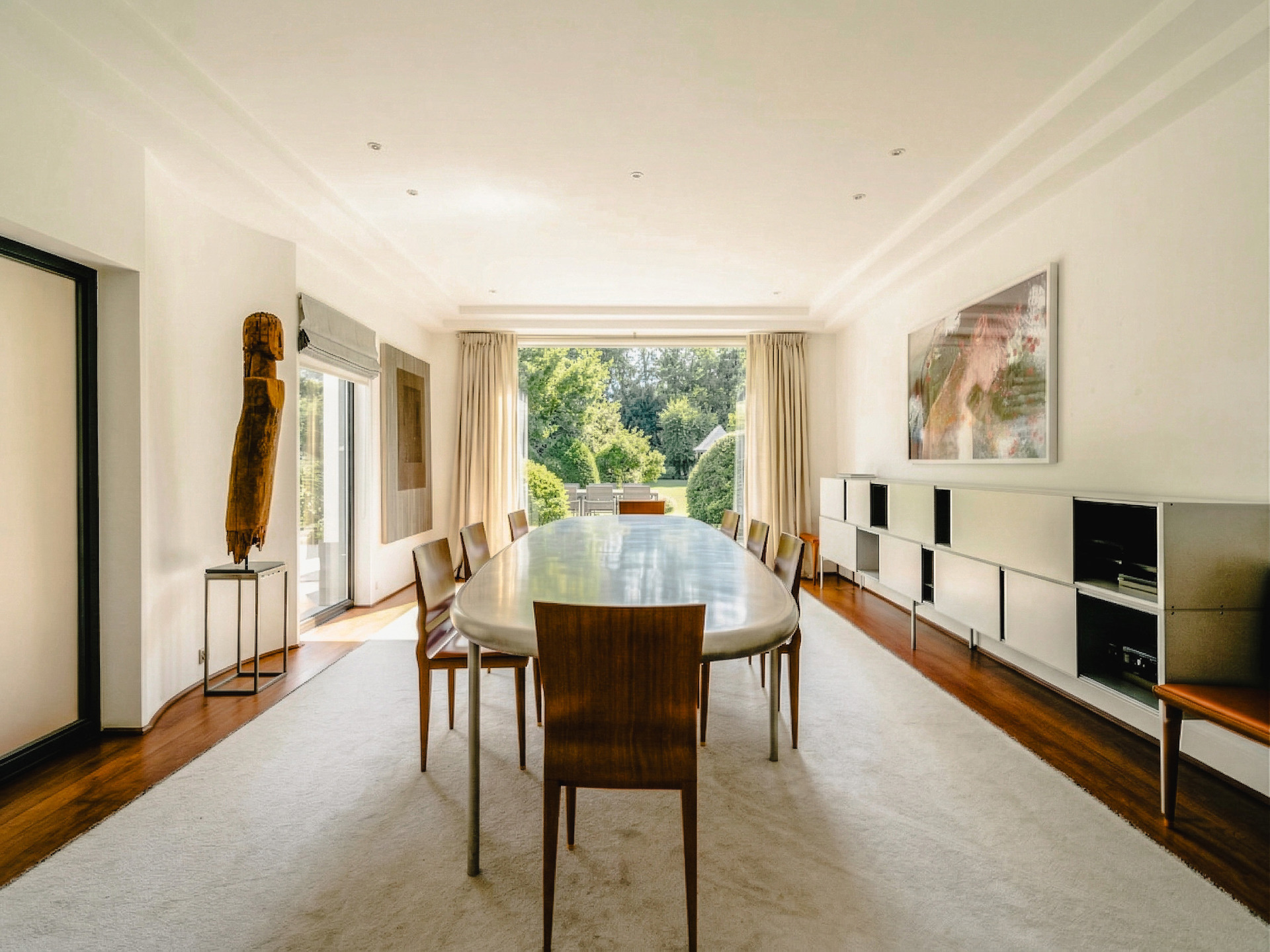 Located right next to the Royal Léopold Club and the Van Buuren Museum, this contemporary villa designed by architect Marc Corbiau spans an area of around 780 m² (according to PEB) on a magnificent 40-are landscaped plot with trees, ideally positioned. Combining clean lines and large bay windows, the villa comprises a vast, light-filled entrance hall on the ground floor with a cloakroom and guest toilet leading to spacious reception rooms with open fire, a dining room and a fully-equipped kitchen with pantry, all opening onto the terrace and the unoverlooked garden enjoying a swimming pool. On the first floor, a mezzanine sleeping area leads to a master bedroom with dressing room and en suite bathroom, and to four further bedrooms with en suite bathrooms. The lower level houses a family room with direct access to the garden. Other features: laundry room, video intercom system, water softener, audio system, alarm, 2-car garage, outdoor parking spaces. The Royal Léopold Club district is ideally located close to public transport and schools. It's a green, quiet neighbourhood just a stone's throw from the shops, with easy access to the surrounding communities. For further information, please contact Bertrand de Moffarts on +32 (0) 475 944 508.