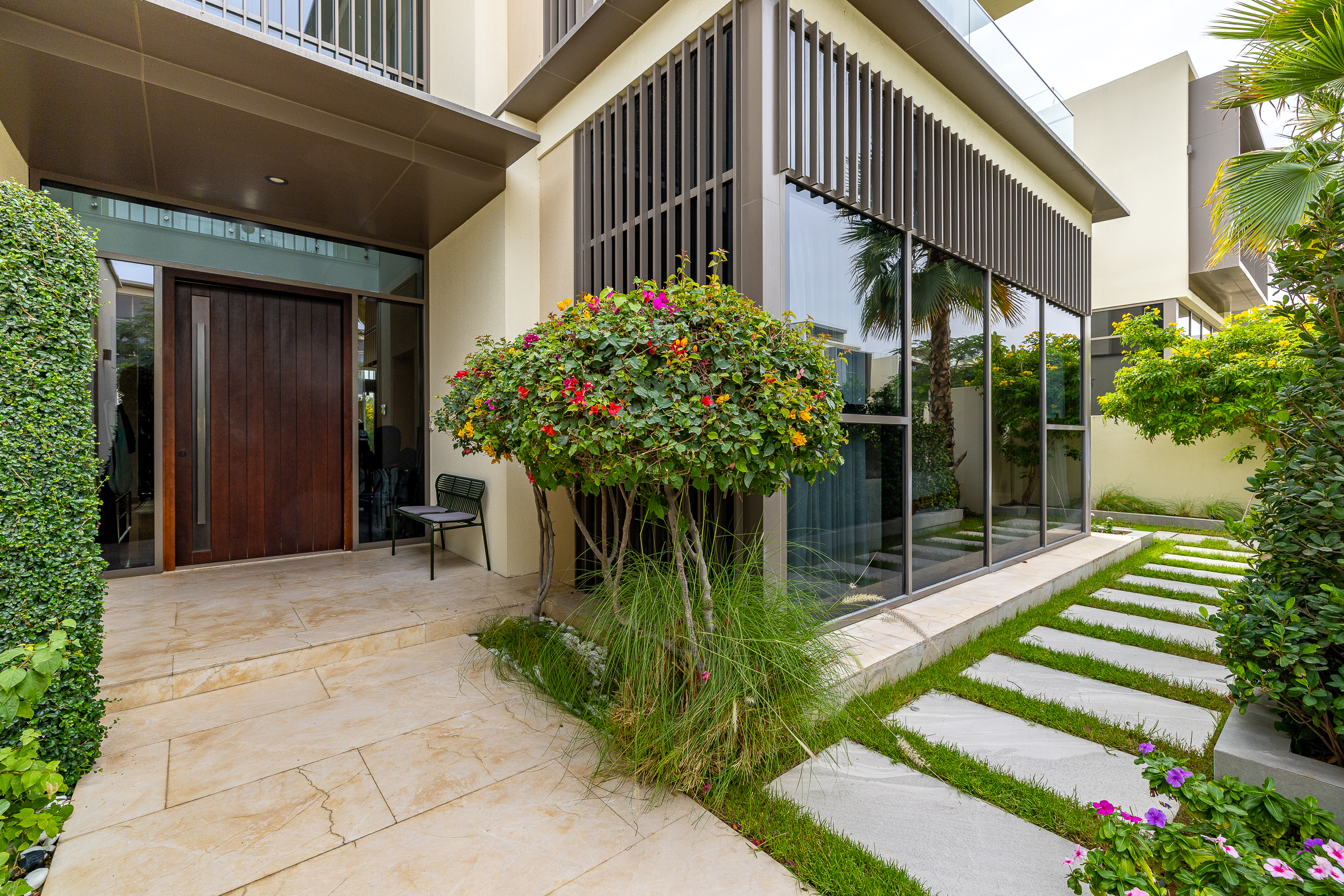 Set within the sought-after Golf Place enclave in Dubai Hills Estate, this beautiful four-bedroom villa spans 7,469.94 sq.ft, enhanced by a thoughtful extension. Its prime position along the Green Belt lends a rare sense of openness, while interiors are finished in elegant marble, warm timber accents, and a palette of soft, refined tones.
