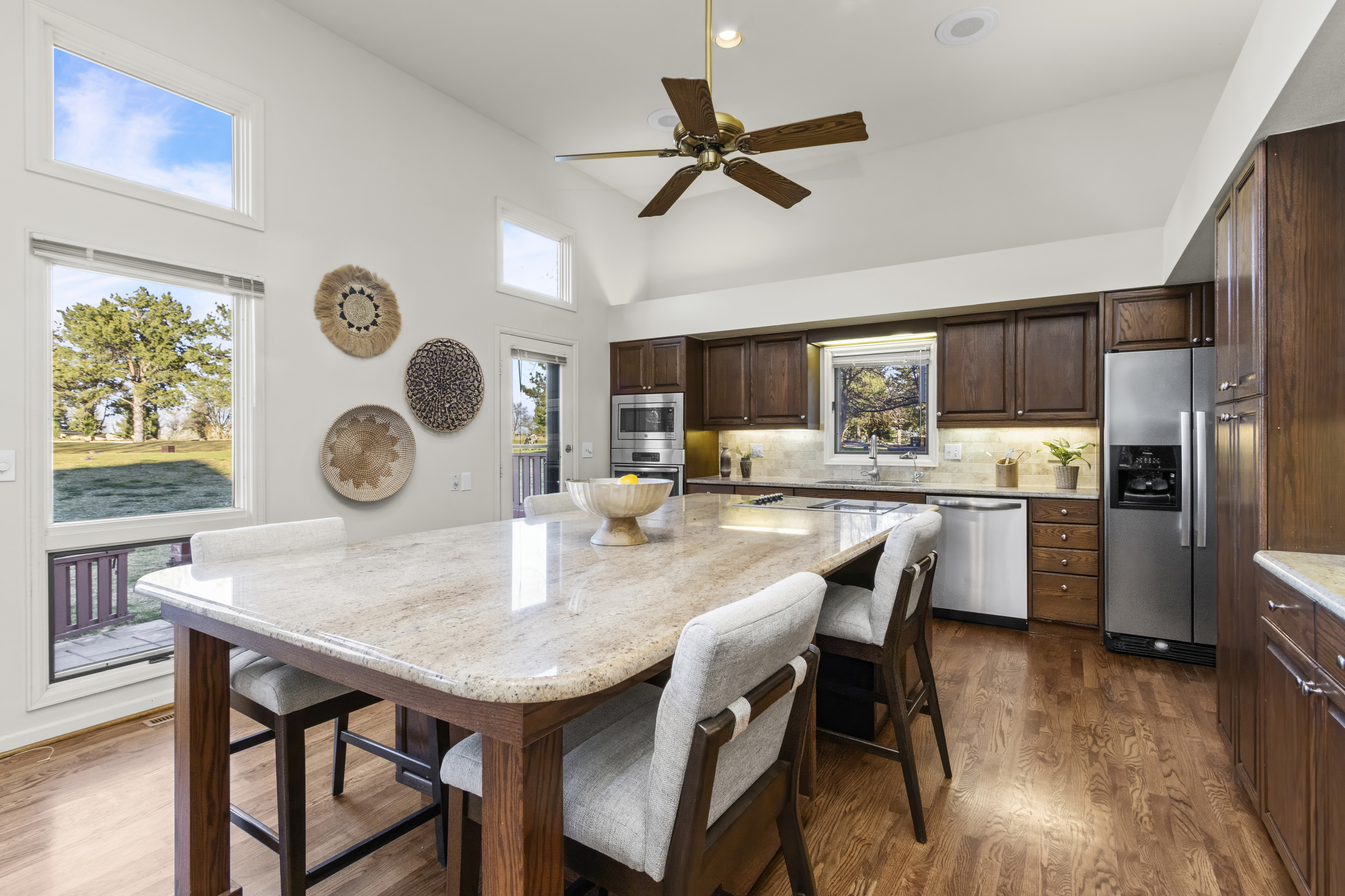 Tucked along the 9th fairway of Fort Collins Country Club, this Cottonwood Point home offers everyday living in a truly beautiful setting. Mornings begin with soft light over the water and foothills. Evenings settle into peaceful fairway views just beyond your patio. Inside, soaring ceilings and expansive windows fill the space with natural light. The kitchen features generous granite surfaces and a central island perfect for gathering. A private patio just off the kitchen makes outdoor living effortless. Upstairs, the primary suite offers a calm retreat with a five-piece bath, dual closets, and views stretching toward the lake and mountains. Each additional bedroom includes its own ensuite for privacy and flexibility. Life here extends beyond the home. With maintenance handled, your time is your own. And when you're ready to explore, Old Town Fort Collins is just ten minutes away - boutique shops, local restaurants, and the energy of one of Colorado's most walkable downtowns, all within easy reach. As a resident of Cottonwood Point Drive, you skip the long waitlist and can join the Long Pond Association right away for just $450/year. That means private beach access, paddleboarding, kayaking, swimming, fishing, sailing, and ice skating throughout the seasons. A finished basement adds space for recreation or relaxation. The two-car garage includes room for a golf cart. Mature landscaping and blooming rose bushes complete the setting. Ease, beauty, and the all-year vacation lifestyle. All within one of Fort Collins' most desirable communities. Showings start Friday, 3/27.