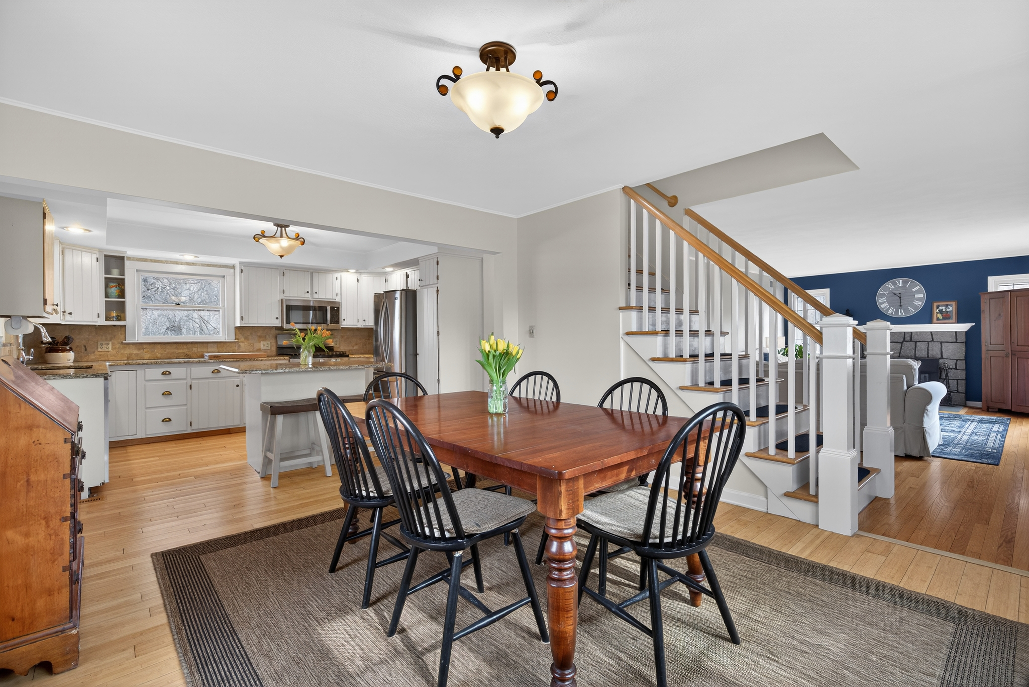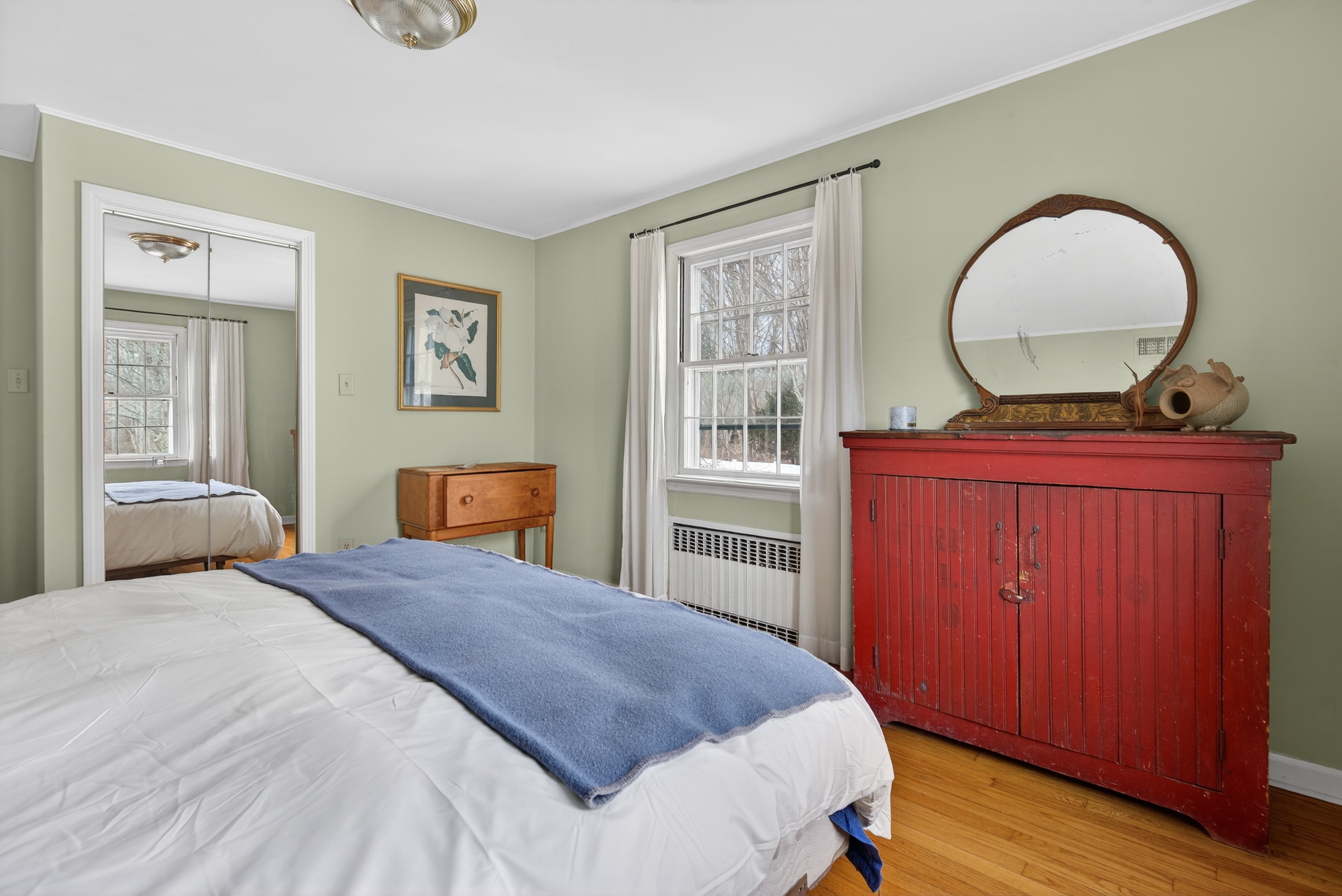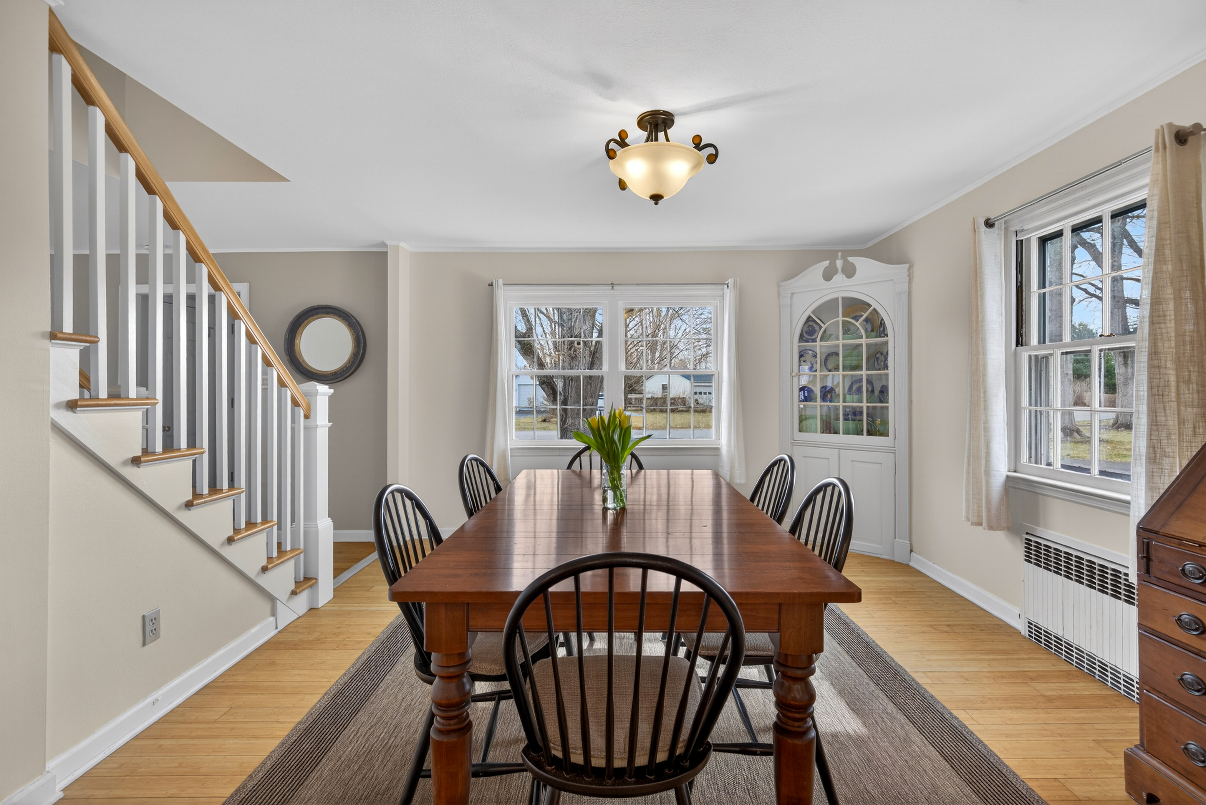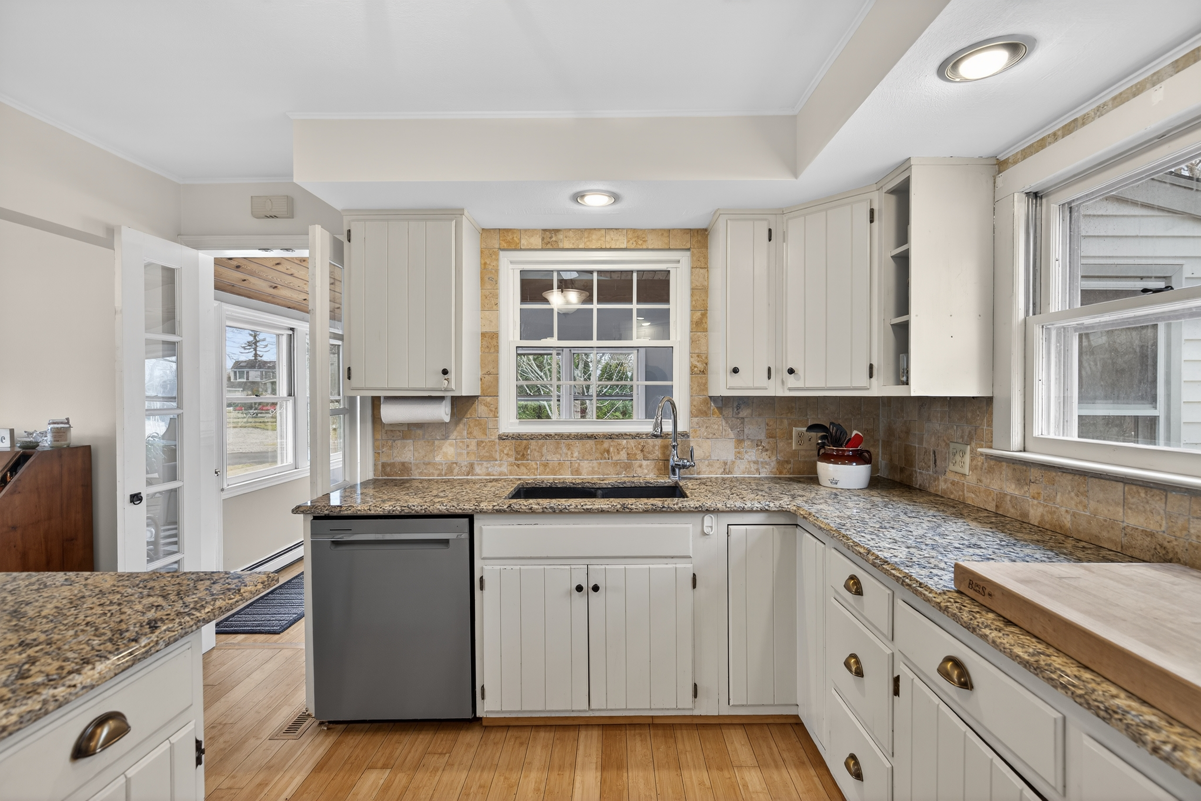 Discover the perfect blend of warmth, character, and lifestyle in this inviting four-bedroom Cape, ideally situated on a quiet street just minutes from Madison's Town Center and pristine beaches. The sun-drenched living room features an oversized front window and cozy wood-burning fireplace. Flow seamlessly into the dining room, sized beautifully for gatherings of any size. The updated kitchen boasts granite countertops, tumbled marble backsplash, and a functional center island, all open to the dining area. Step into the bright sunroom-your new favorite retreat-overlooking the deck, pool, and lush backyard. The convenient first-floor primary bedroom and full bath complete the main level, offering single-floor living potential. Upstairs, three additional bedrooms with gleaming hardwood floors and generous closets share a full bathroom. The finished lower level recreation room expands your living space, while the large utility area offers workshop, gym, or storage possibilities. The private, expansive rear yard features an in-ground pool, garden beds, and plenty of open space. The detached two-car garage provides ample parking and storage. Owned solar panels keep utility costs remarkably low-averaging under $20/month in summer. Minutes to beaches, town center, and I-95. This Cape offers comfort, character, and convenience in one of Madison's most desirable settings.