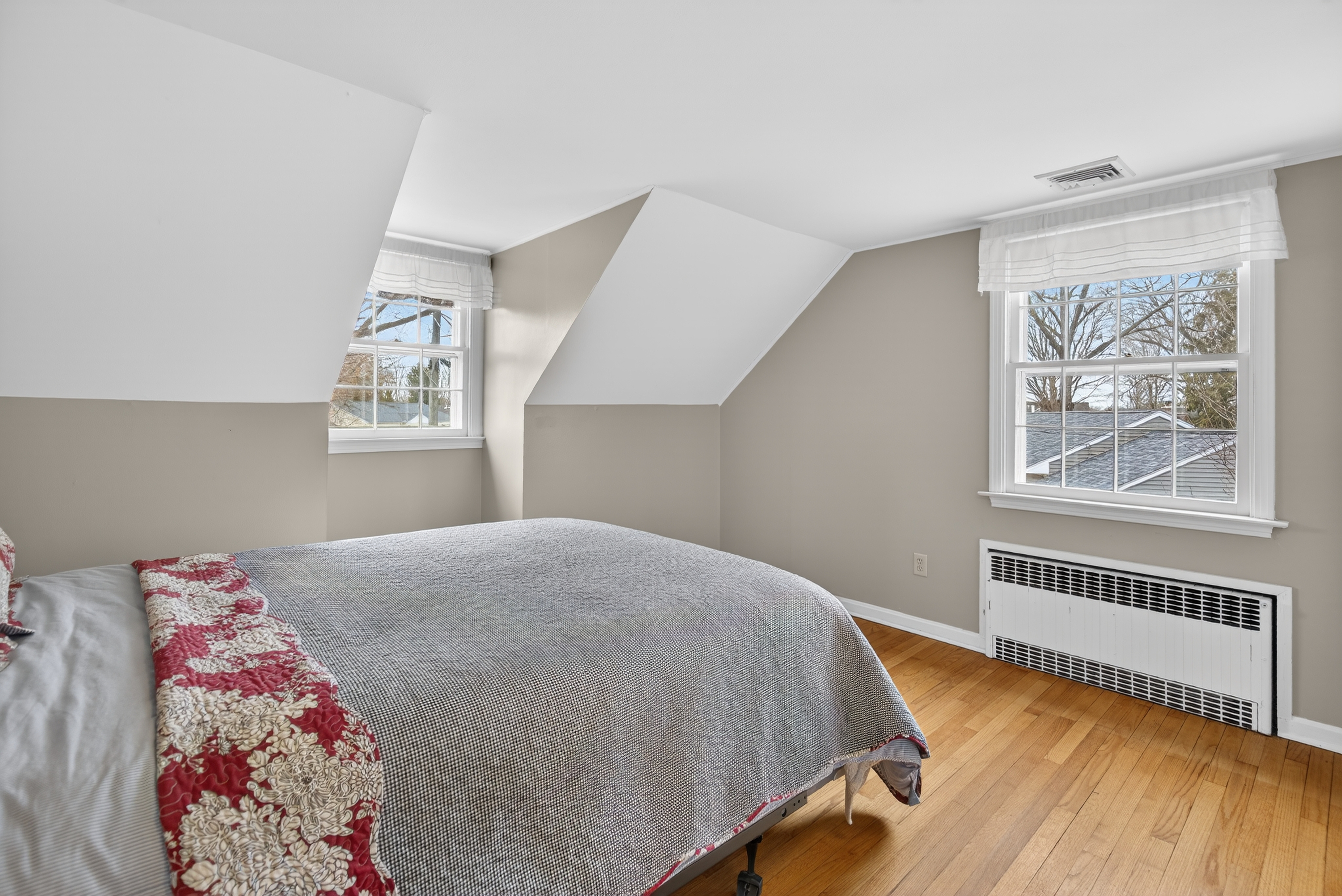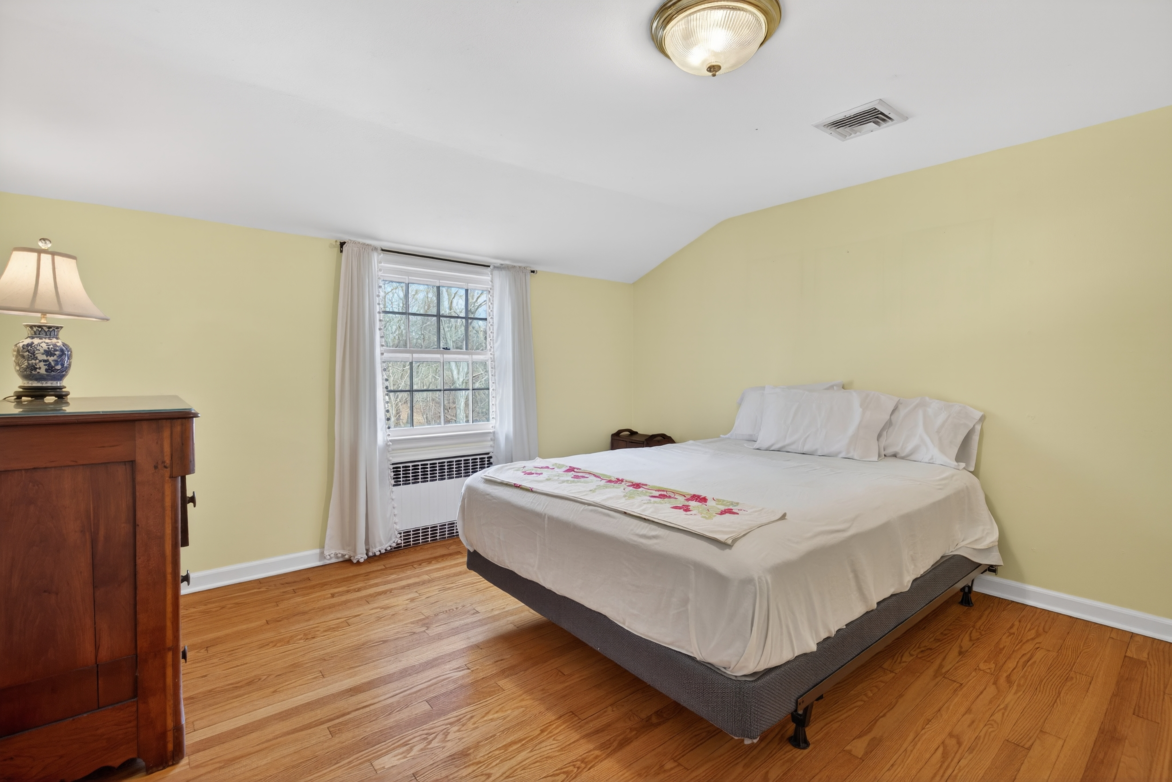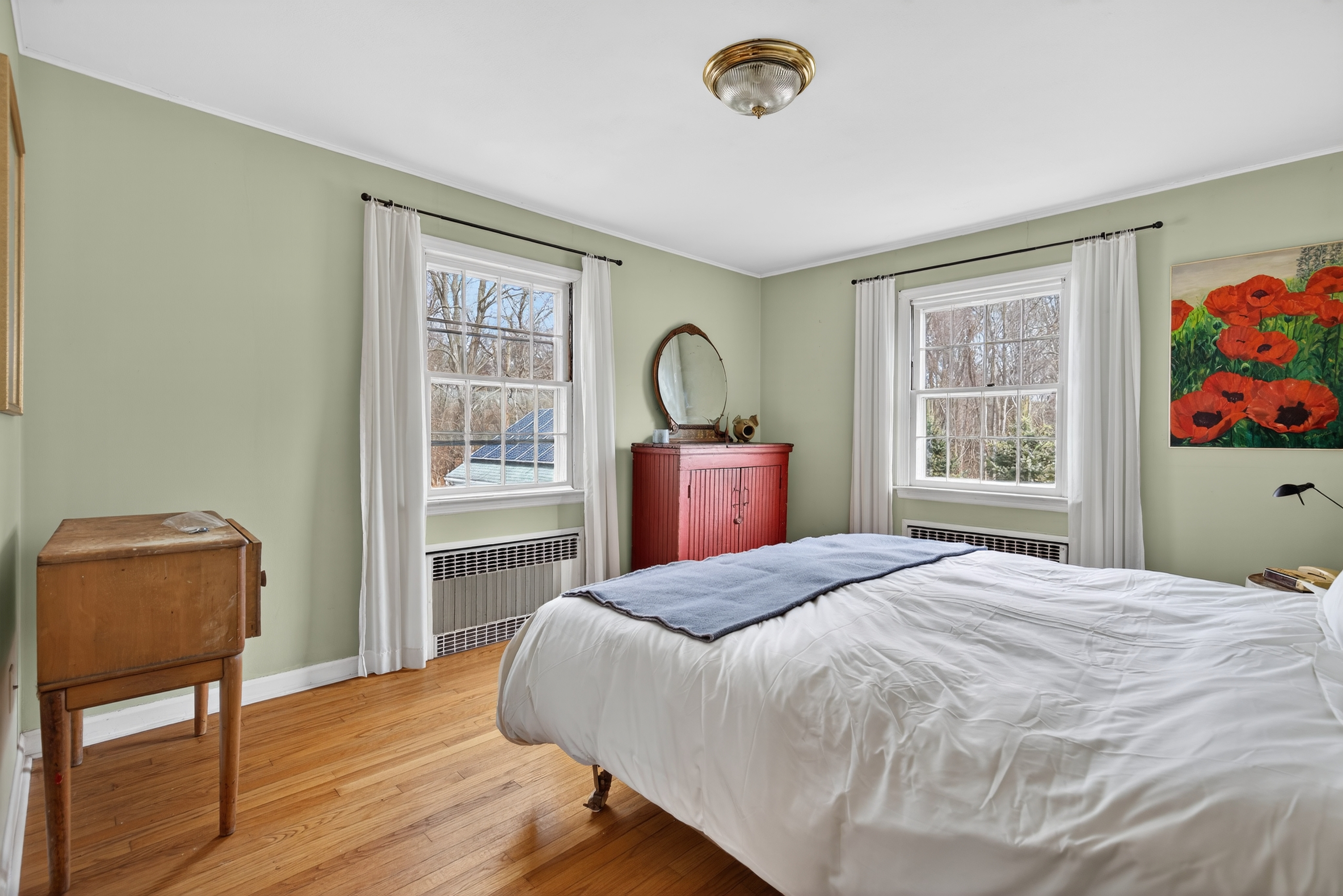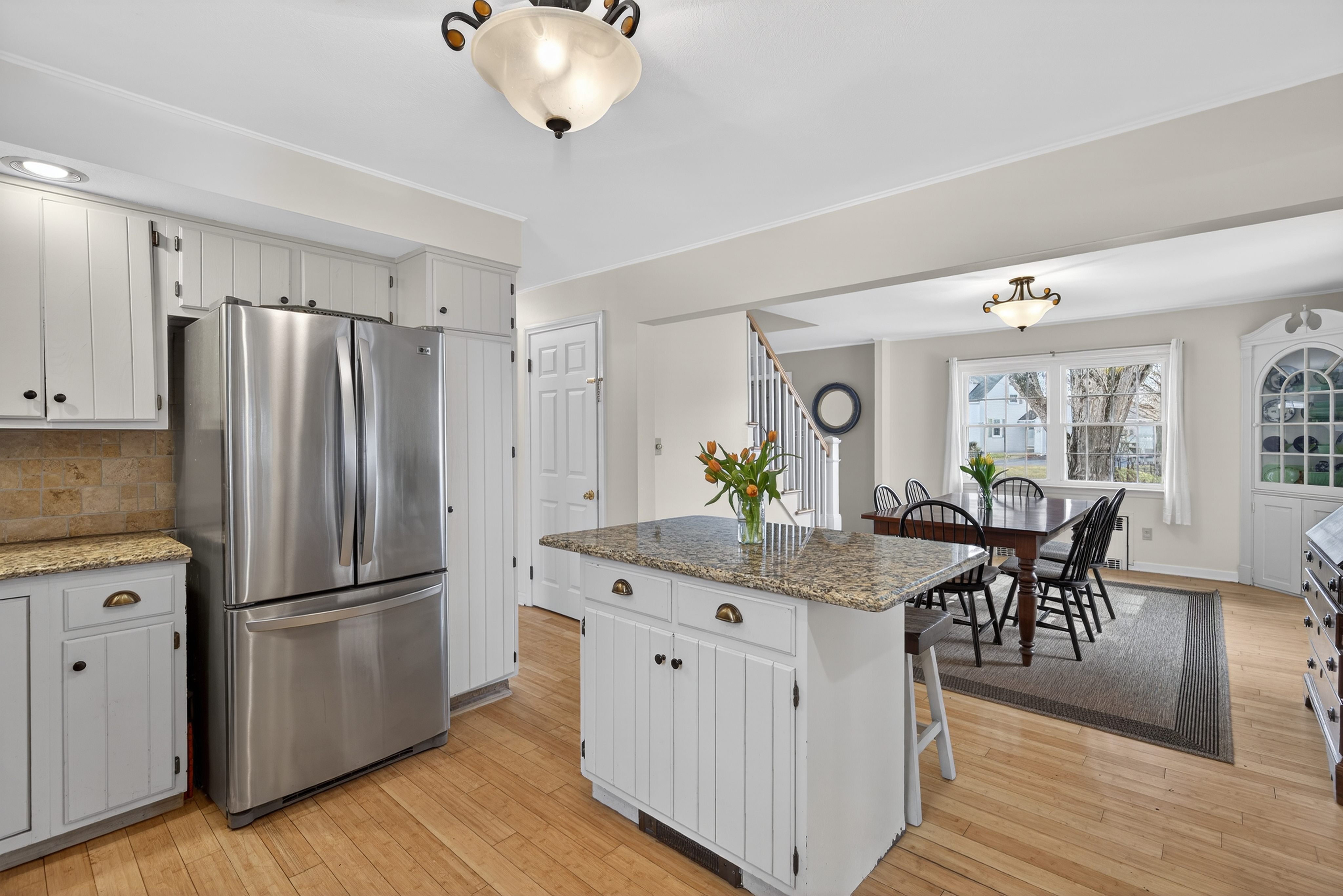 Discover the perfect blend of warmth, character, and lifestyle in this inviting four-bedroom Cape, ideally situated on a quiet street just minutes from Madison's Town Center and pristine beaches. The sun-drenched living room features an oversized front window and cozy wood-burning fireplace. Flow seamlessly into the dining room, sized beautifully for gatherings of any size. The updated kitchen boasts granite countertops, tumbled marble backsplash, and a functional center island, all open to the dining area. Step into the bright sunroom-your new favorite retreat-overlooking the deck, pool, and lush backyard. The convenient first-floor primary bedroom and full bath complete the main level, offering single-floor living potential. Upstairs, three additional bedrooms with gleaming hardwood floors and generous closets share a full bathroom. The finished lower level recreation room expands your living space, while the large utility area offers workshop, gym, or storage possibilities. The private, expansive rear yard features an in-ground pool, garden beds, and plenty of open space. The detached two-car garage provides ample parking and storage. Owned solar panels keep utility costs remarkably low-averaging under $20/month in summer. Minutes to beaches, town center, and I-95. This Cape offers comfort, character, and convenience in one of Madison's most desirable settings.