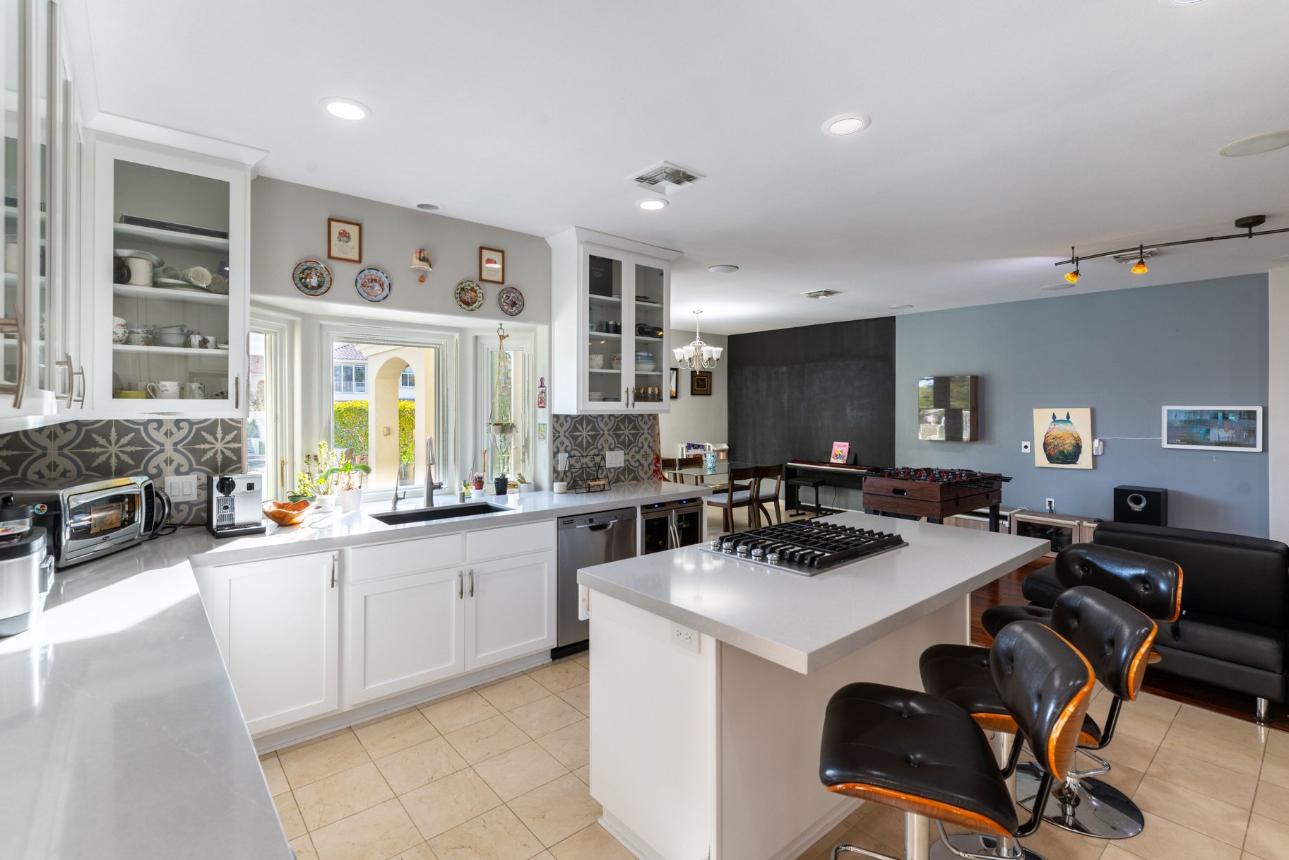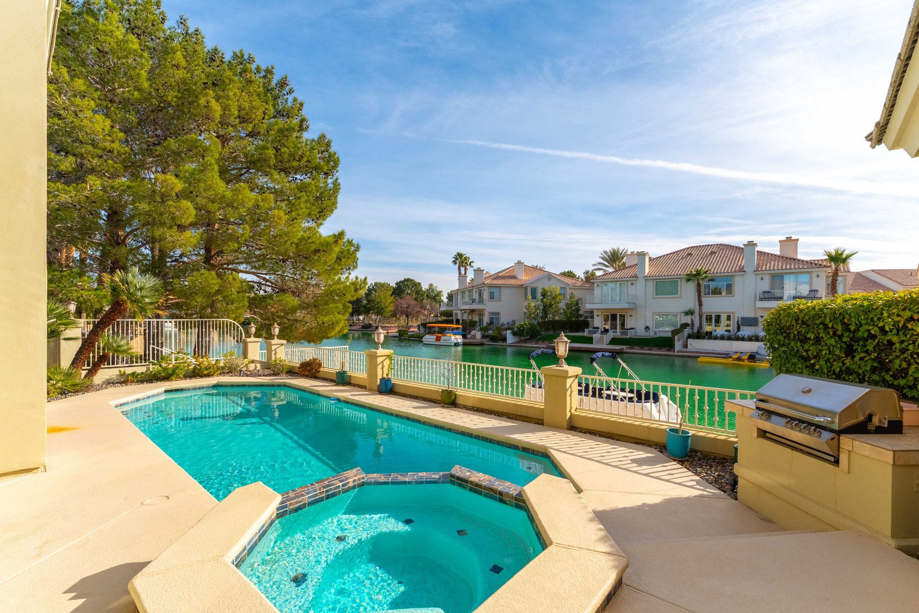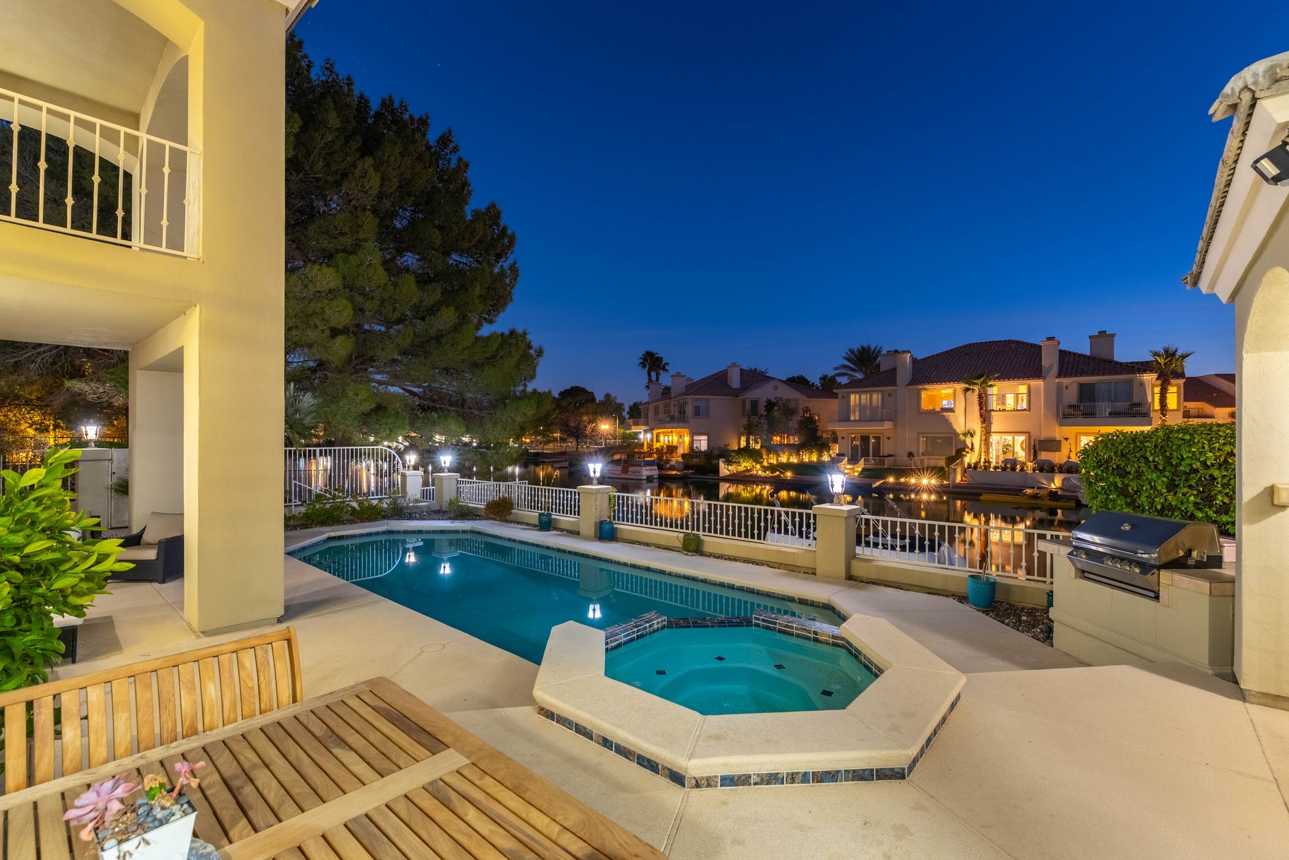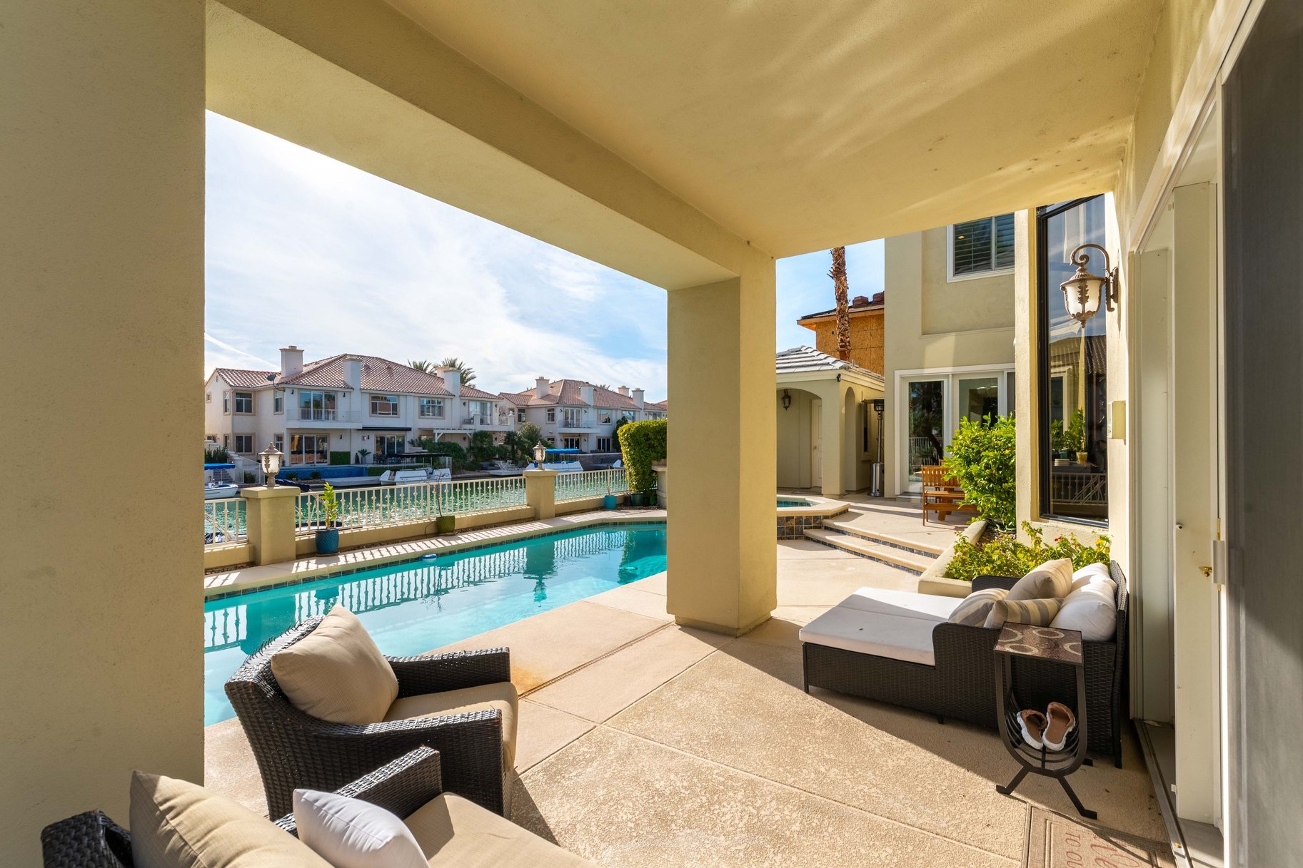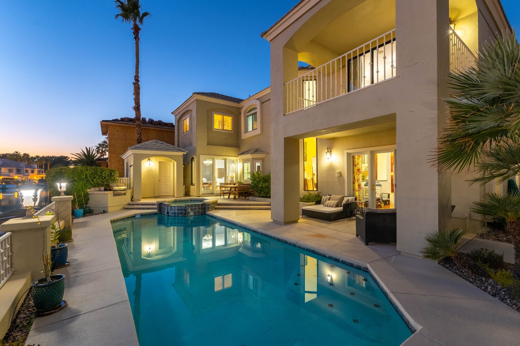 Discover a rare opportunity! This exceptional 2 story waterfront residence tucked within an intimate enclave offers a private dock with lake access. This beautifully designed home welcomes you with soaring ceilings that create a grand first impression, seamlessly connecting the main entry to an elegant formal dining space. A remodeled kitchen showcases updated finishes & functionality, ideal for both everyday living & entertaining. A desirable first-floor bedroom with a full bath provides flexibility for guests or multigenerational living. Upstairs, the spacious primary retreat offers a serene escape, complete with a private balcony to enjoy tranquil water views. 2 add guest beds include one with an oversized sitting or playroom, adding versatility to the layout. Step outside to your own backyard oasis featuring a sparkling pool & spa & covered patio, perfect for enjoying the waterfront lifestyle. This is a truly unique offering with direct lake access & a highly sought-after setting