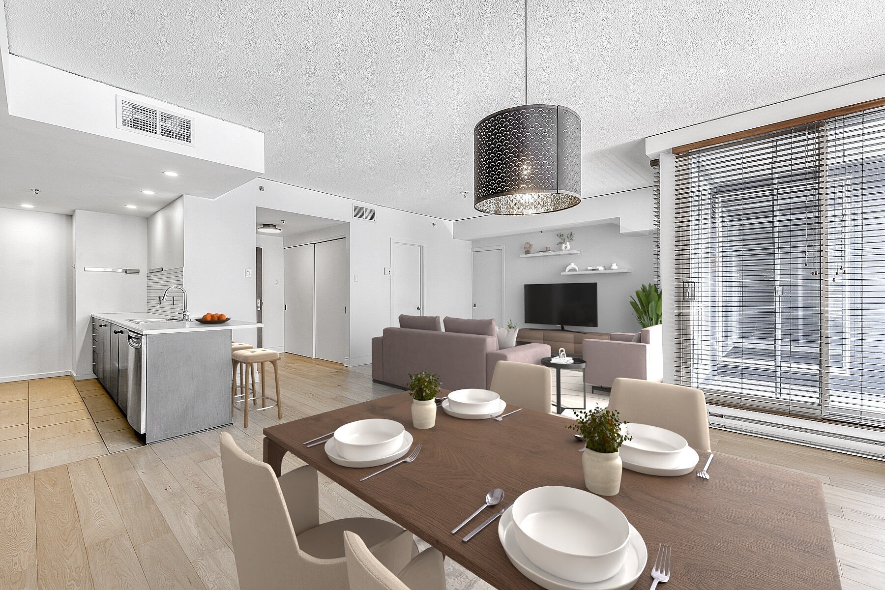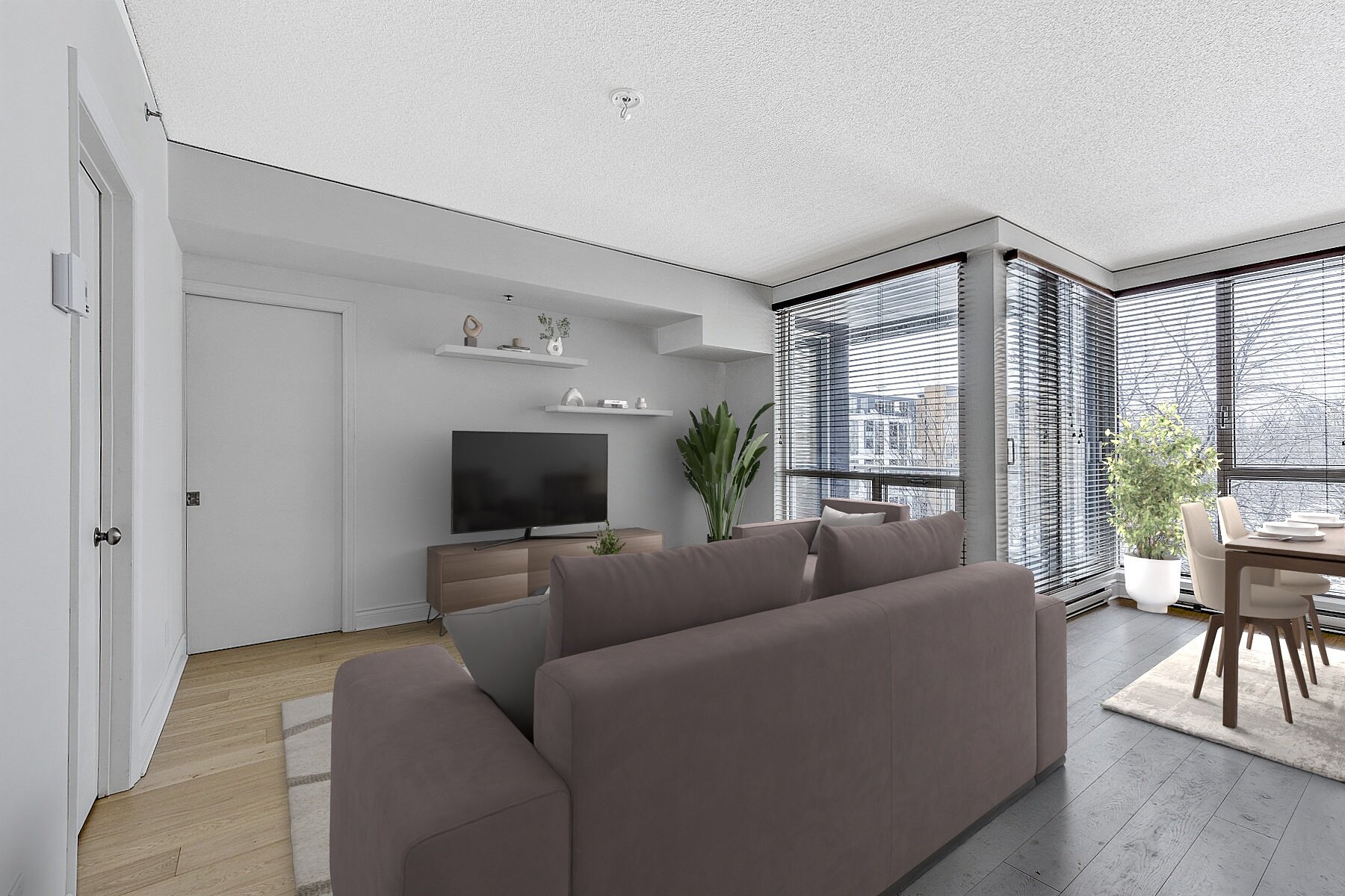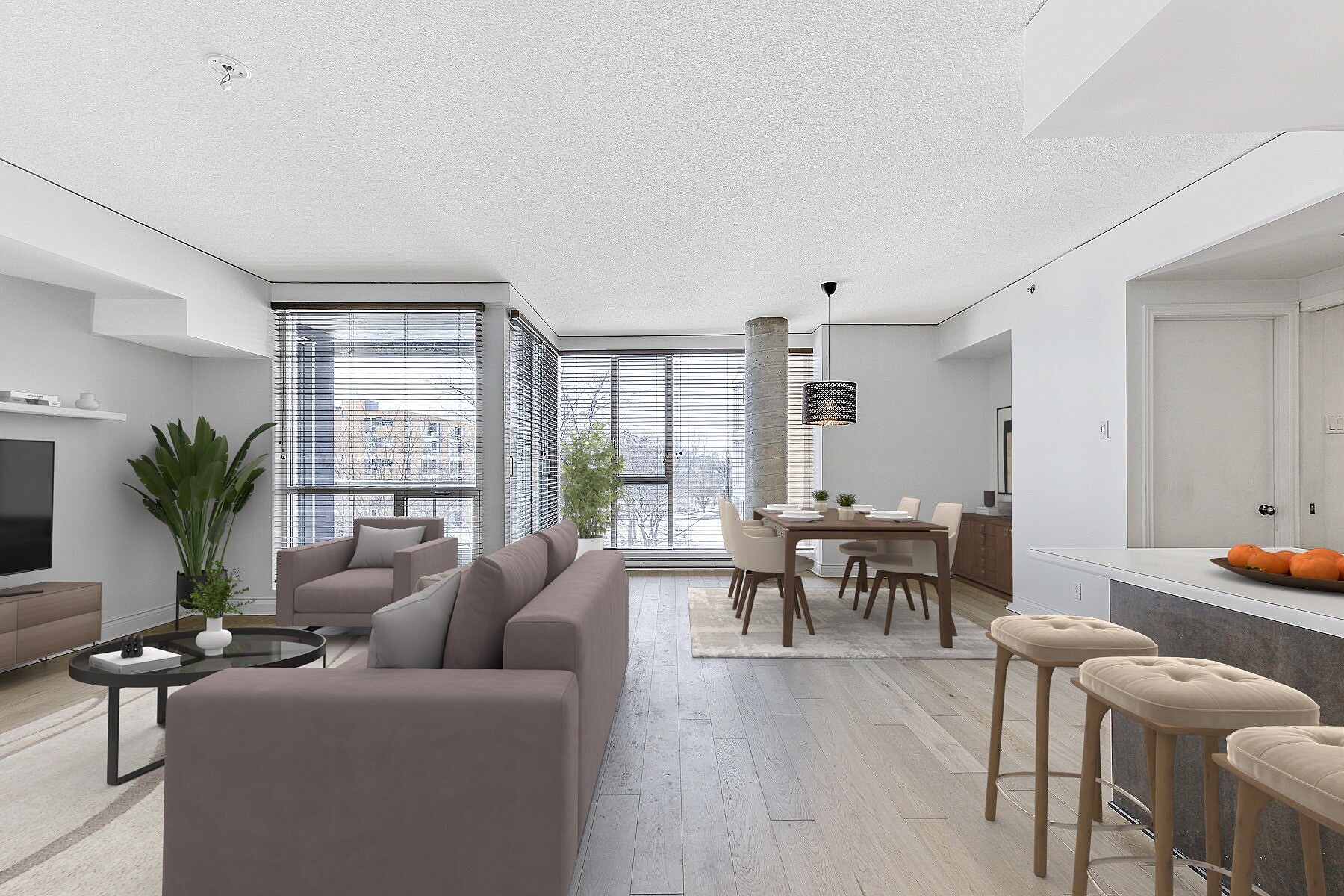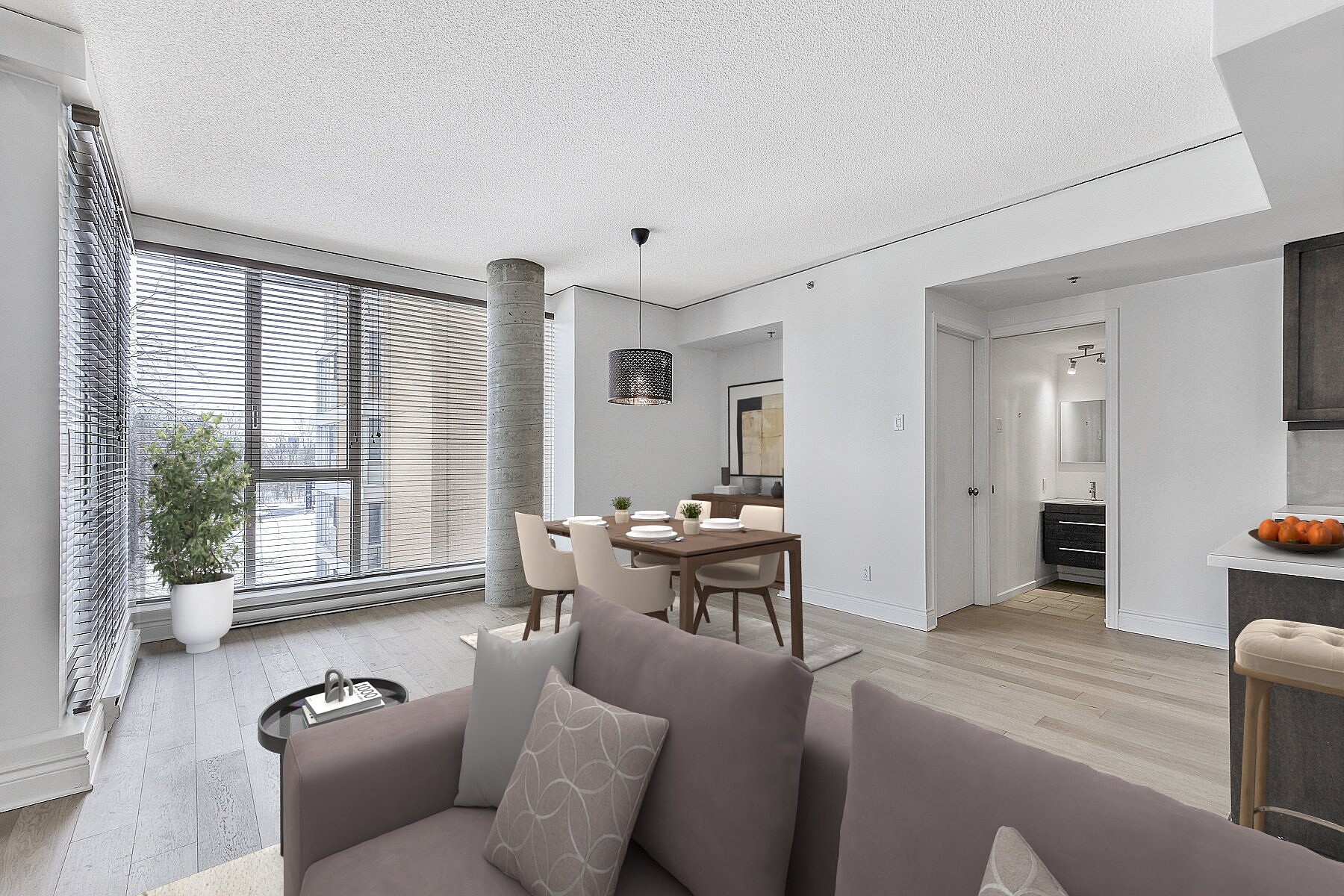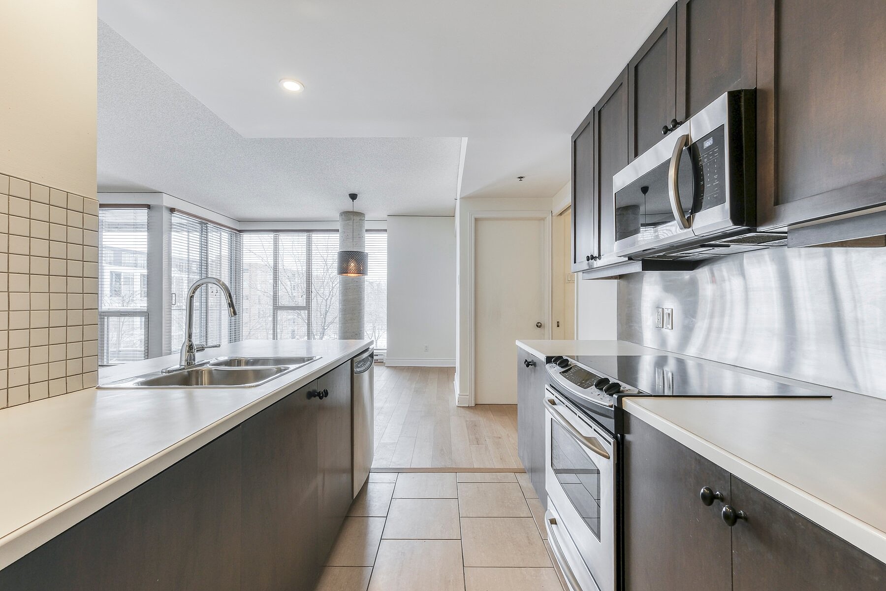 Elegant bright and quiet condo, located at the SAX on Nuns' Island! Large open living space and abundant fenestration, vast living and dining room overlooking the inner courtyard, kitchen with island counter, all appliances included, new engineered wood flooring, master suite with large double closets and ensuite bathroom, a 2nd bedroom, central air conditioning and intimate balcony with open views of the courtyard and the pool, excellent location with highway access just minutes away, close to all services on foot, restaurants, shops, boutiques of the Village and the REM Station, a perfect turnkey!