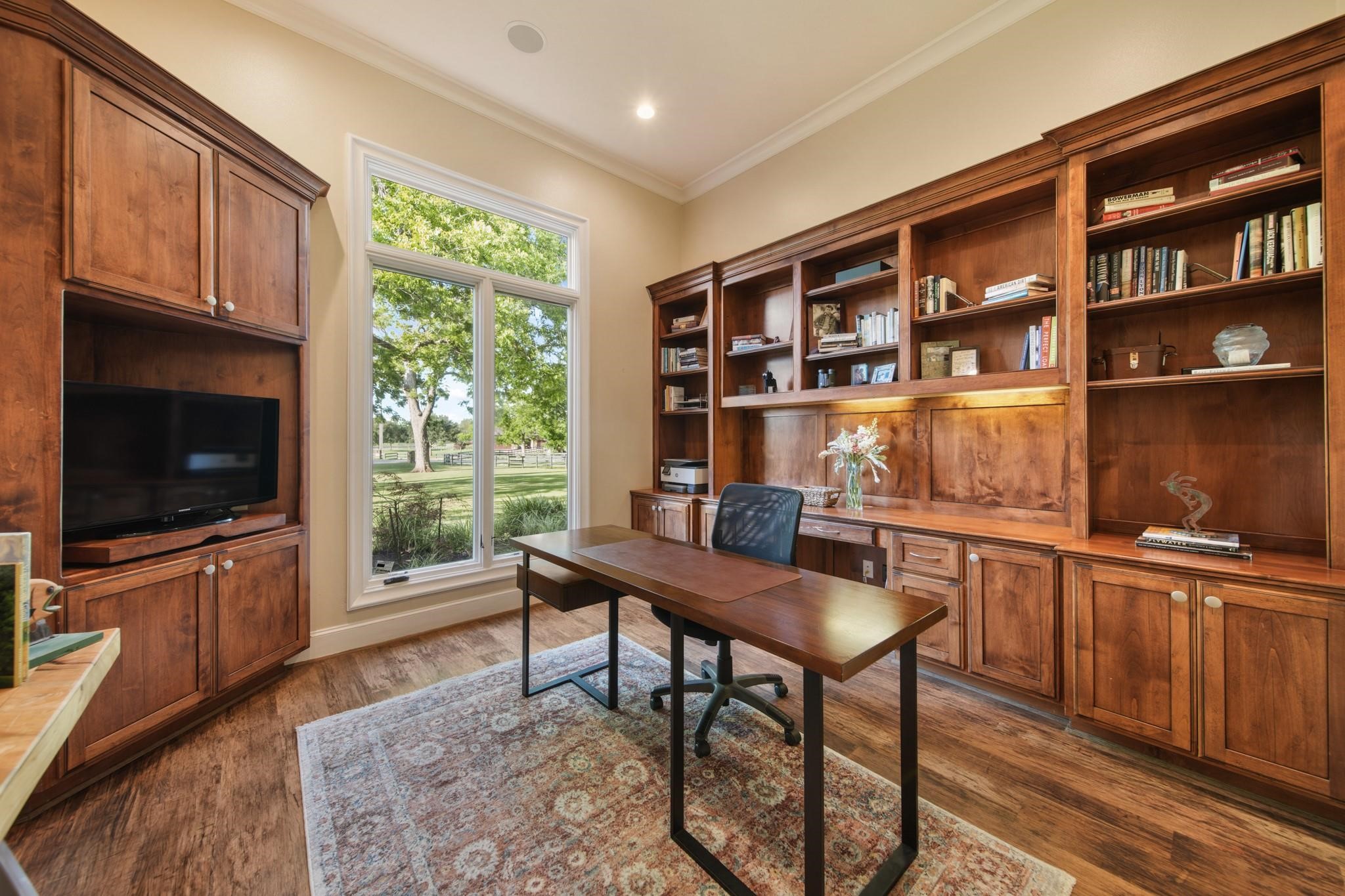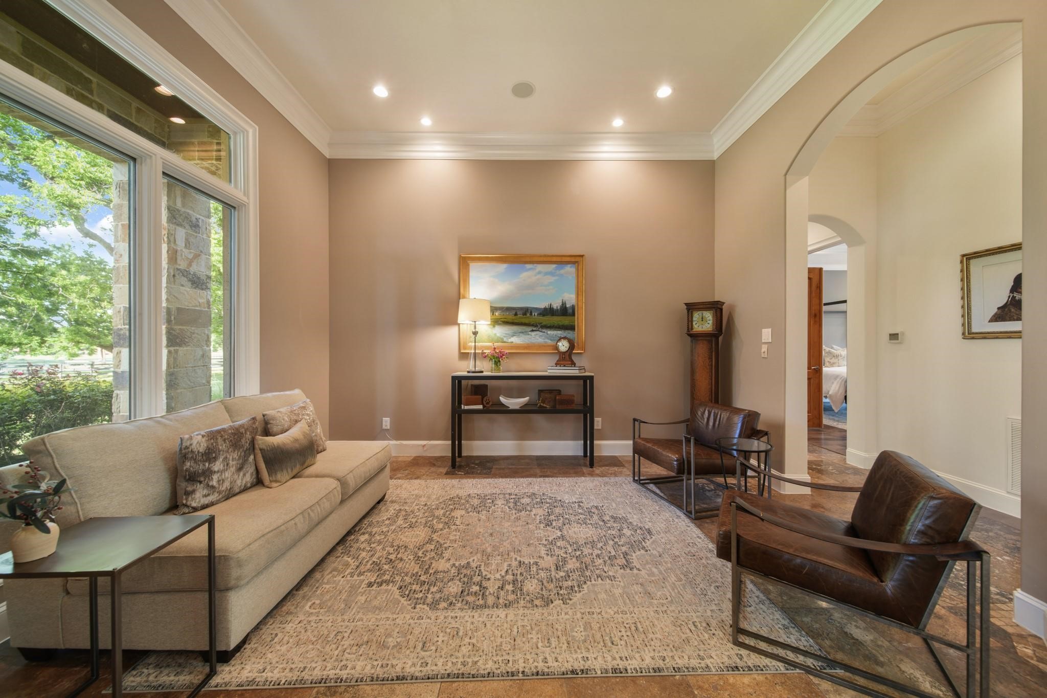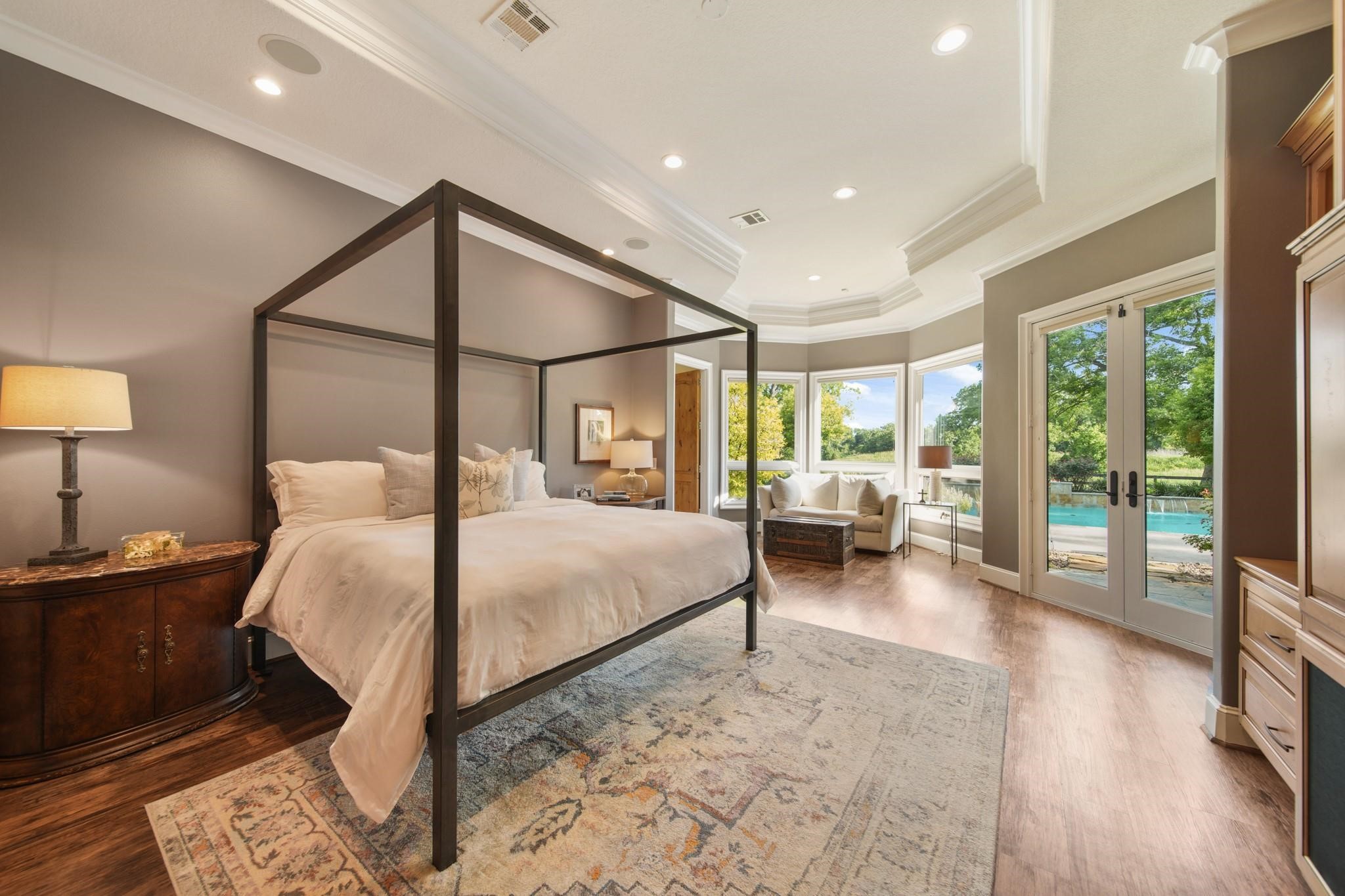 Tucked within the gated enclave of Foster Island Estates, this exceptional acreage property offers a rare blend of refined living and wide-open Texas landscape. Set on approximately 9.5 fully fenced acres, the home features soaring ceilings, rich architectural detail, and expansive windows framing the surrounding grounds. The main living areas flow from a well-appointed chef’s kitchen into inviting dining and gathering spaces, all oriented toward views of the pool, pasture, and scenic pond. The primary suite offers a spa-like bath, dual closets, and a flexible adjoining space. Upstairs, a game room, secondary bedrooms, and guest suite provide versatility. Outdoor living includes a resort-style pool and spa, covered patio with summer kitchen, and equestrian facilities with barn, arena, and fenced pasture. Currently benefiting from an agricultural tax exemption.