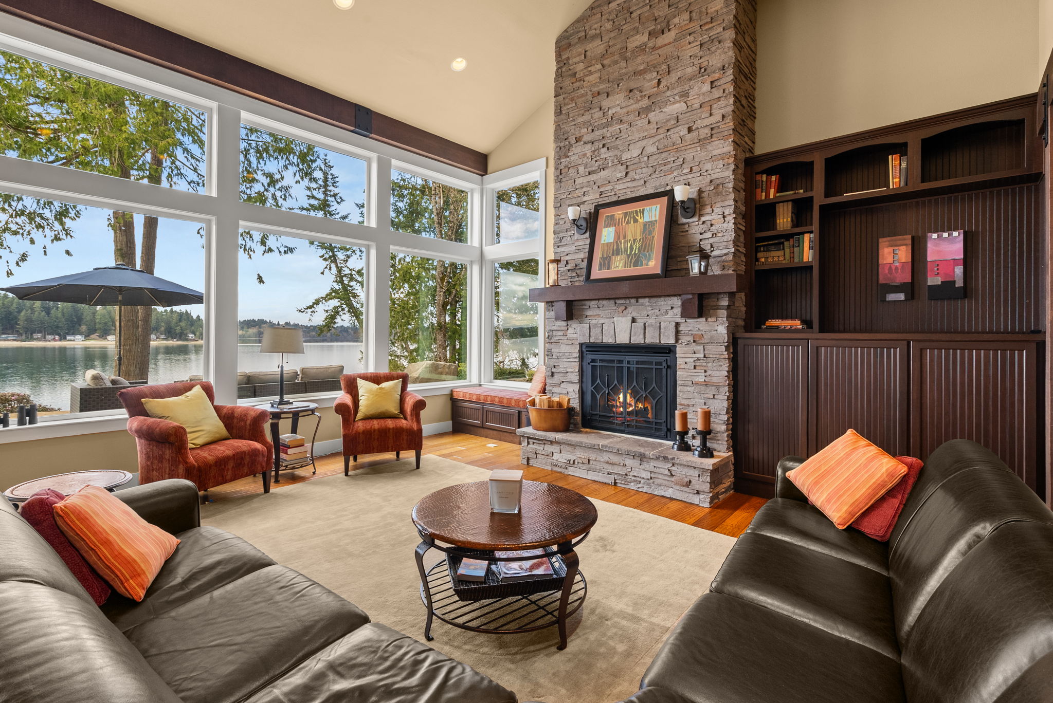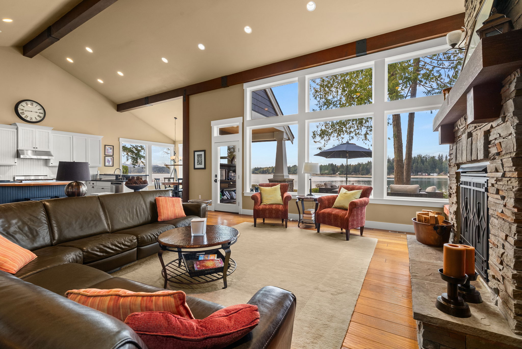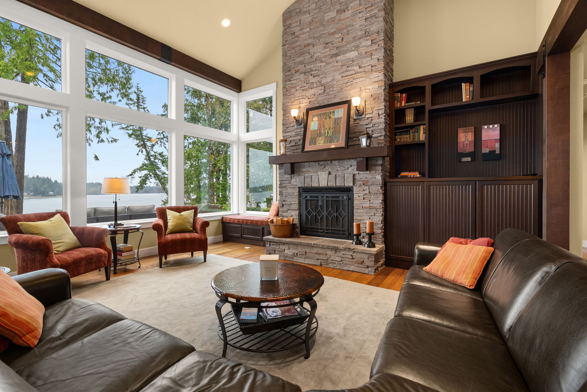 Take in breathtaking views on Bayshore with this beautifully designed, low-maintenance rambler. Offering 3 bedrooms plus a den & high tech wired media room, this home sits atop 147 feet of pristine Eld Inlet waterfront, includes tidelands and a buoy! Soak in the sunsets on the massive stamped concrete patio with room for all your entertaining needs. The impressive primary suite showcases sweeping Olympic Mountain views, a luxurious five-piece en-suite, & a spacious walk-in closet. Inside, you’ll find vaulted ceilings, impressive wood-wrapped beams, gorgeous masonry work and custom built-ins surrounding the fireplace, chef's kitchen w/ stainless steel appliances, custom details throughout, thoughtfully designed to check every box. 1242 Sq. Ft garage to store all your toys! NEW ROOF and NEW EXTERIOR PAINT! Located in a small, upscale community surrounded by high-end homes, this property includes rare deeded dock access for the ultimate waterfront lifestyle.