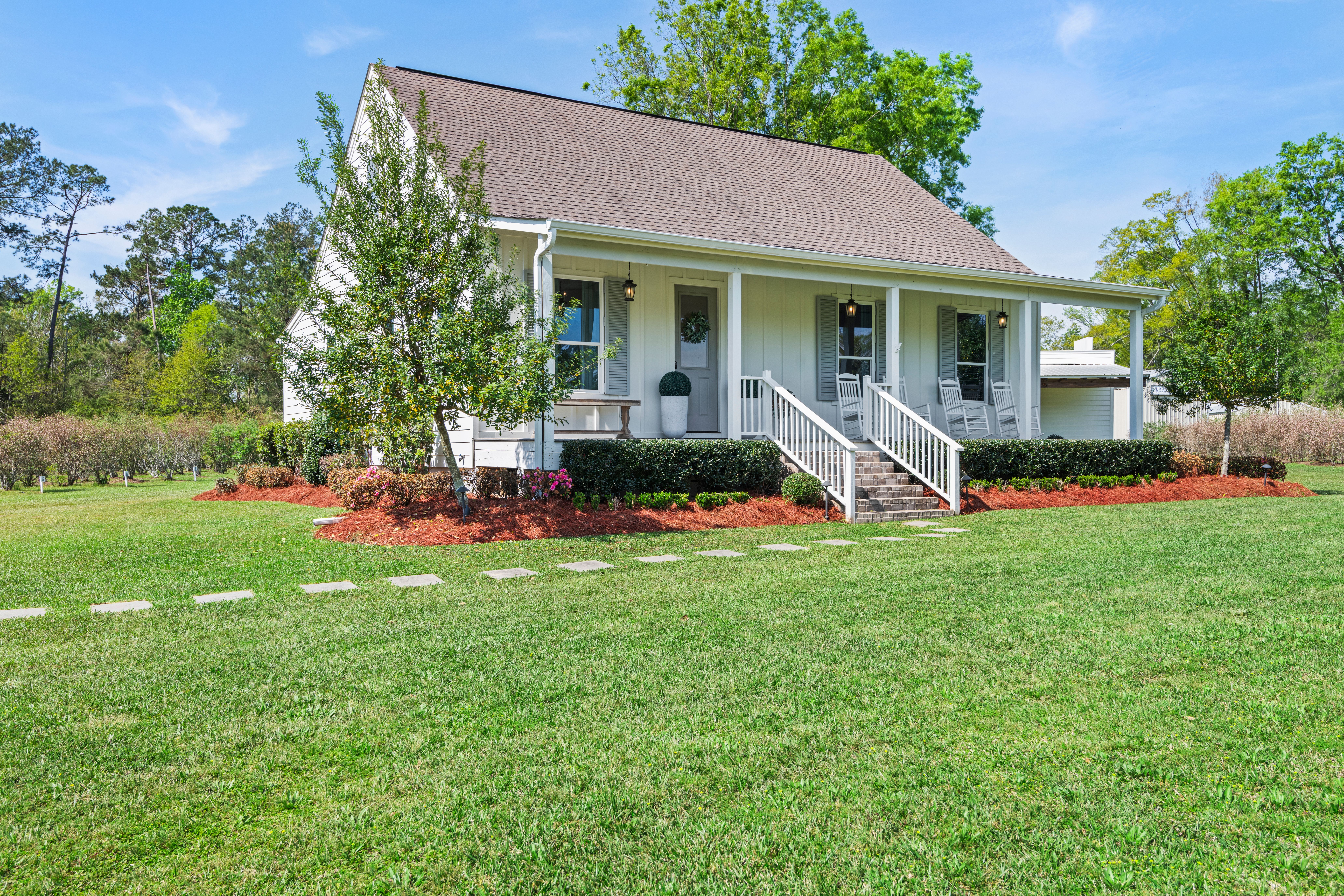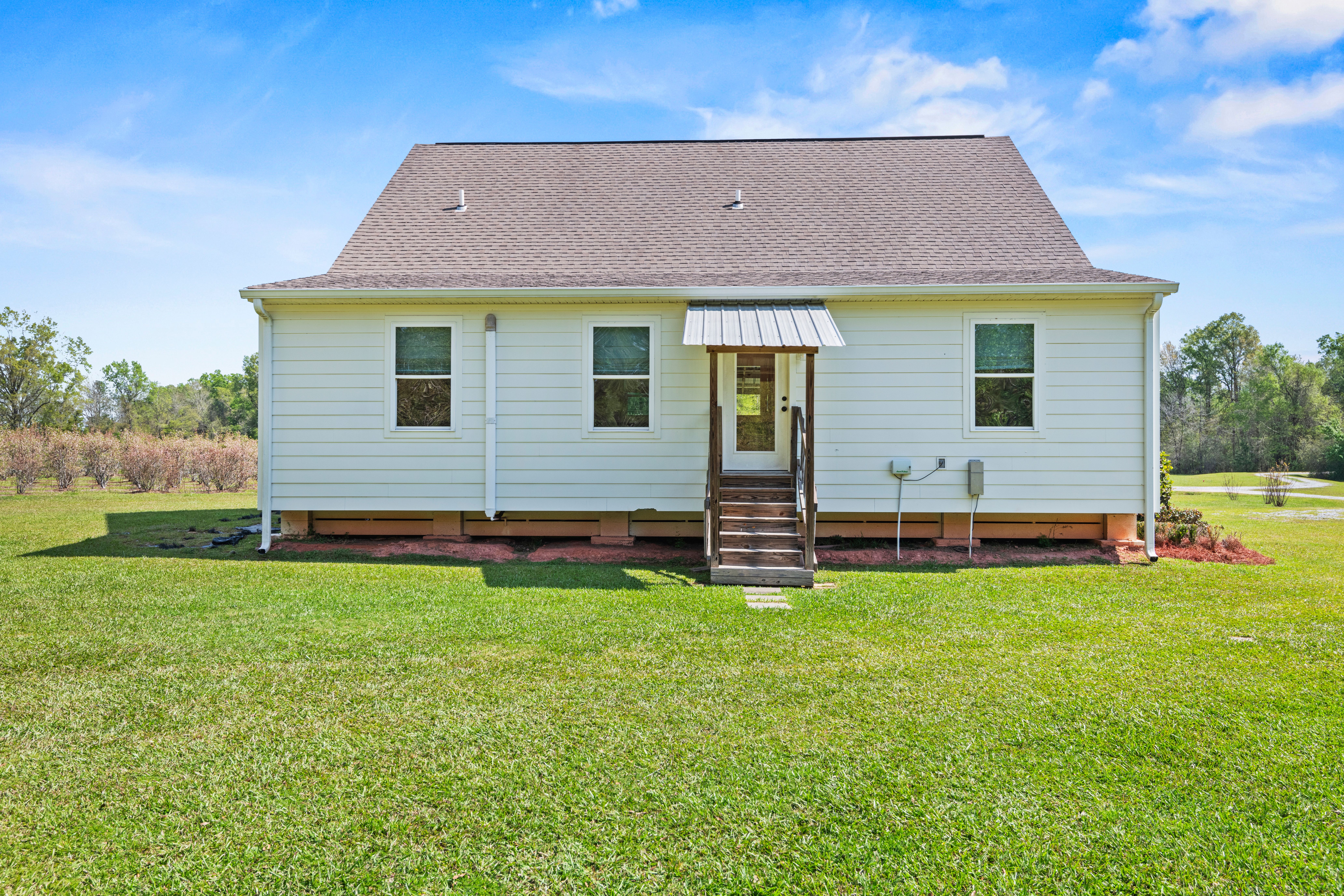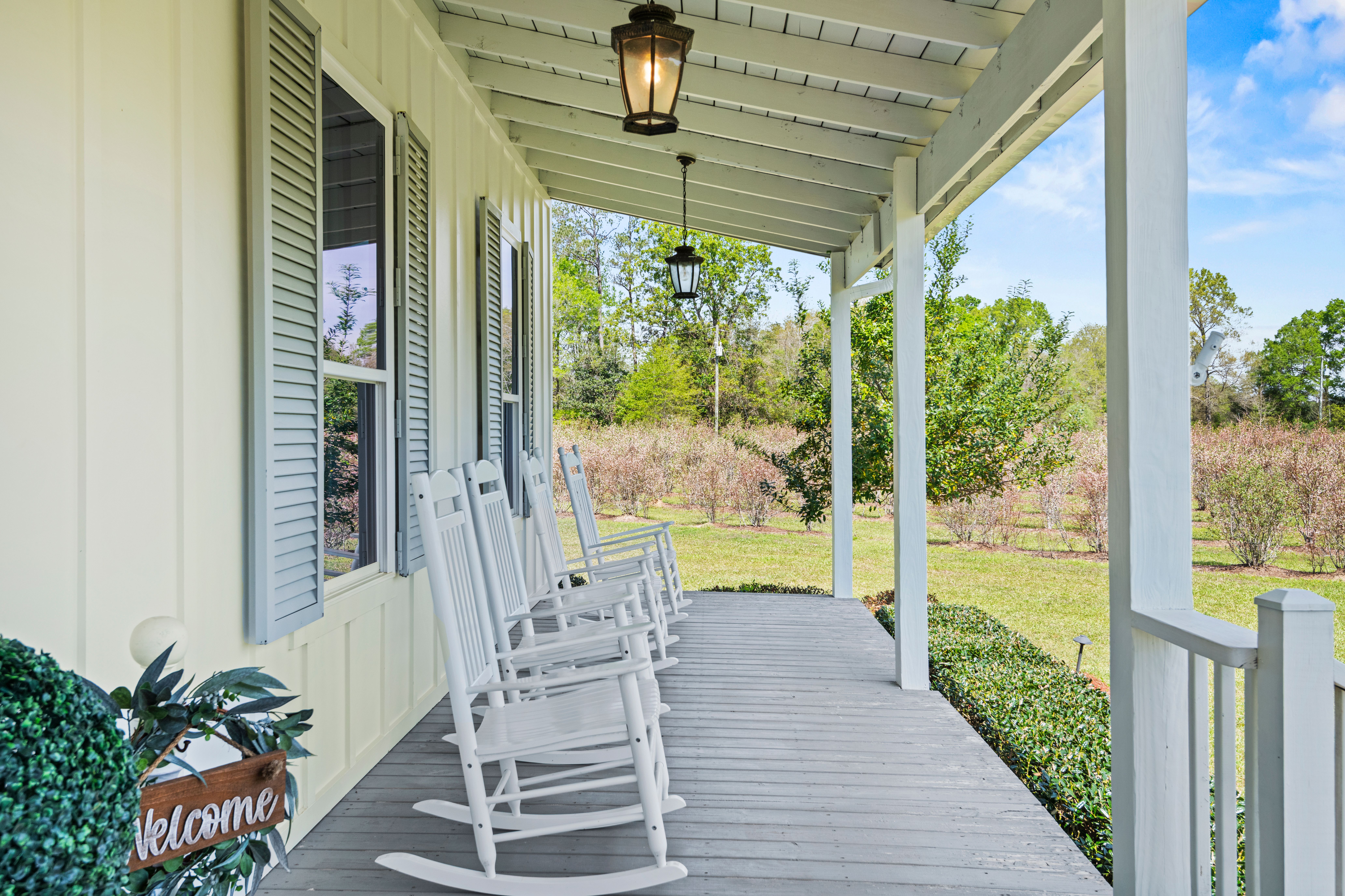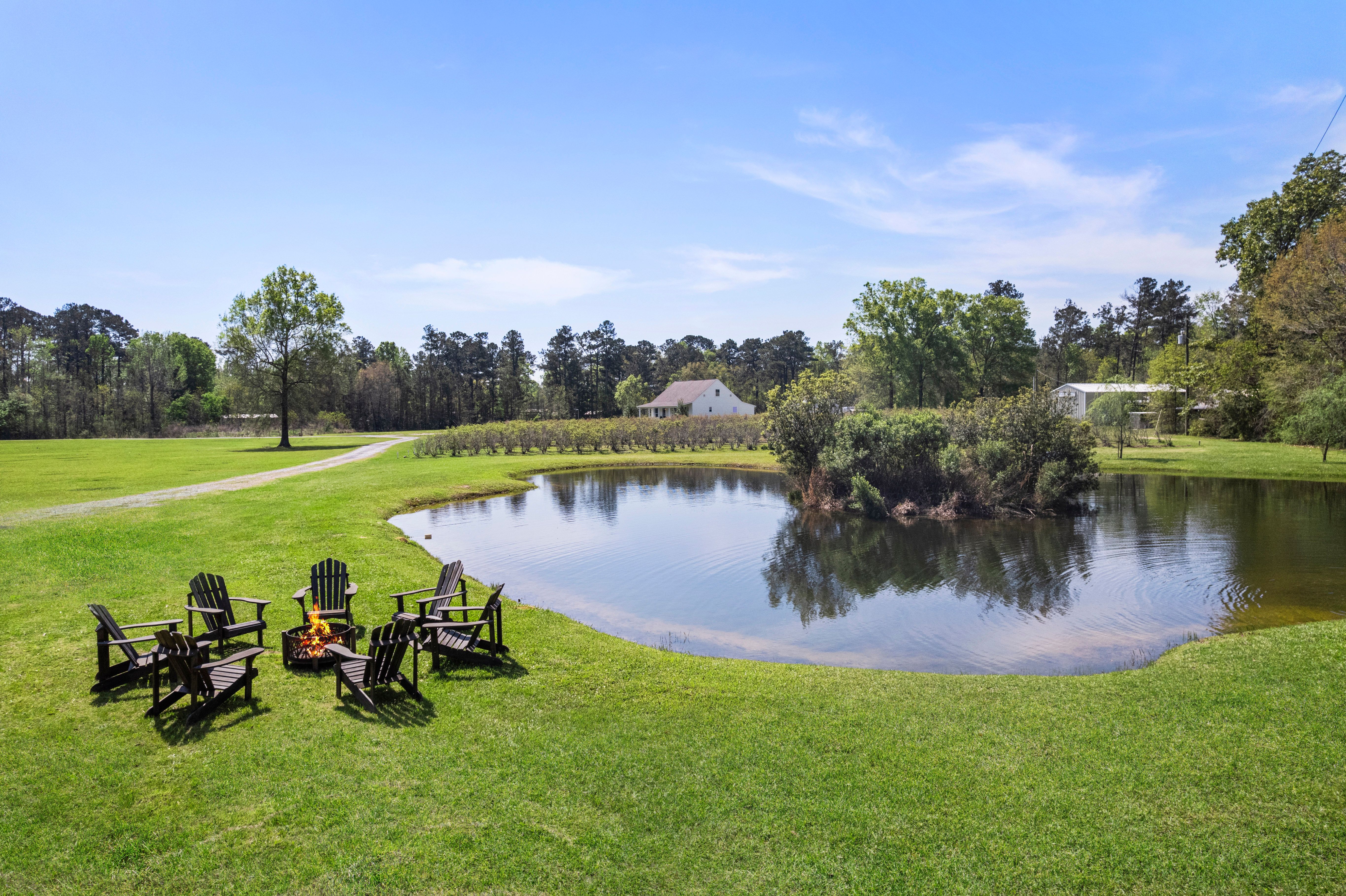 Situated on 15.99 acres, this charming farmhouse estate and established blueberry farm offers the kind of setting that’s hard to come by. With multiple uses, from a potential getting ready space for weddings or events to an Airbnb, mother-in-law setup, or even the perfect place to build your dream home, this property gives you all the options! The farm features seven varieties of blueberries, thoughtfully laid out in rows with a built-in irrigation system already in place. The land is mostly cleared, surrounded by trees for privacy, and includes a beautiful pond with its own island, along with irrigated landscaping. For gatherings or events, there are exterior his and her bathrooms, making it easy to host right on the property. A gravel parking lot offers plenty of space and is well suited for hosting guests or seasonal “you-pick” days at the farm. Two electrical poles service the land, one for the main home and another near the pond, adding convenience for future plans. As you enter through the gated entrance and travel down the long gravel driveway, you immediately feel the seclusion this property offers. Inside, the home welcomes you with a spacious, open living area overlooking the farm. Wood laminate and luxury vinyl plank flooring run throughout, complemented by freshly painted walls, designer lighting, and plenty of windows that fill the space with natural light. Flowing into the kitchen, you’ll find freshly painted cabinetry, updated hardware and fixtures, a spacious walk-in pantry, stone countertops, and the cutest coffee and bar nook. The primary suite overlooks the front porch and offers a comfortable, spacious setting. The ensuite bath features a separate shower, soaking tub, and a walk in closet. Towards the back of the home is a flexible bonus space that could easily serve as a third bedroom, home office, playroom, or whatever your plans may envision. This is a home that welcomes you with warmth and grace, ready for you to enjoy now and shape however you dream.