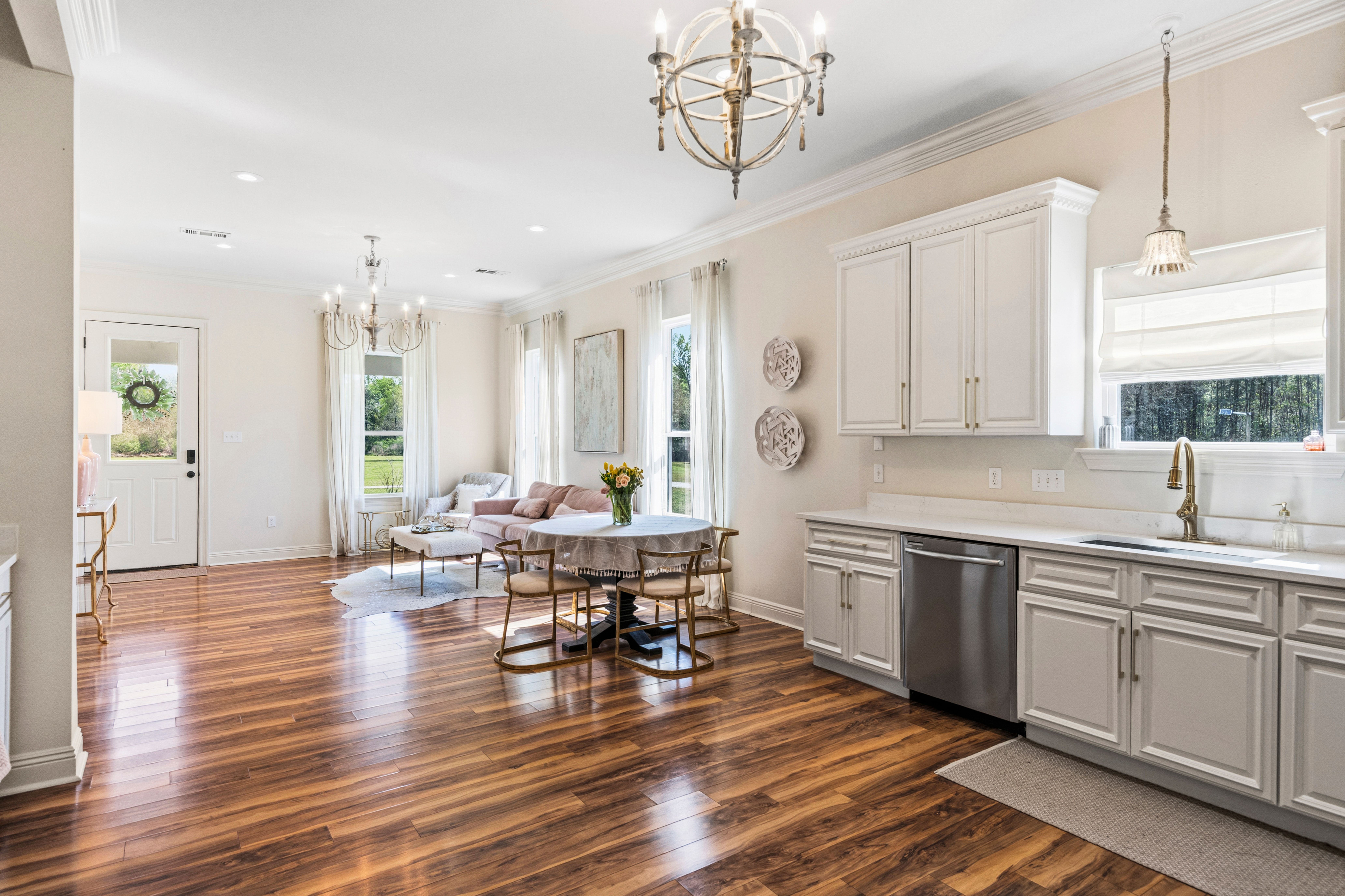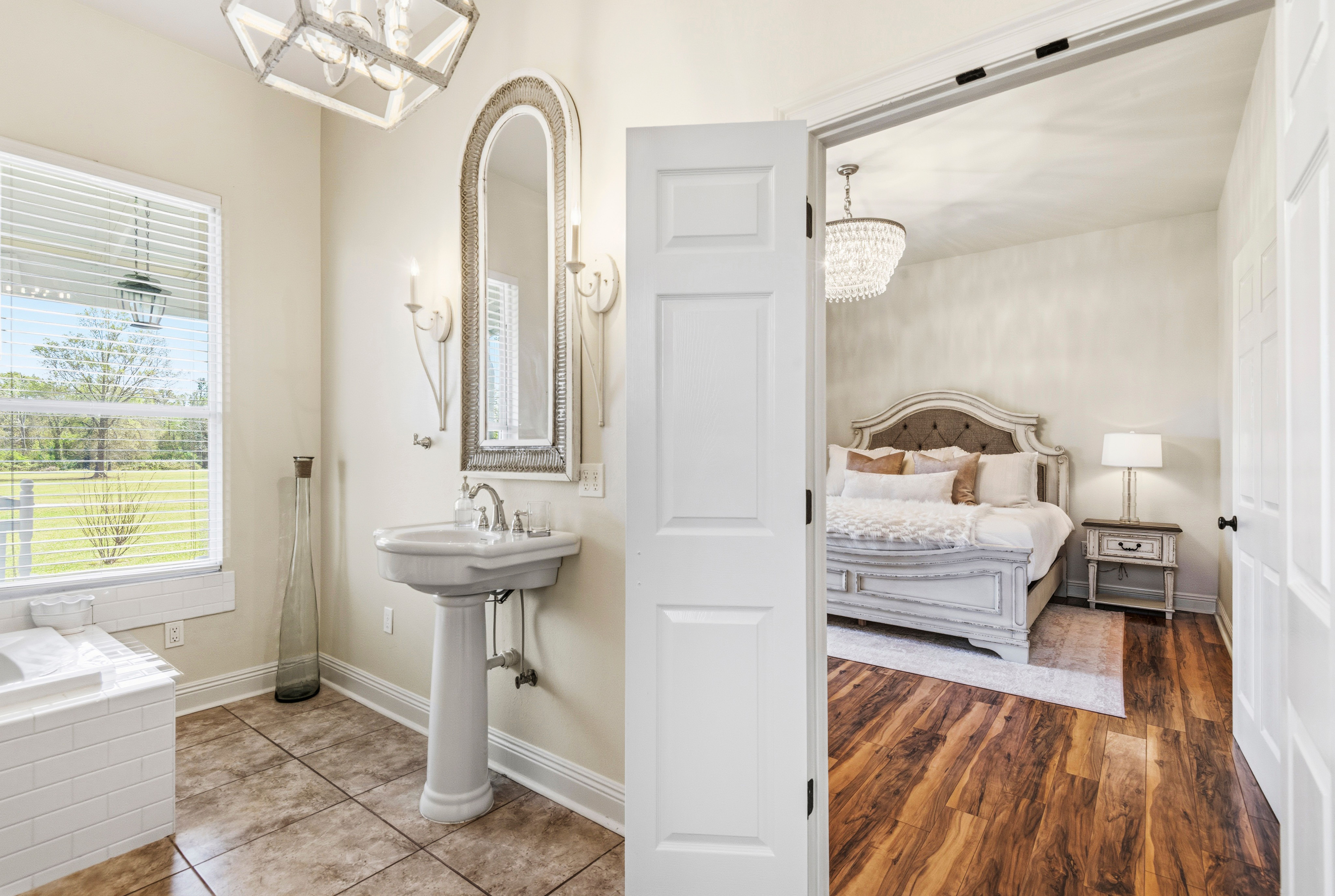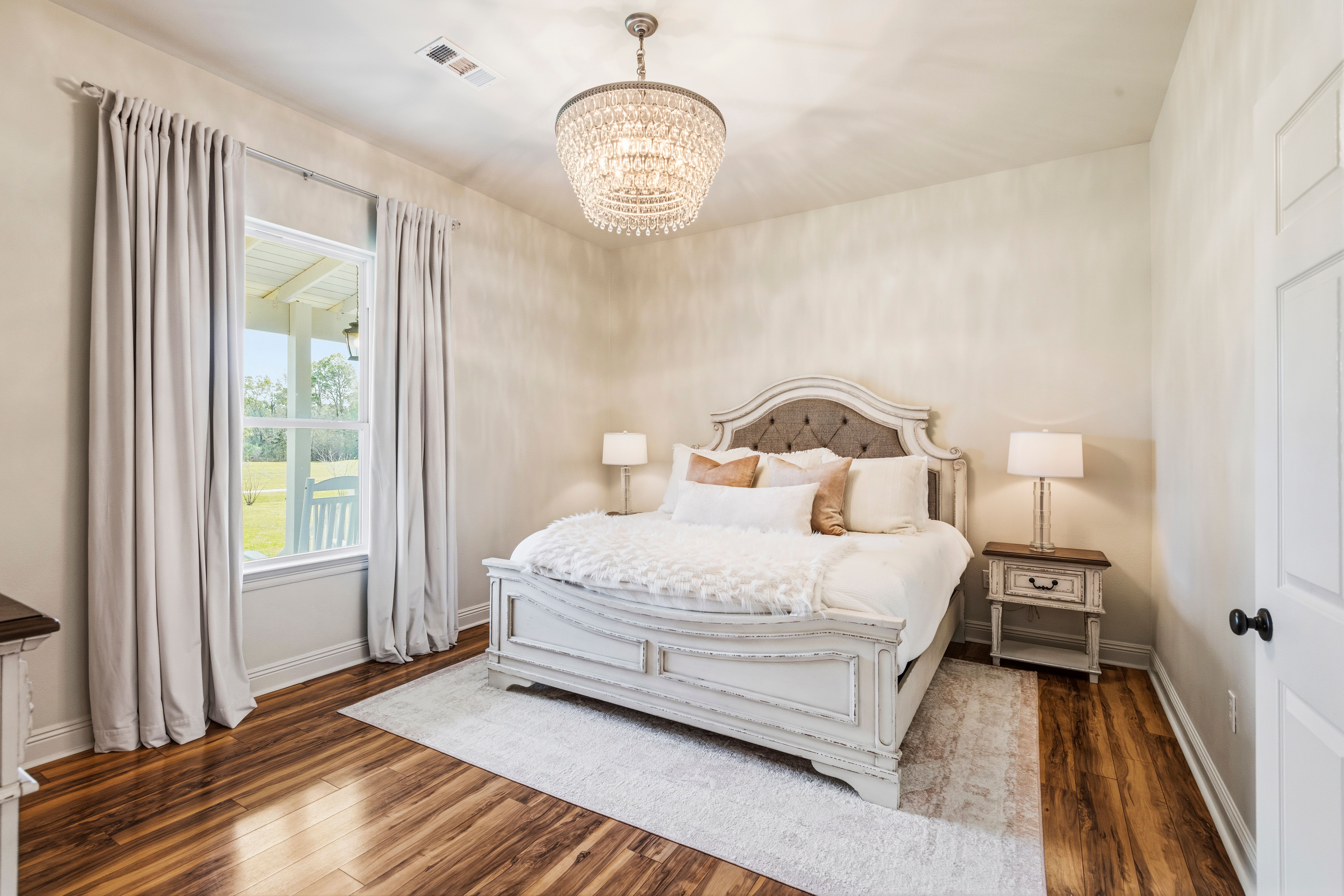 Situated on 15.99 acres, this charming farmhouse estate and established blueberry farm offers the kind of setting that’s hard to come by. With multiple uses, from a potential getting ready space for weddings or events to an Airbnb, mother-in-law setup, or even the perfect place to build your dream home, this property gives you all the options! The farm features seven varieties of blueberries, thoughtfully laid out in rows with a built-in irrigation system already in place. The land is mostly cleared, surrounded by trees for privacy, and includes a beautiful pond with its own island, along with irrigated landscaping. For gatherings or events, there are exterior his and her bathrooms, making it easy to host right on the property. A gravel parking lot offers plenty of space and is well suited for hosting guests or seasonal “you-pick” days at the farm. Two electrical poles service the land, one for the main home and another near the pond, adding convenience for future plans. As you enter through the gated entrance and travel down the long gravel driveway, you immediately feel the seclusion this property offers. Inside, the home welcomes you with a spacious, open living area overlooking the farm. Wood laminate and luxury vinyl plank flooring run throughout, complemented by freshly painted walls, designer lighting, and plenty of windows that fill the space with natural light. Flowing into the kitchen, you’ll find freshly painted cabinetry, updated hardware and fixtures, a spacious walk-in pantry, stone countertops, and the cutest coffee and bar nook. The primary suite overlooks the front porch and offers a comfortable, spacious setting. The ensuite bath features a separate shower, soaking tub, and a walk in closet. Towards the back of the home is a flexible bonus space that could easily serve as a third bedroom, home office, playroom, or whatever your plans may envision. This is a home that welcomes you with warmth and grace, ready for you to enjoy now and shape however you dream.