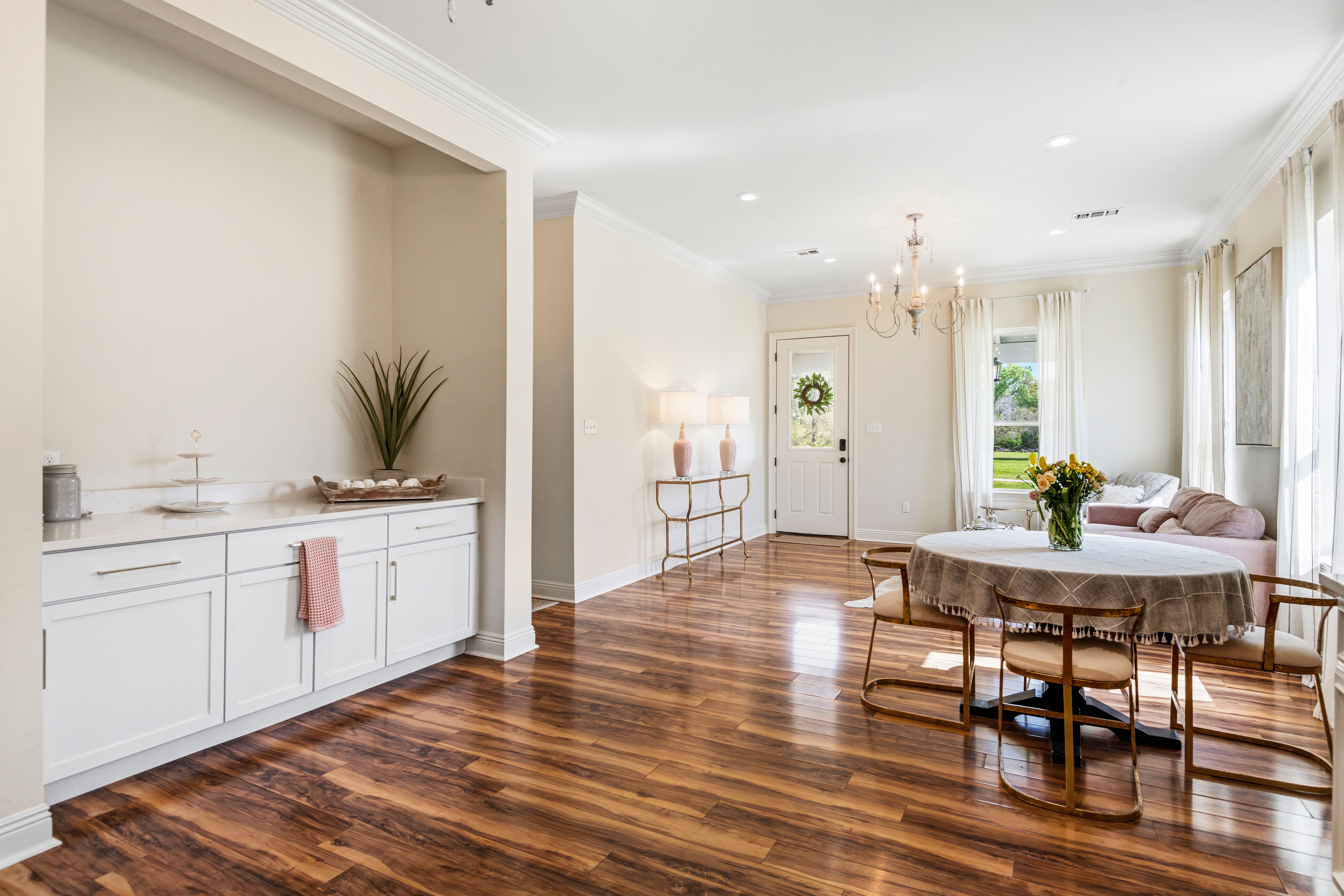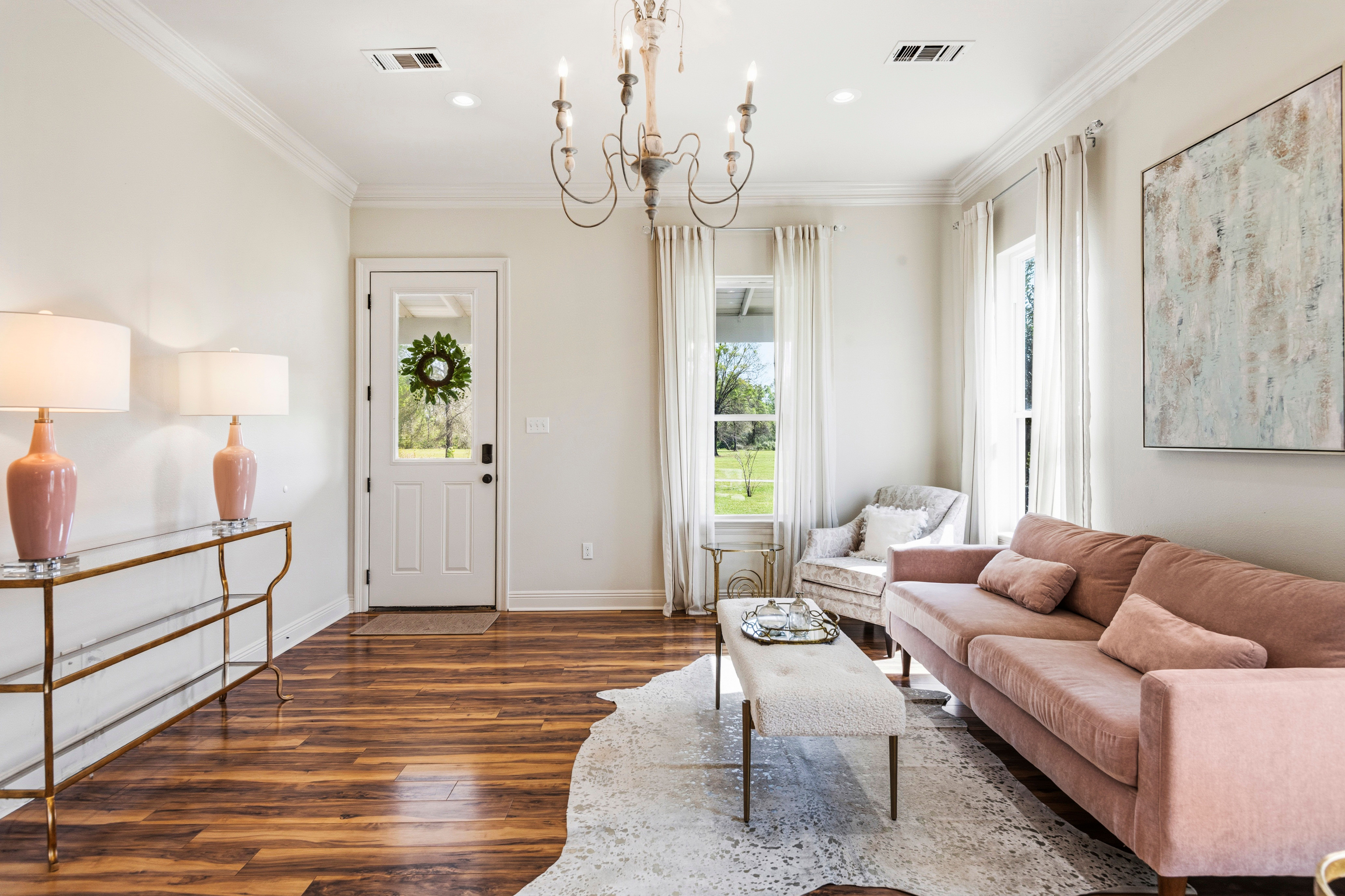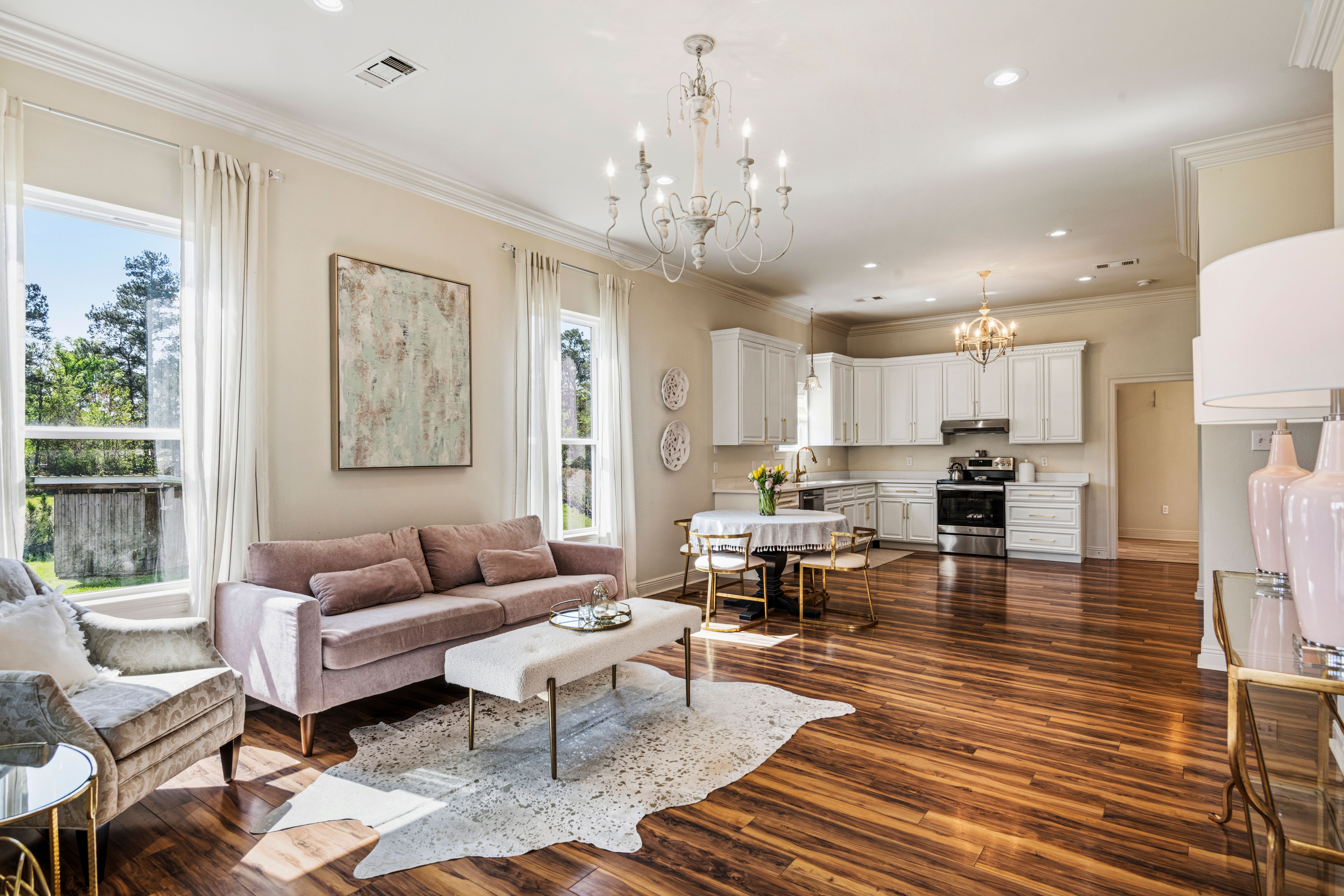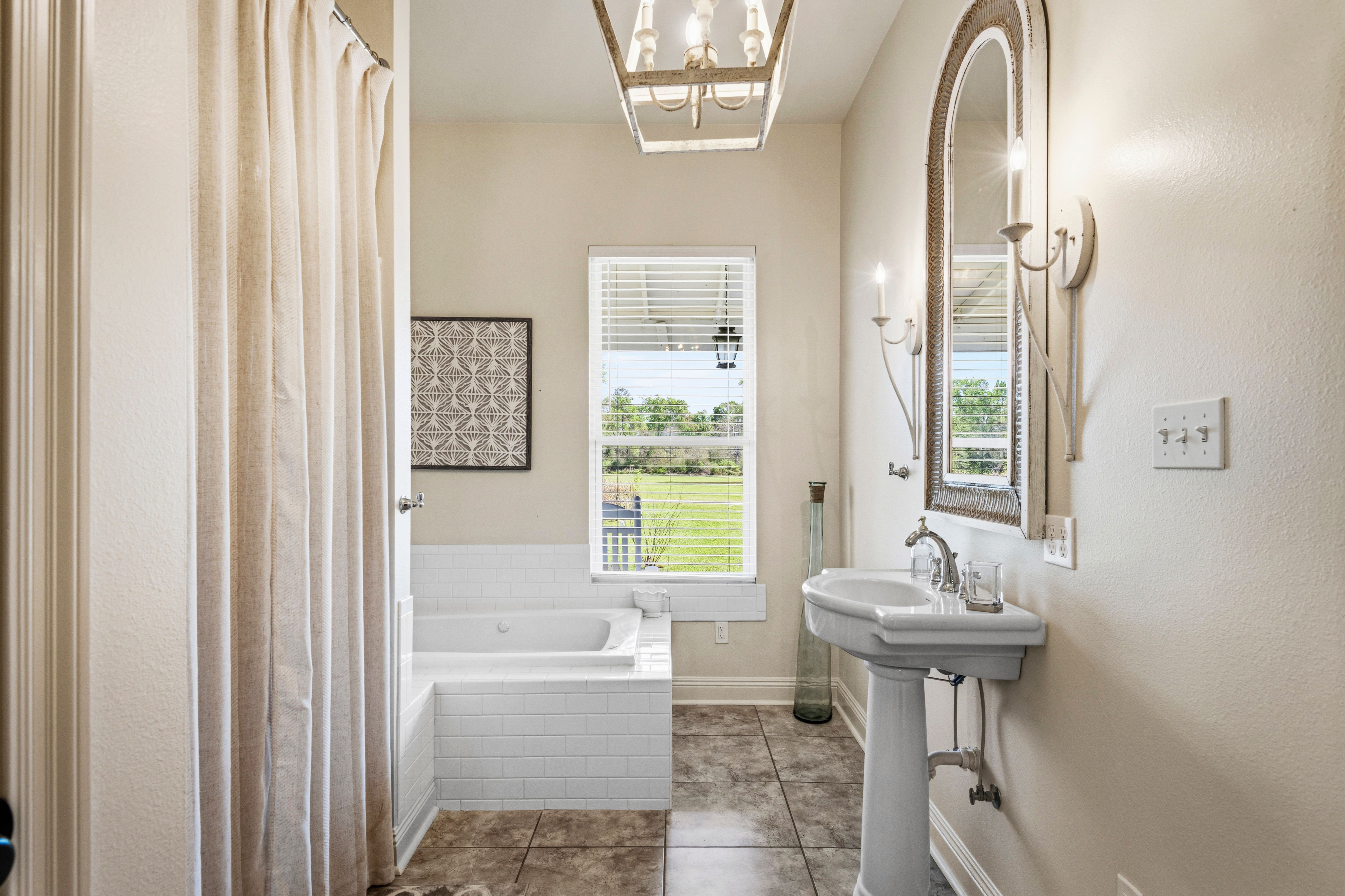 Situated on 15.99 acres, this charming farmhouse estate and established blueberry farm offers the kind of setting that’s hard to come by. With multiple uses, from a potential getting ready space for weddings or events to an Airbnb, mother-in-law setup, or even the perfect place to build your dream home, this property gives you all the options! The farm features seven varieties of blueberries, thoughtfully laid out in rows with a built-in irrigation system already in place. The land is mostly cleared, surrounded by trees for privacy, and includes a beautiful pond with its own island, along with irrigated landscaping. For gatherings or events, there are exterior his and her bathrooms, making it easy to host right on the property. A gravel parking lot offers plenty of space and is well suited for hosting guests or seasonal “you-pick” days at the farm. Two electrical poles service the land, one for the main home and another near the pond, adding convenience for future plans. As you enter through the gated entrance and travel down the long gravel driveway, you immediately feel the seclusion this property offers. Inside, the home welcomes you with a spacious, open living area overlooking the farm. Wood laminate and luxury vinyl plank flooring run throughout, complemented by freshly painted walls, designer lighting, and plenty of windows that fill the space with natural light. Flowing into the kitchen, you’ll find freshly painted cabinetry, updated hardware and fixtures, a spacious walk-in pantry, stone countertops, and the cutest coffee and bar nook. The primary suite overlooks the front porch and offers a comfortable, spacious setting. The ensuite bath features a separate shower, soaking tub, and a walk in closet. Towards the back of the home is a flexible bonus space that could easily serve as a third bedroom, home office, playroom, or whatever your plans may envision. This is a home that welcomes you with warmth and grace, ready for you to enjoy now and shape however you dream.